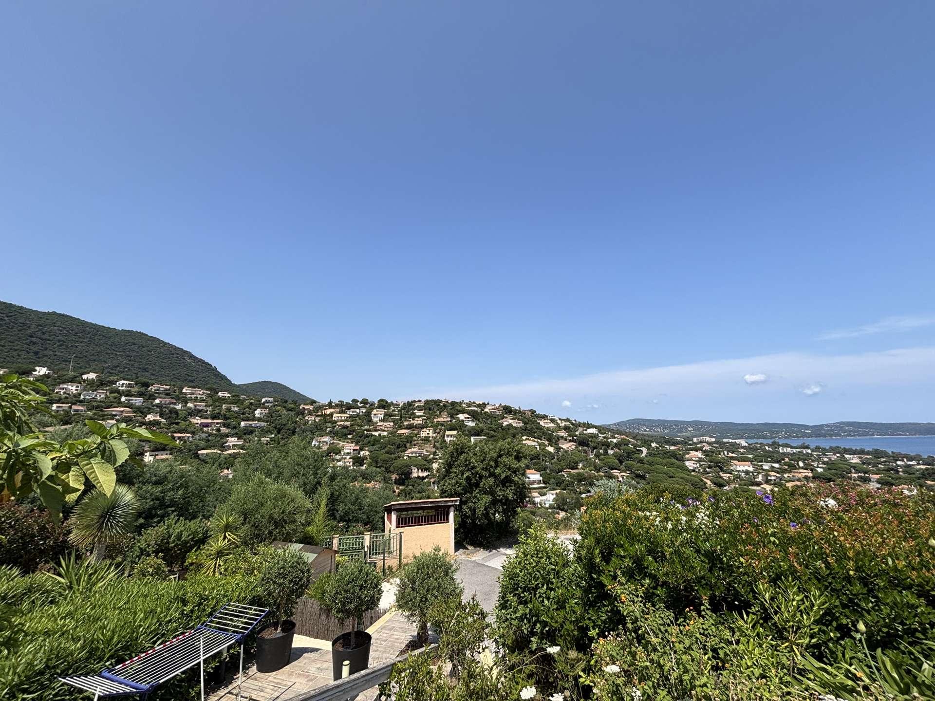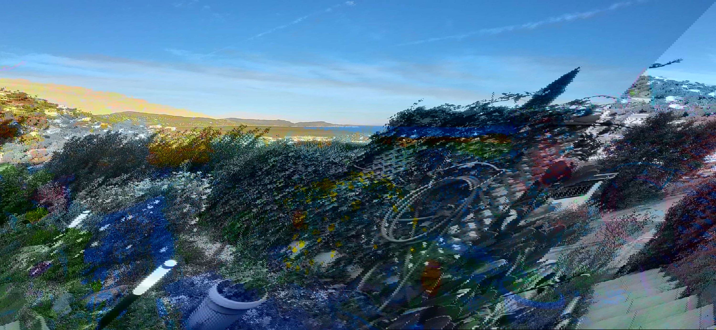 The terrace offers exceptional panoramic views of the sea, the Cavalaire hill, and the port. Access to the accommodation is via a few steps from the street.