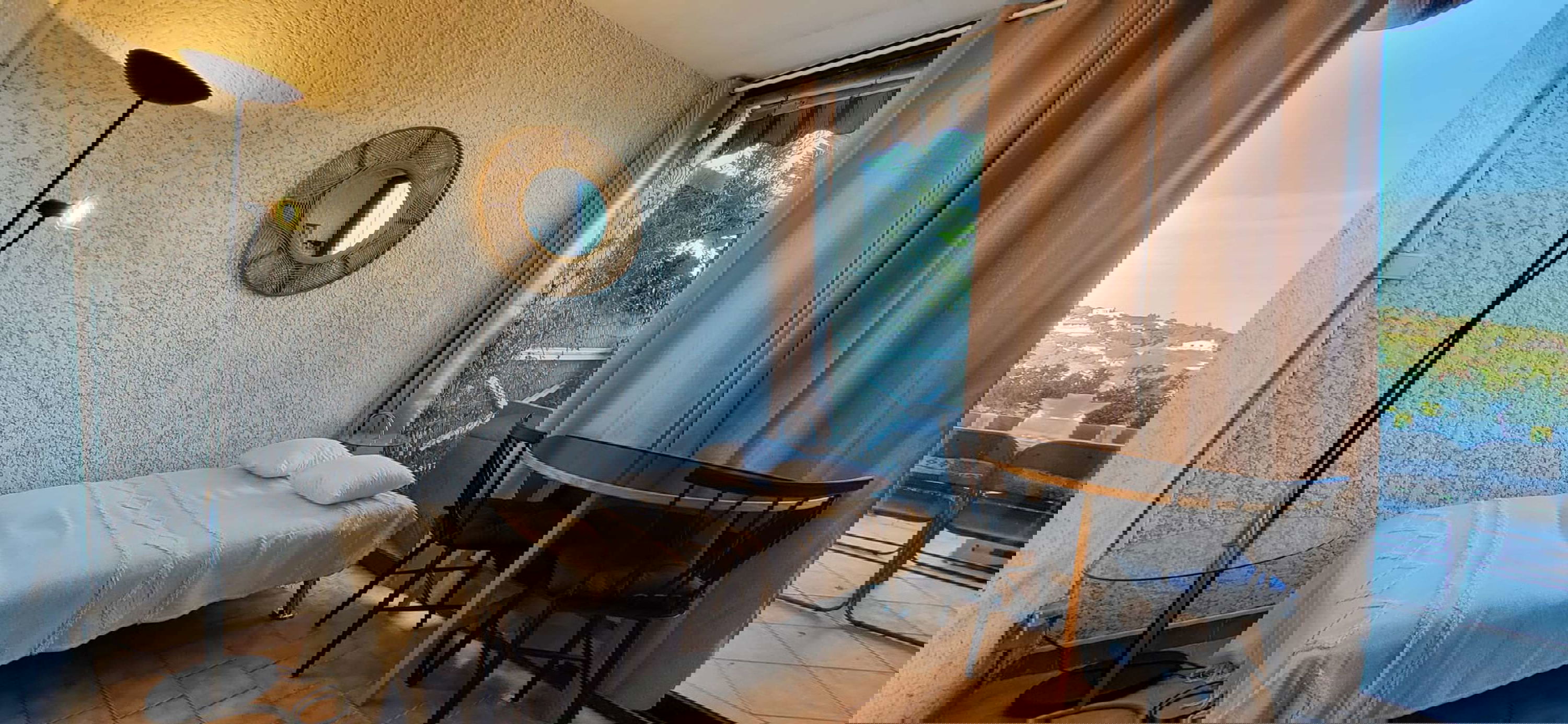 In Cavalaire-sur-Mer, within a quiet residence equipped with a swimming pool and tennis courts, discover this studio offering a beautiful view of the hills, the sea and the bay of Cavalaire.