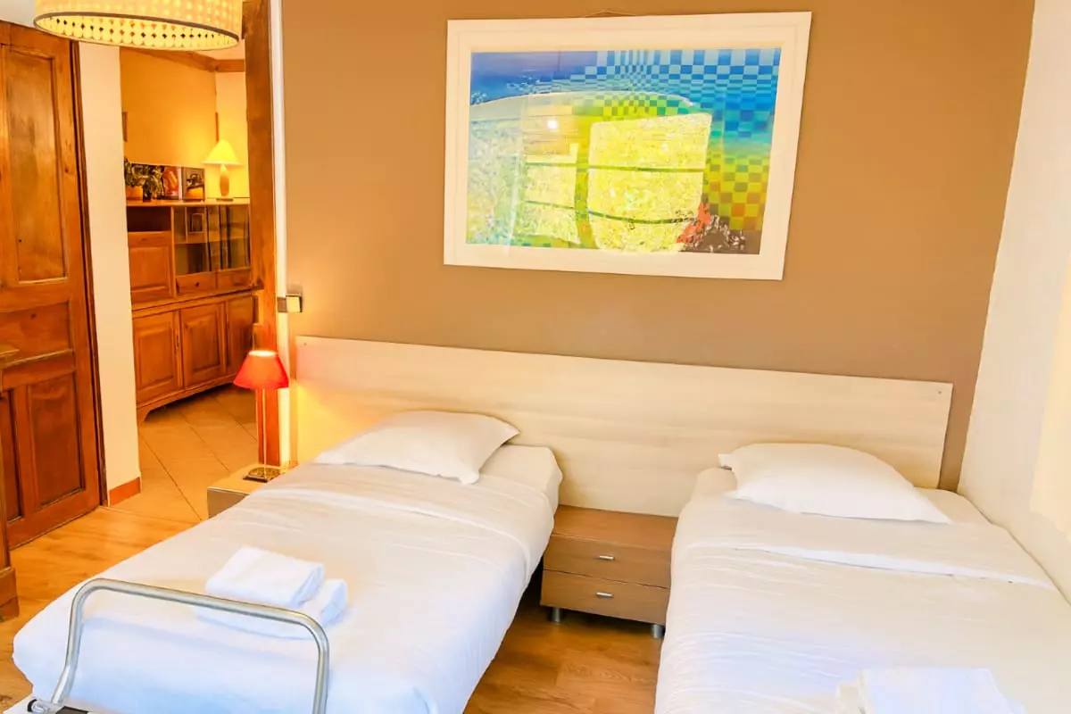 You will have at your disposal a living room with two convertible sofas and a television, a bedroom with three single beds, a fitted kitchen and a shower room.