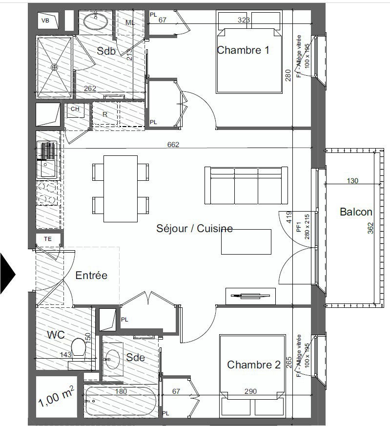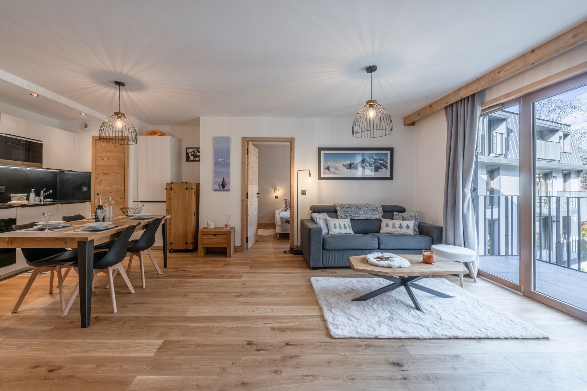 Beautiful 60sqm apartment for 4 people, located on the 3rd floor with lift in the new Blanc Mont-Blanc residence, right in the centre of Chamonix, in a quiet setting.