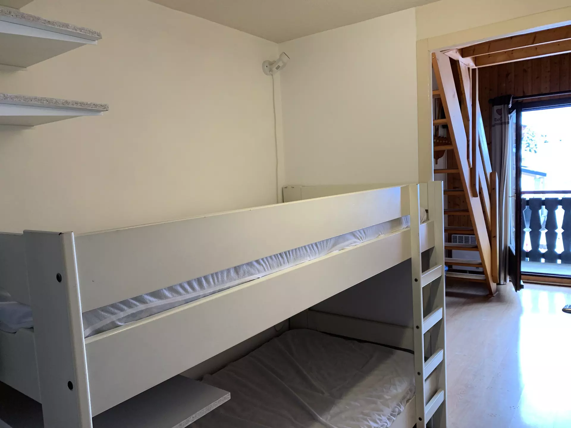 At the entrance, a mountain corner with 2 bunk beds, a fitted kitchen giving access to a balcony, bathroom and separate WC.
