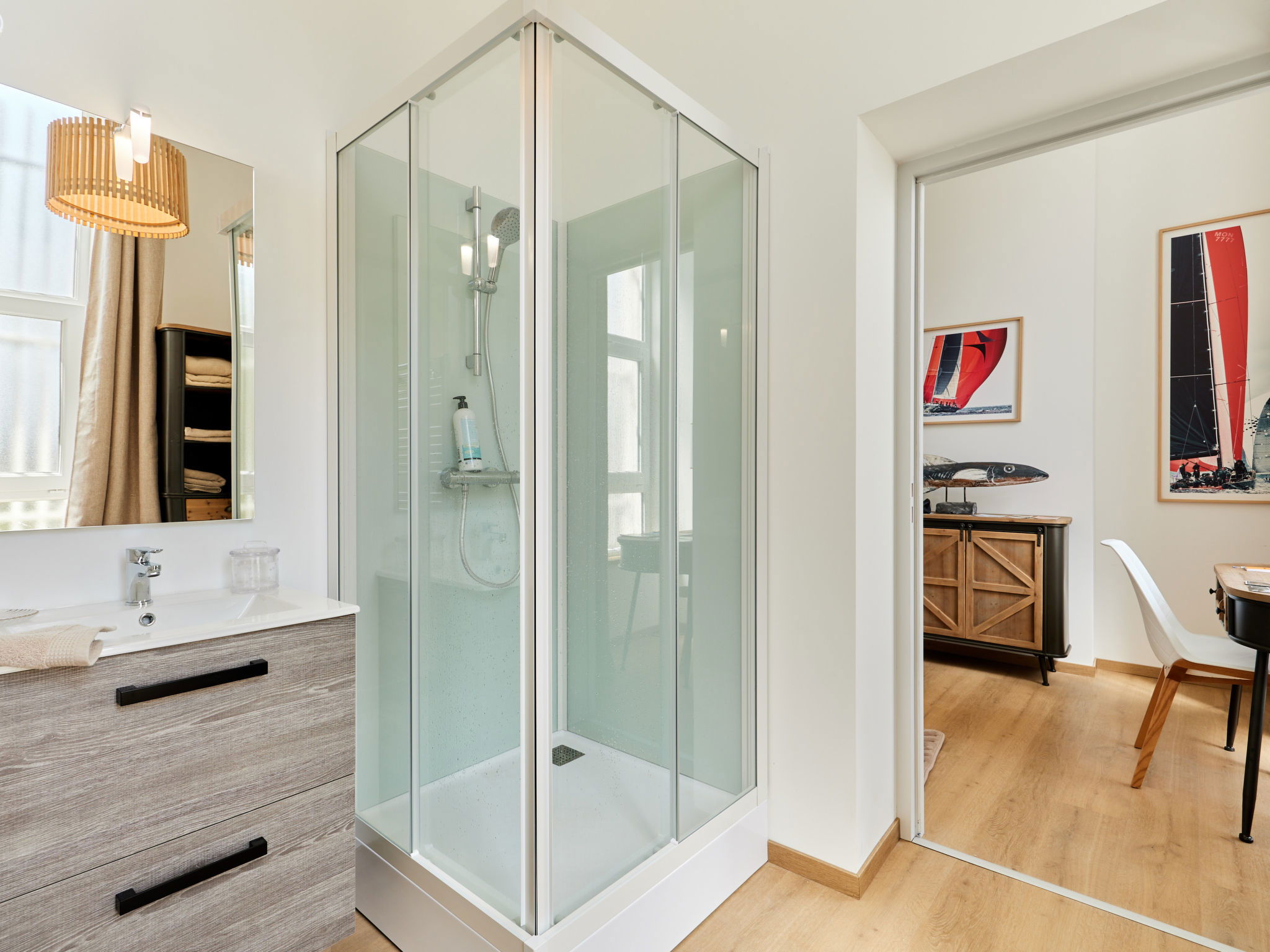Very modern, beautiful, comfortable apartment house "Le Loft", renovated in 2024. In the centre of Cherbourg, in a central, quiet position, 6 km from the sea, 6 km from the beach. Supermarket 1 km, bakery, café 200 m, bus stop 150 m, sandy beach 7 km. Sports harbour 300 m, golf course (18 hole) 5 km. Nearby attractions: La cité de la mer 300 m, Sciottot 5 km, Mont Saint Michel 140 km.