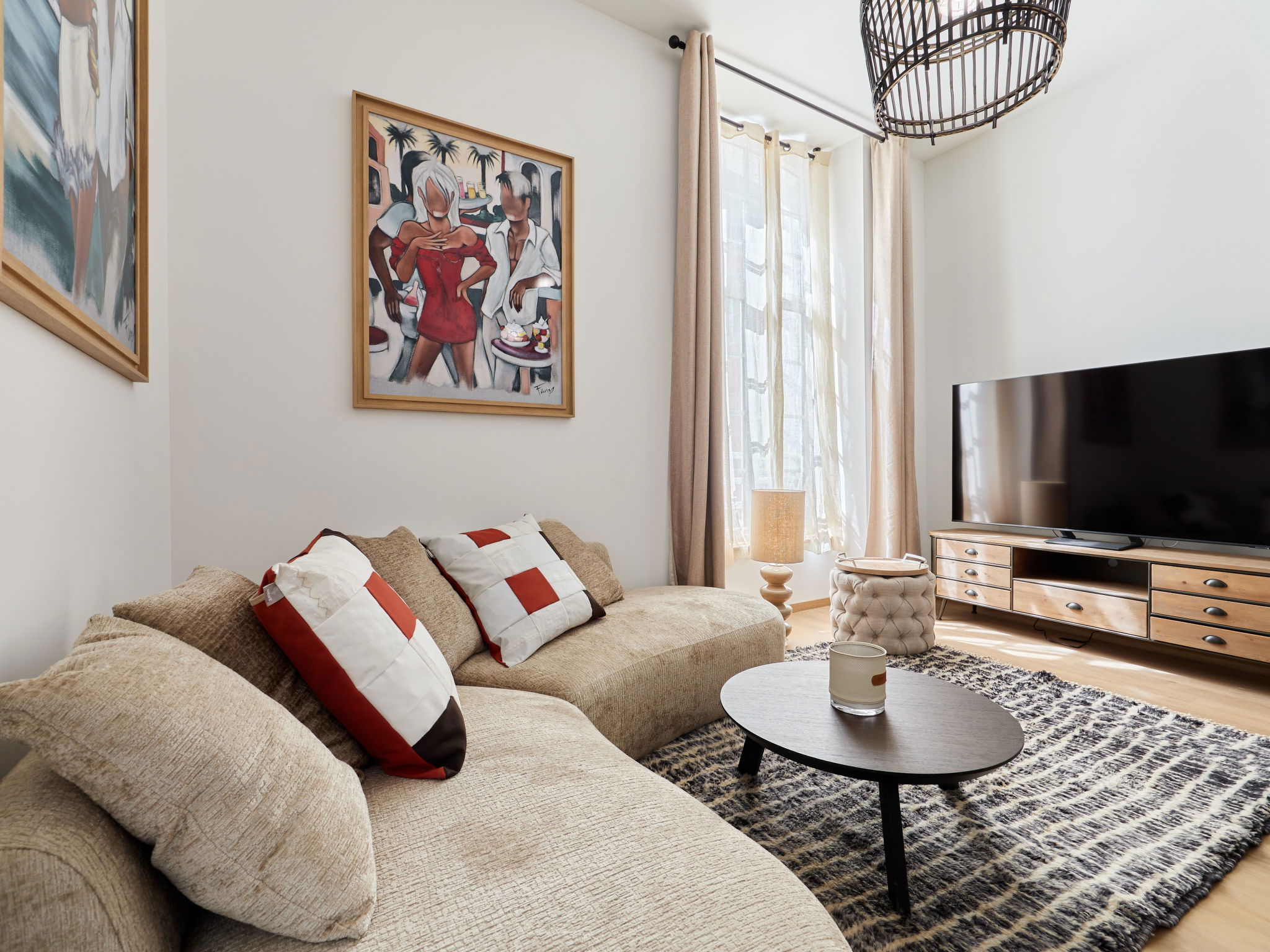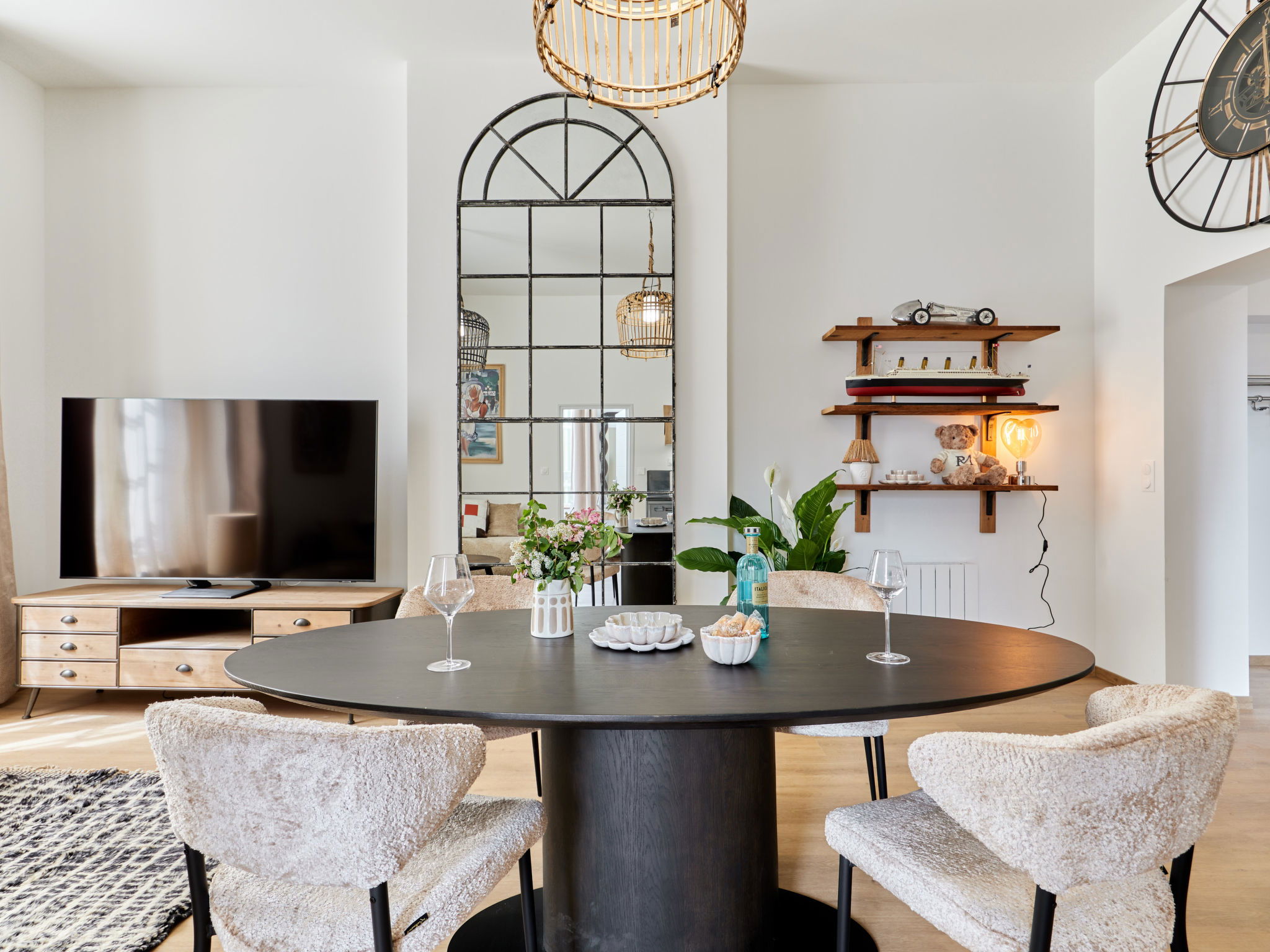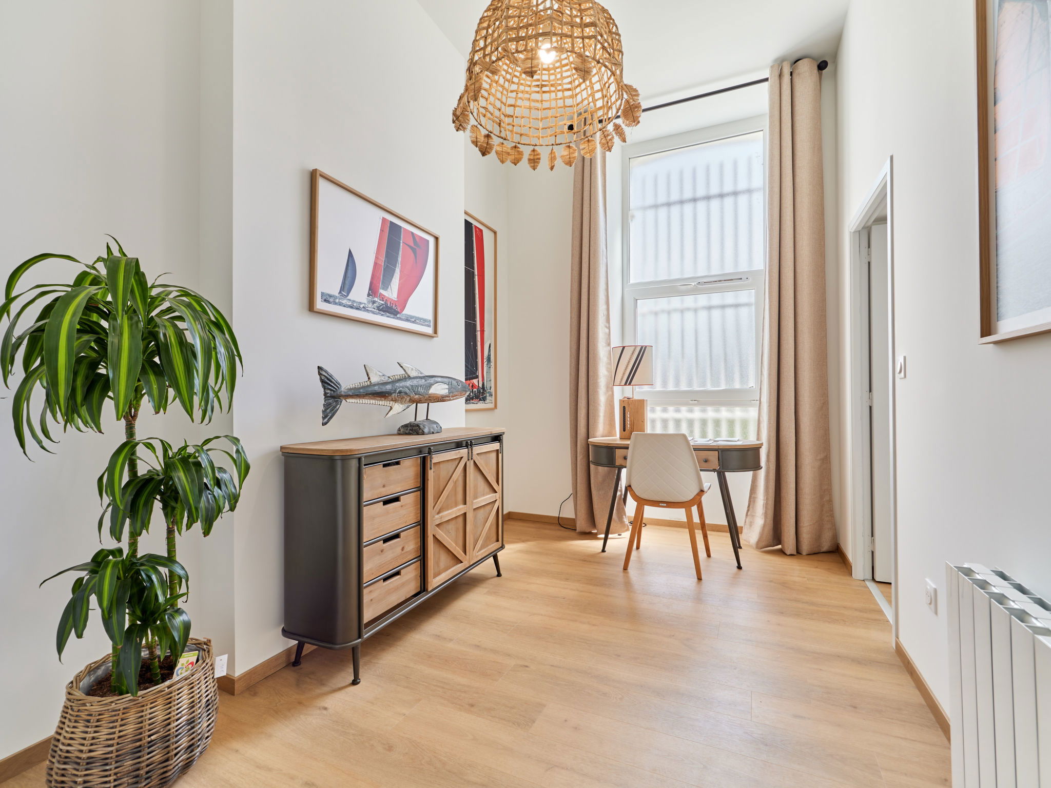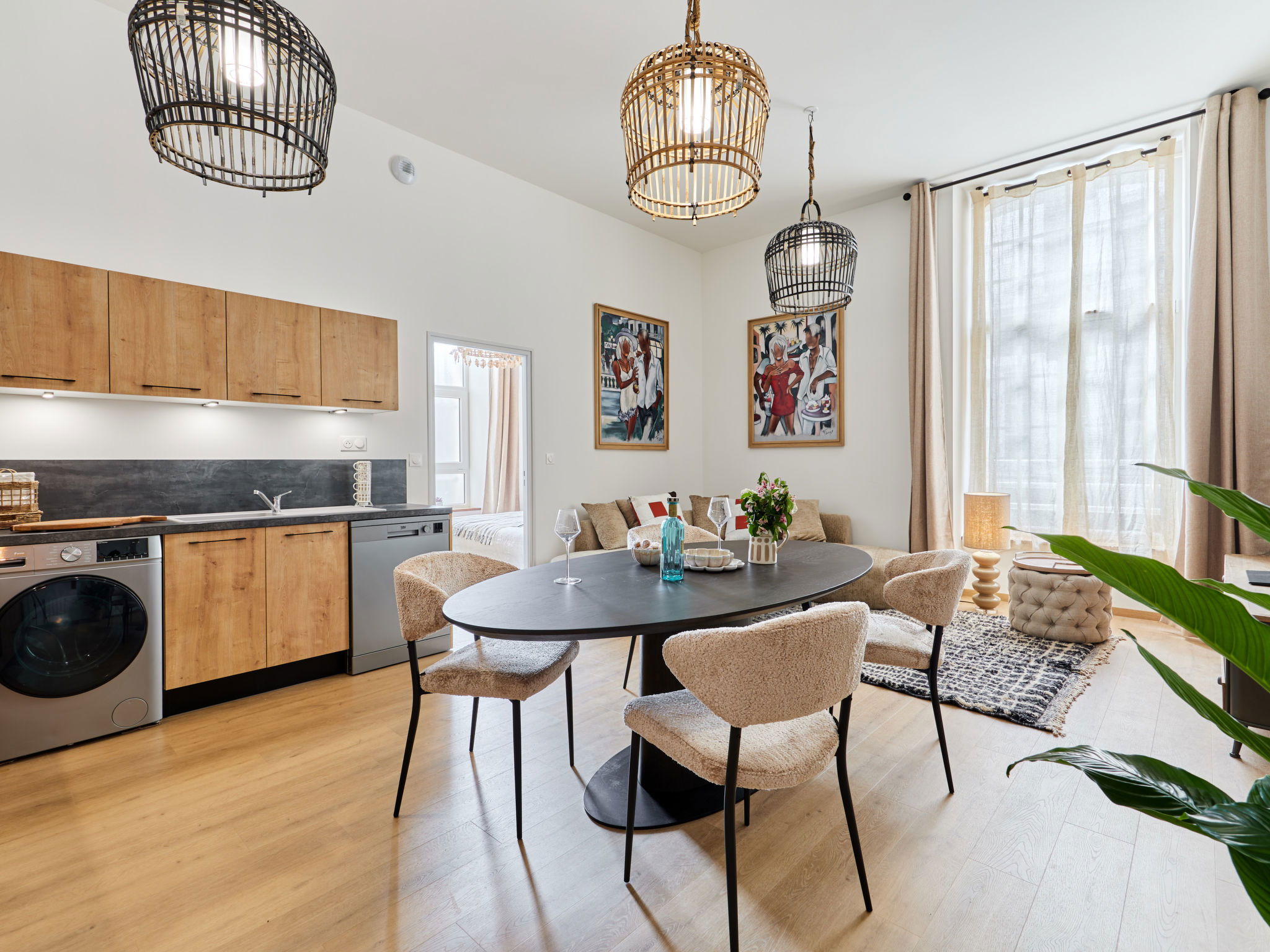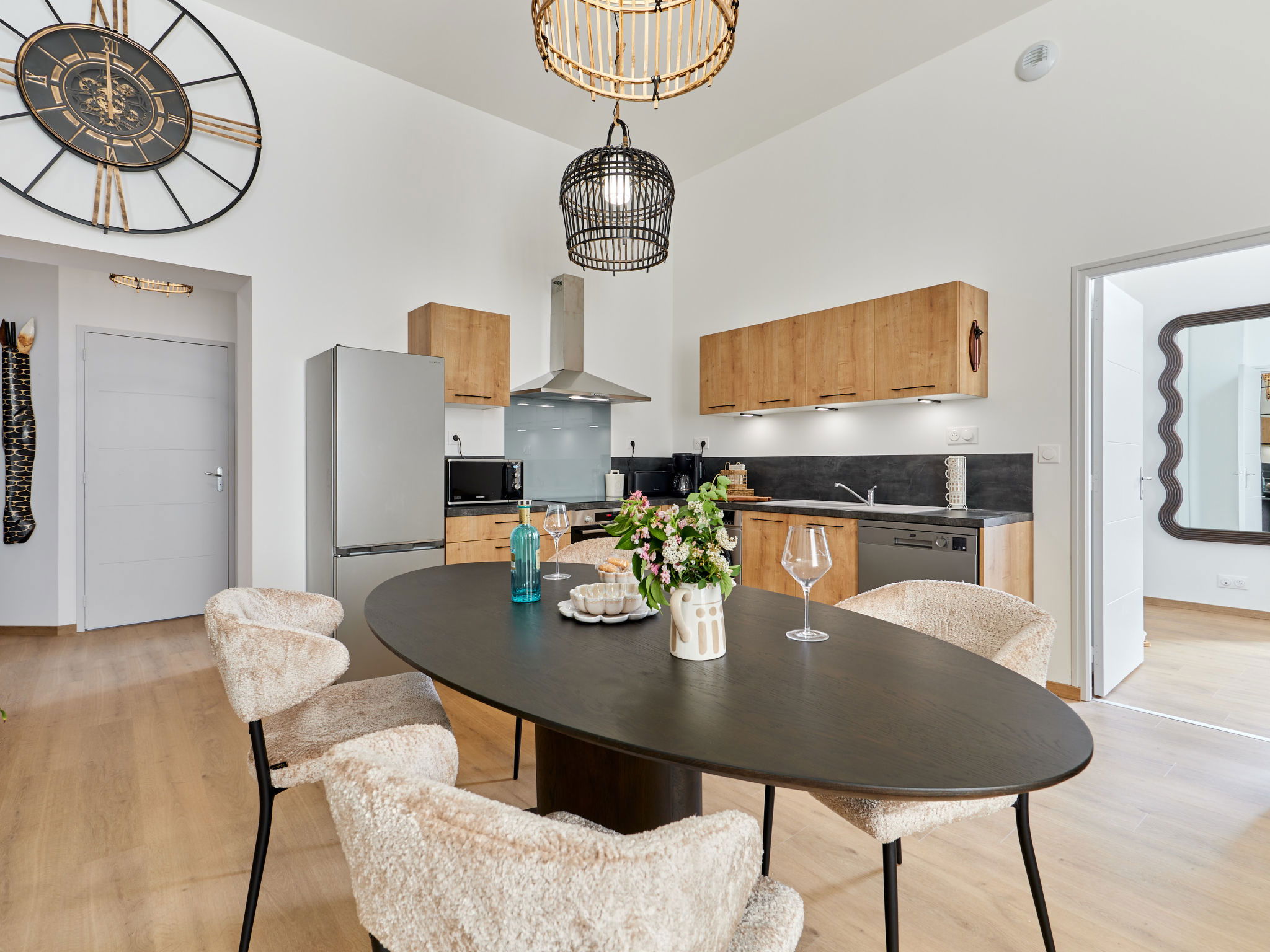 "Le Loft", 3-room apartment 68 m2. Spacious, comfortable and beautiful furnishings: living/dining room. 1 room with 1 double bed (160 cm, length 200 cm). Office with separate WC. Open kitchen (oven, dishwasher, 4 induction hot plates, toaster, kettle, microwave, electric coffee machine). Shower. Facilities: washing machine, dryer, children's high chair, baby cot. Internet (WiFi, free). Please note: maximum 1 pet/ dog allowed. Smoke alarm. Offer by a private individual according to Art. 155, IV of CGI.