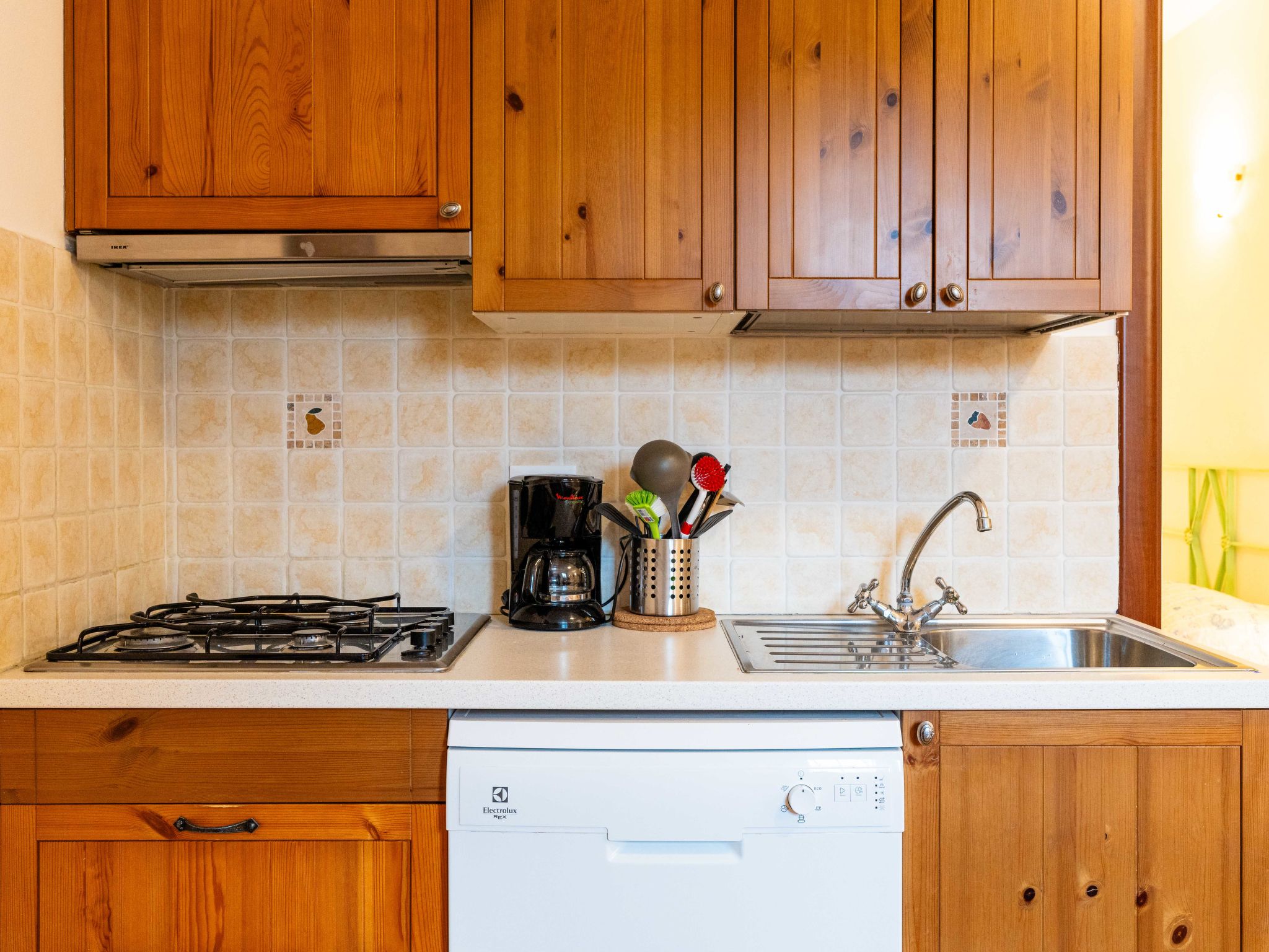 "Rose", 3-room apartment 65 m2, on the ground floor. Practical and cosy furnishings: living/dining room. 1 double bedroom. 1 room with 1 french bed (140 cm, length 200 cm). Kitchenette (dishwasher, 4 gas rings, toaster, kettle, microwave, electric coffee machine). Shower/bidet/WC. Gas heating, air-conditioning, forced-air heating. Heating available only from 01.11. to 15.04, Solar power. Garden. Terrace furniture, barbecue. Panoramic view of the sea and the resort. Facilities: washing machine, children's high chair, baby cot for up to 2 year olds, hair dryer. Internet (WiFi, free). Please note: maximum 1 pet/ dog allowed. Private entrance. IT008022B4TIB4YYCI