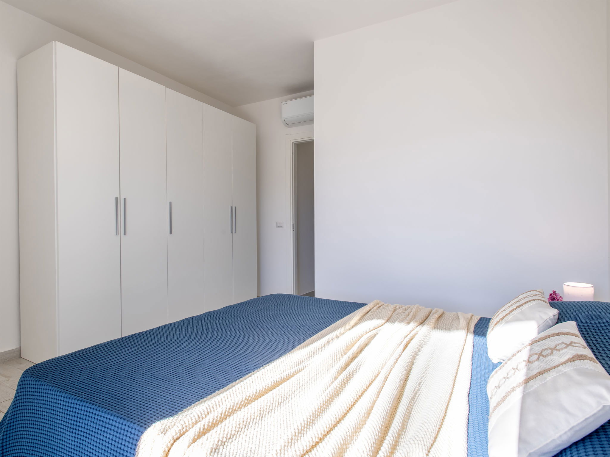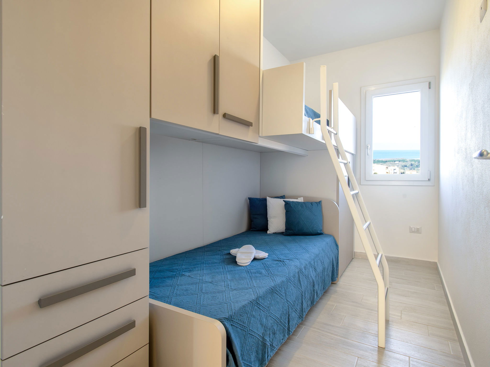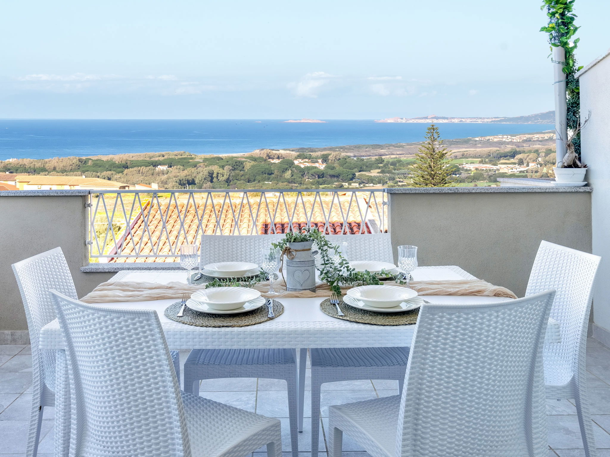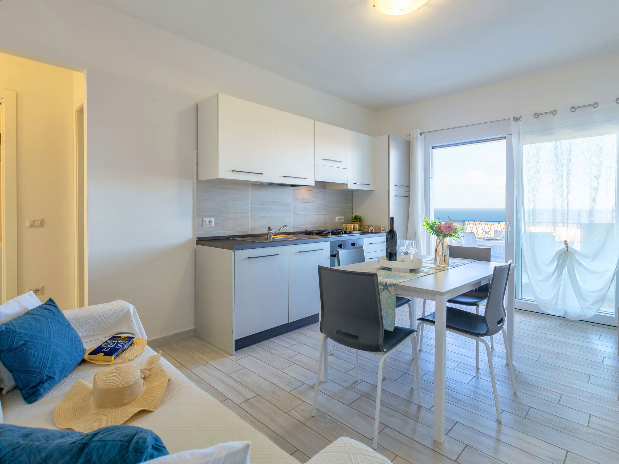 "Vista Blu", 3-room apartment 55 m2 on 1st floor. Comfortable and modern furnishings: living/dining room with 1 sofabed and TV (flat screen). Exit to the terrace. 1 double bedroom. 1 room with 1 x 2 bunk beds. Kitchenette (oven, dishwasher, 4 induction hot plates, toaster, kettle, microwave). Shower/bidet/WC. Air-conditioning, forced-air heating. Heating not available in all rooms. Terrace partly roofed. Terrace furniture. Very beautiful panoramic view of the sea. Facilities: washing machine, iron, hair dryer. Maximum 1 pet/ dog allowed. IT090079C2000S9312