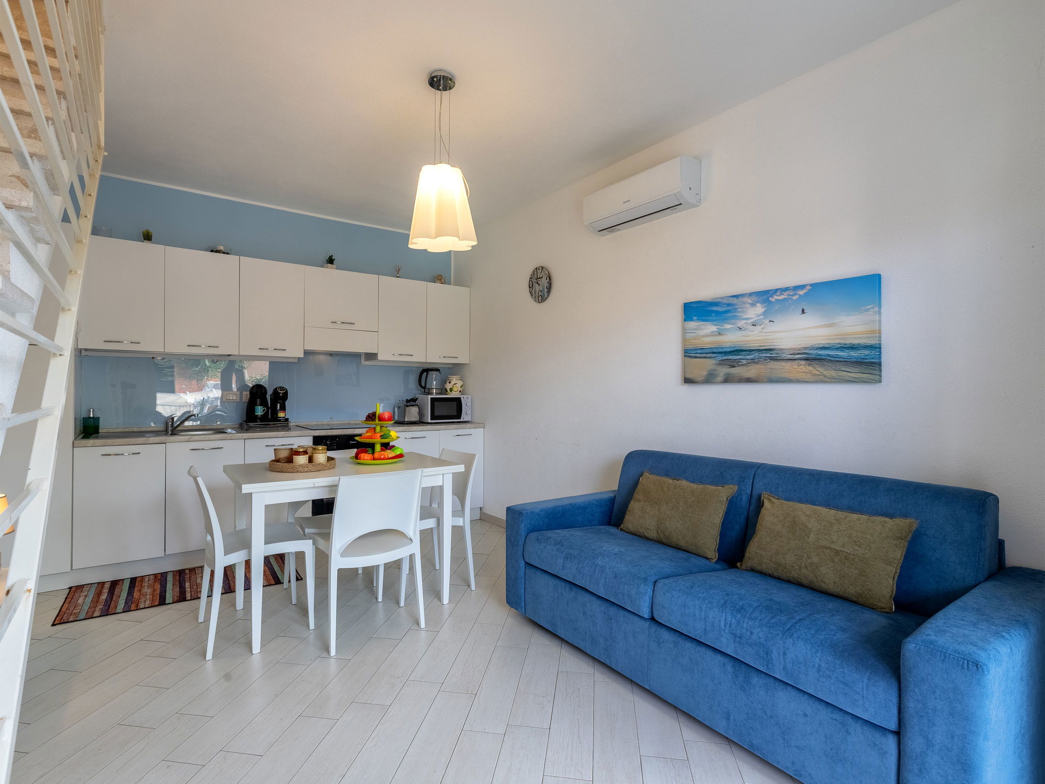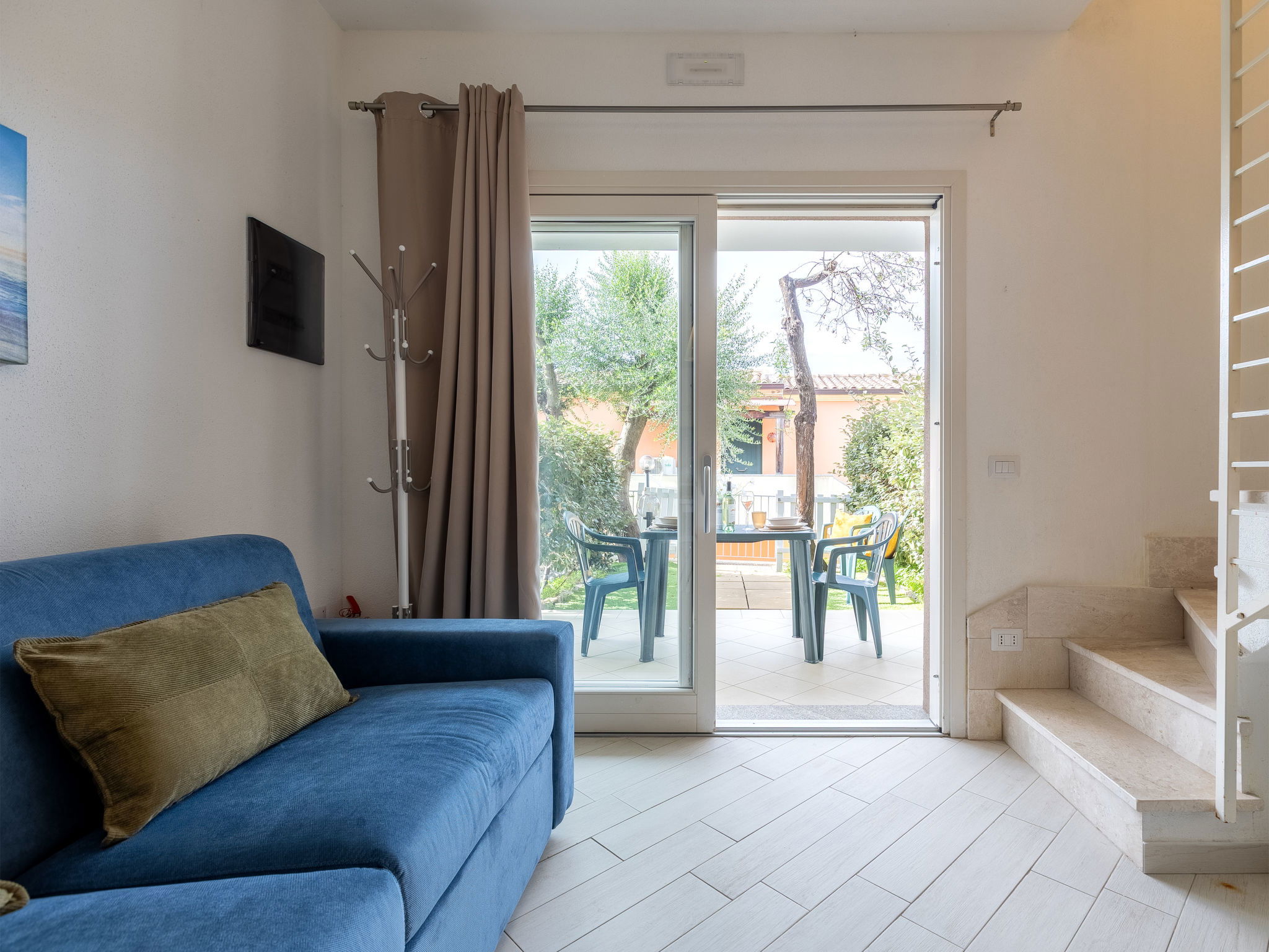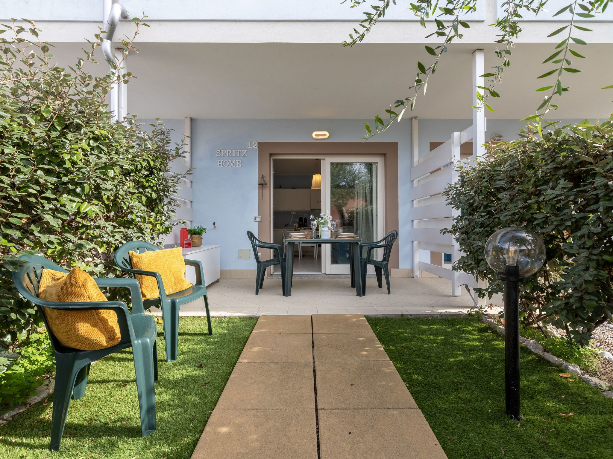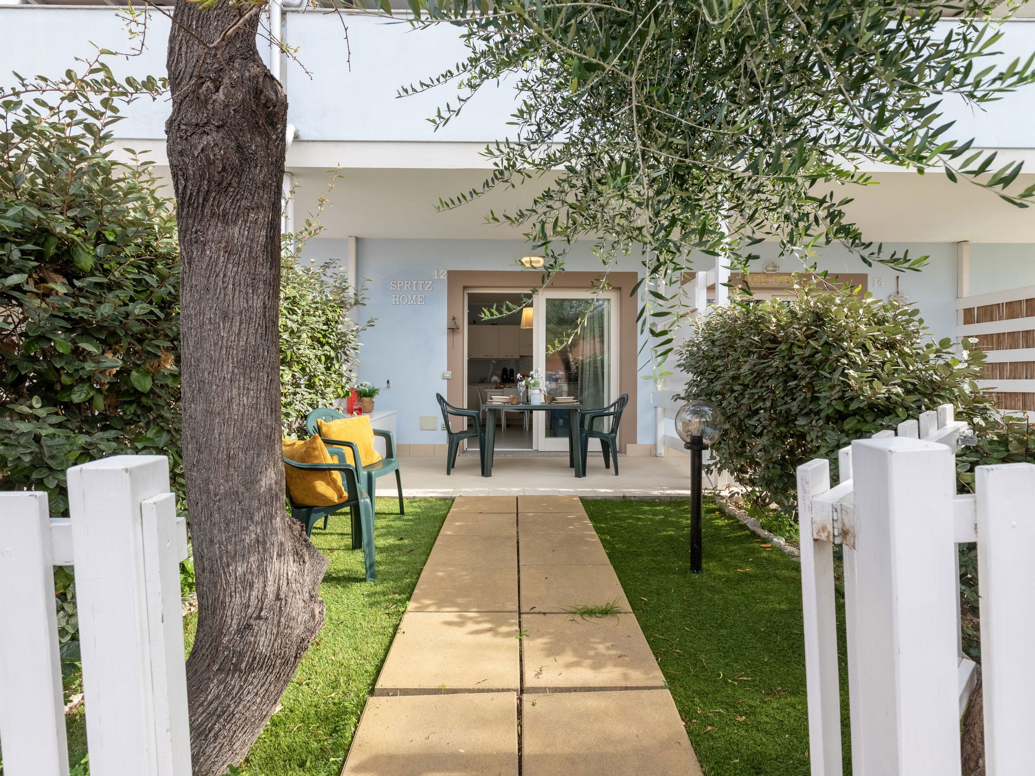 "Spritz Home", 2-room apartment 47 m2 on 2 levels, on the ground floor. Beautiful and tasteful furnishings: living/dining room with sliding door with 1 double sofabed and TV (flat screen). Exit to the garden. Kitchenette (oven, 4 induction hot plates, toaster, kettle, microwave, electric coffee machine). Upper floor: 1 double bedroom with panoramic window. Exit to the balcony. Shower/bidet/WC. Air-conditioning, boiler. Balcony furniture. Facilities: washing machine, iron, hair dryer. Internet (WiFi, free). Parking space n 33. Please note: suitable for families. Maximum 1 small pet/ dog allowed. Fire extinguisher. IT090082C2000Q8704