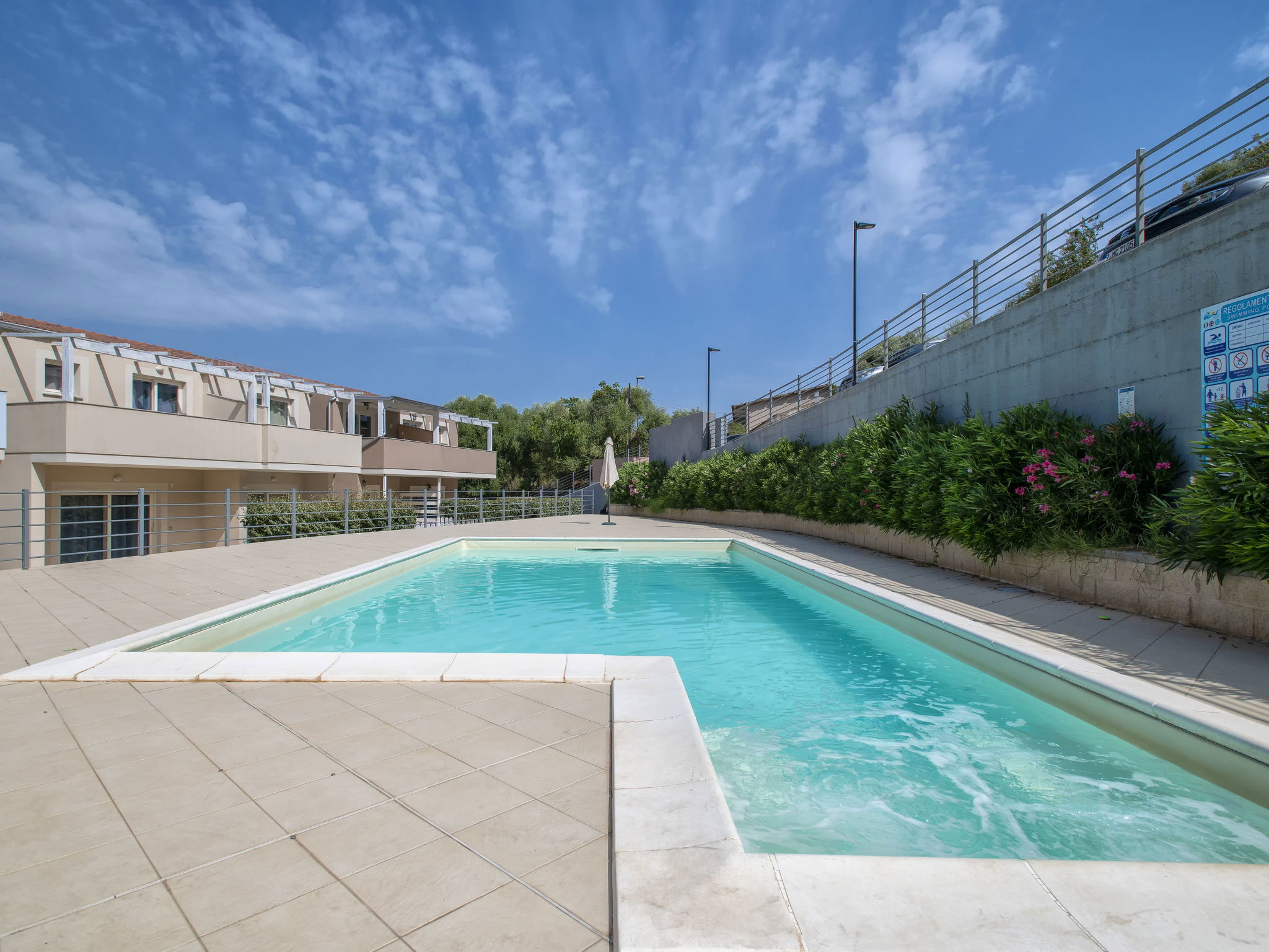 Modern, comfortable residence, 2 storeys, terraced. In the district of Viddalba 9 m from the centre of Valledoria, 9 km from the sea. For shared use: swimming pool (5 x 10 m, depth 110 - 170 cm, seasonal availability: 16.Jun. - 16.Sep. pool opening hours: 09:00-13:00 and 16:00-20:00). Stepped path to the house. Parking at the house. Supermarket 1.2 km, restaurant 400 m, bar 300 m, bus stop "Viddalba Comune" 1 km, sandy beach "Baia Delle Mimose" 9 km. Nearby attractions: Castelsardo 22 km, Aeroporto di Olbia 105 km, Aeroporto di Alghero 91 km, Isola Rossa 18 km, Spiaggia di Cala Li Cossi 30 km. Please note: car recommended. Suitable for families.