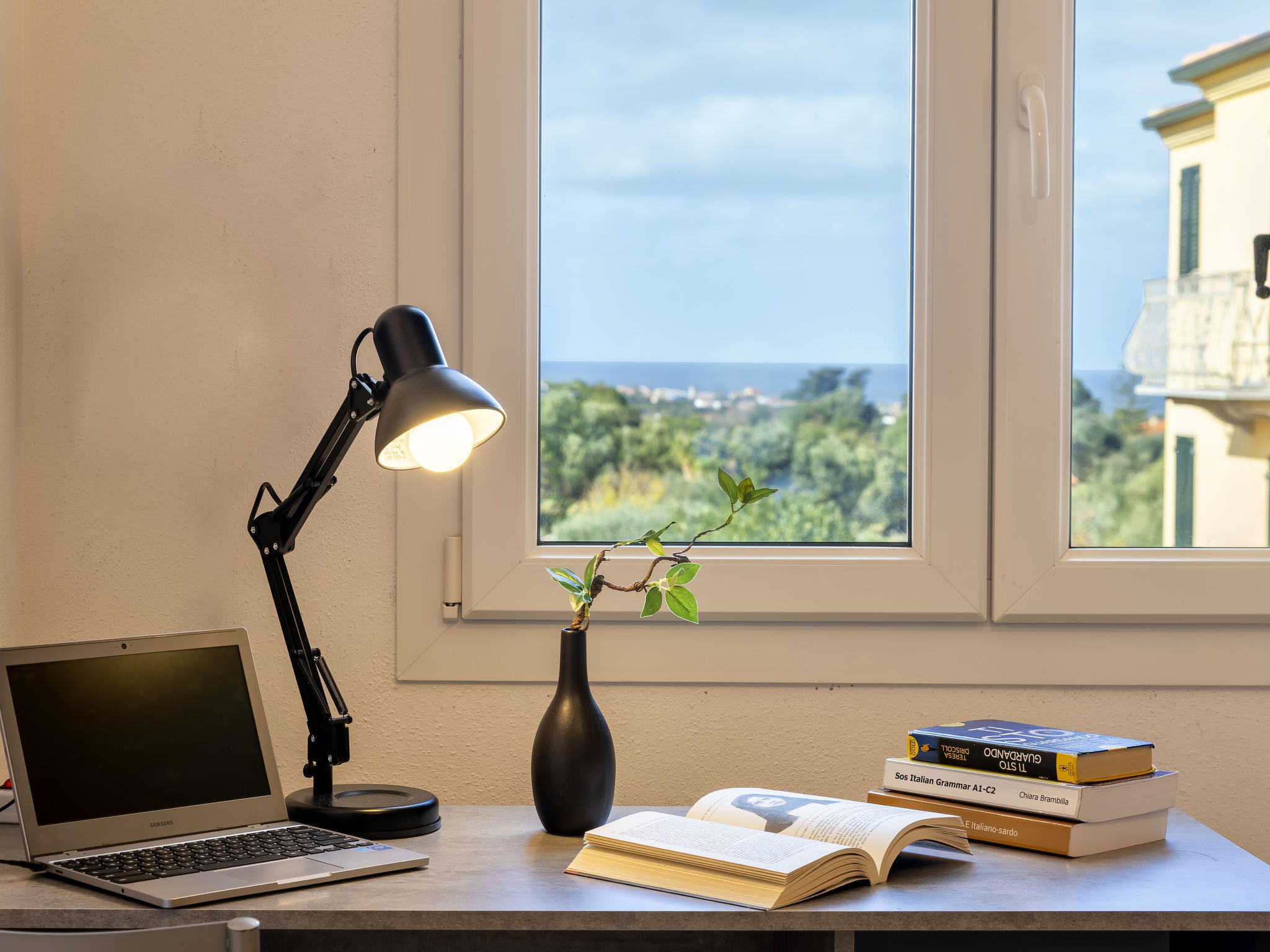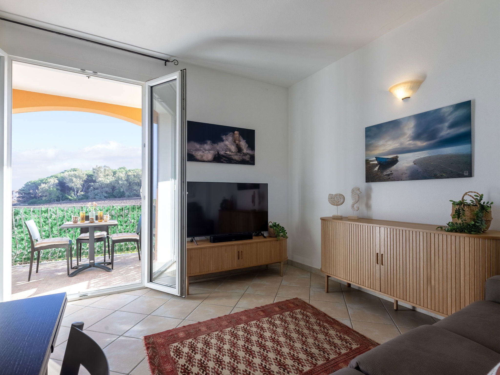 "Arianna", 3-room apartment 73 m2 on 2nd floor. Comfortable and beautiful furnishings: living/dining room with TV (flat screen). Exit to the balcony. 1 double bedroom with TV (flat screen). Exit to the balcony. 1 room with 1 x 2 bunk beds. Open kitchen (oven, 4 induction hot plates, toaster, kettle, microwave, electric coffee machine). Shower/bidet/WC. Air-conditioning, forced-air heating. Small balcony 3 m2. Balcony furniture, sitting area. View of the sea and the countryside. Facilities: washing machine, iron, hair dryer. Internet (WiFi, free). Please note: non-smokers only. Maximum 1 small pet/ dog allowed. IT090079C2000U0289