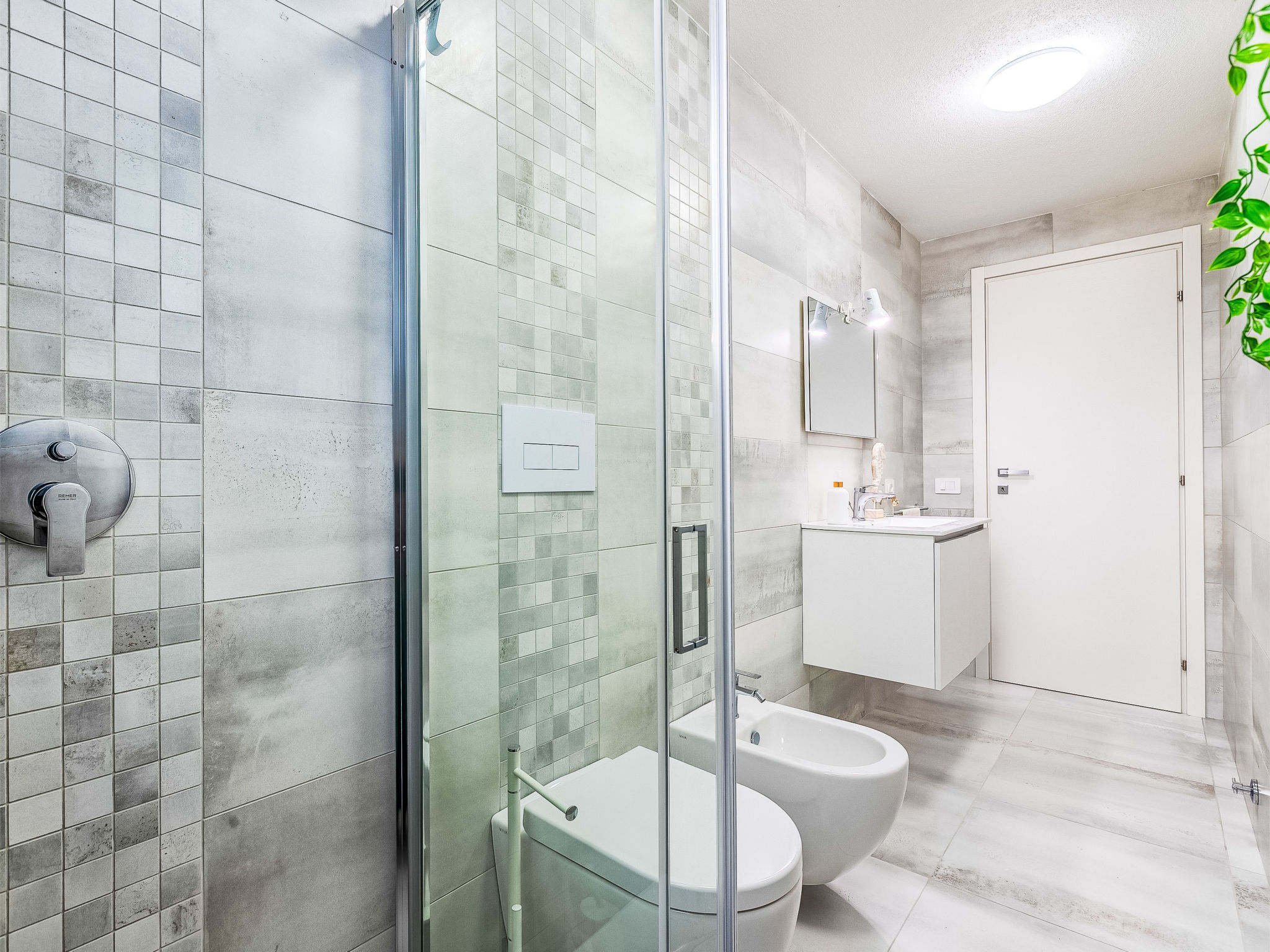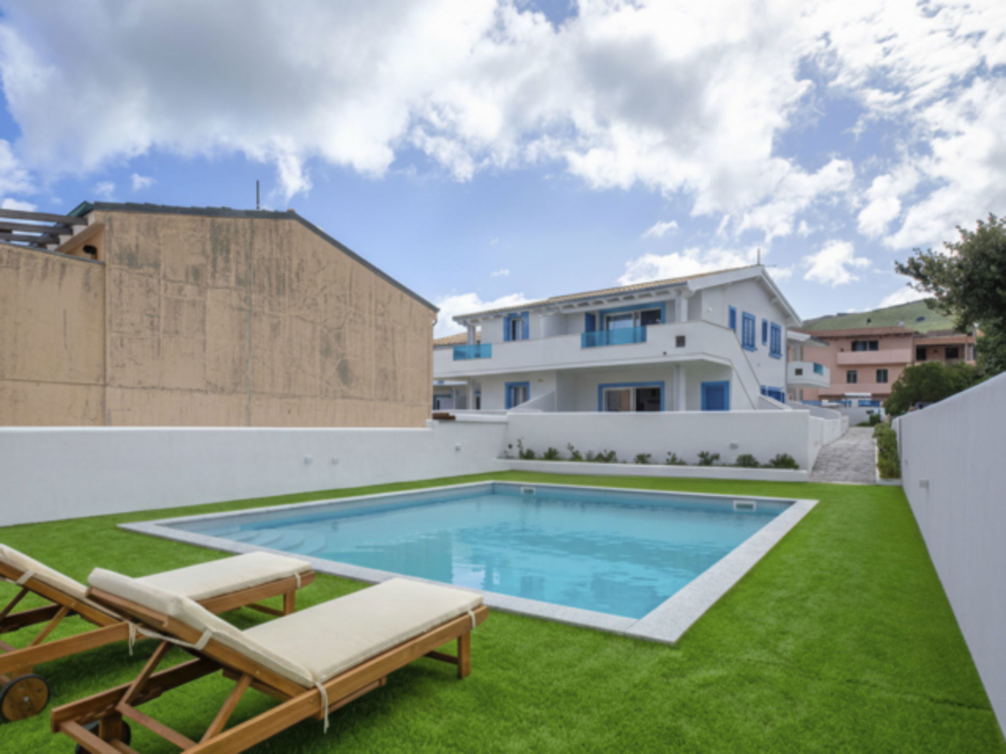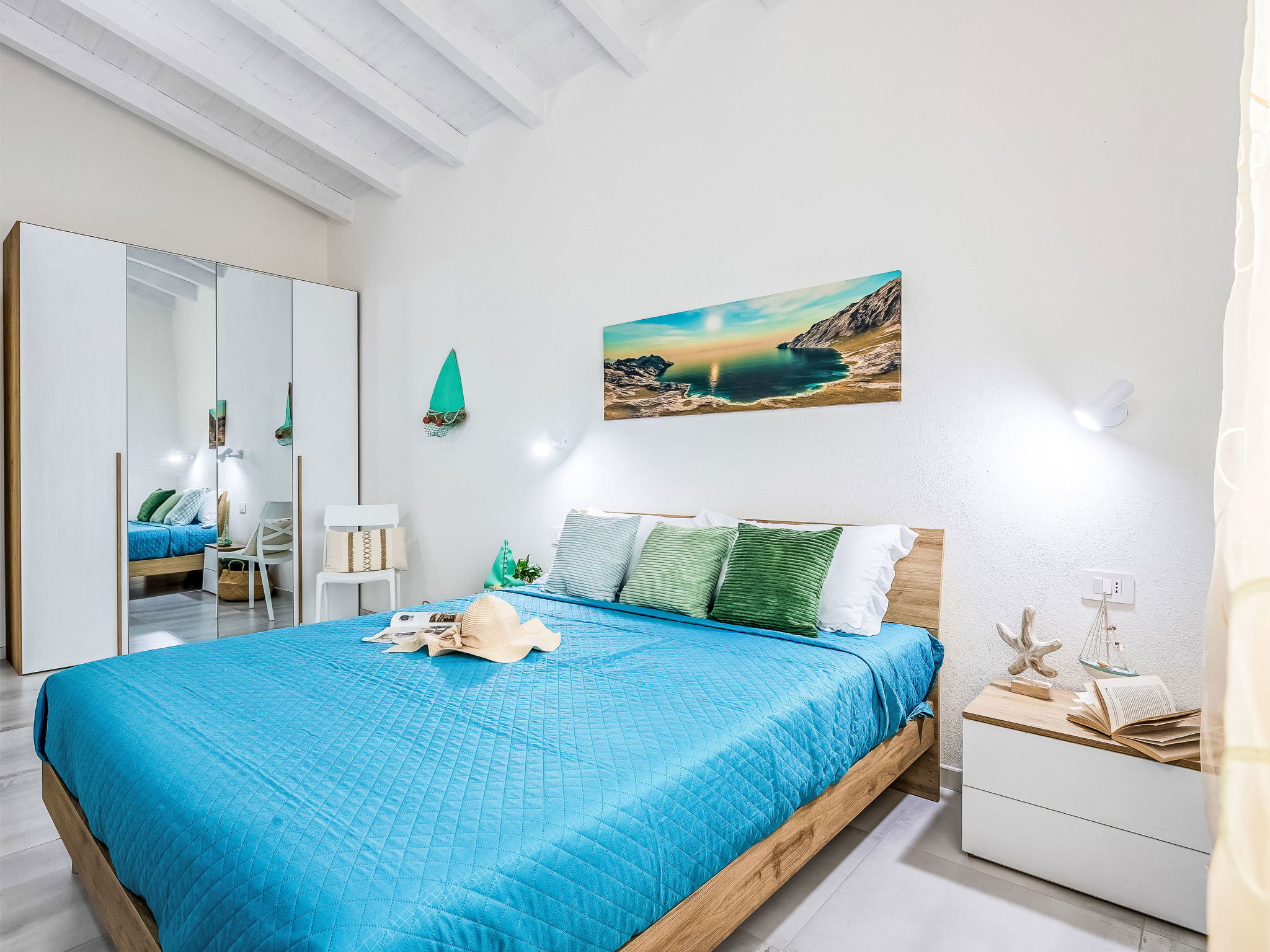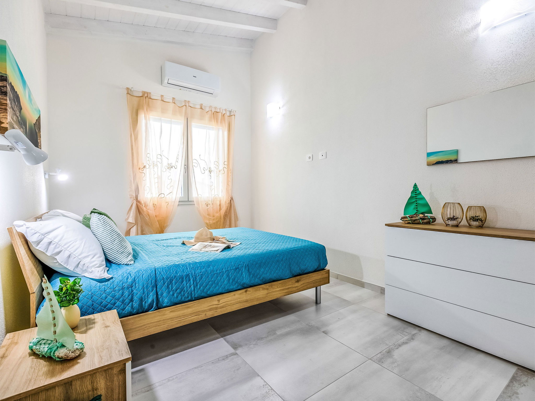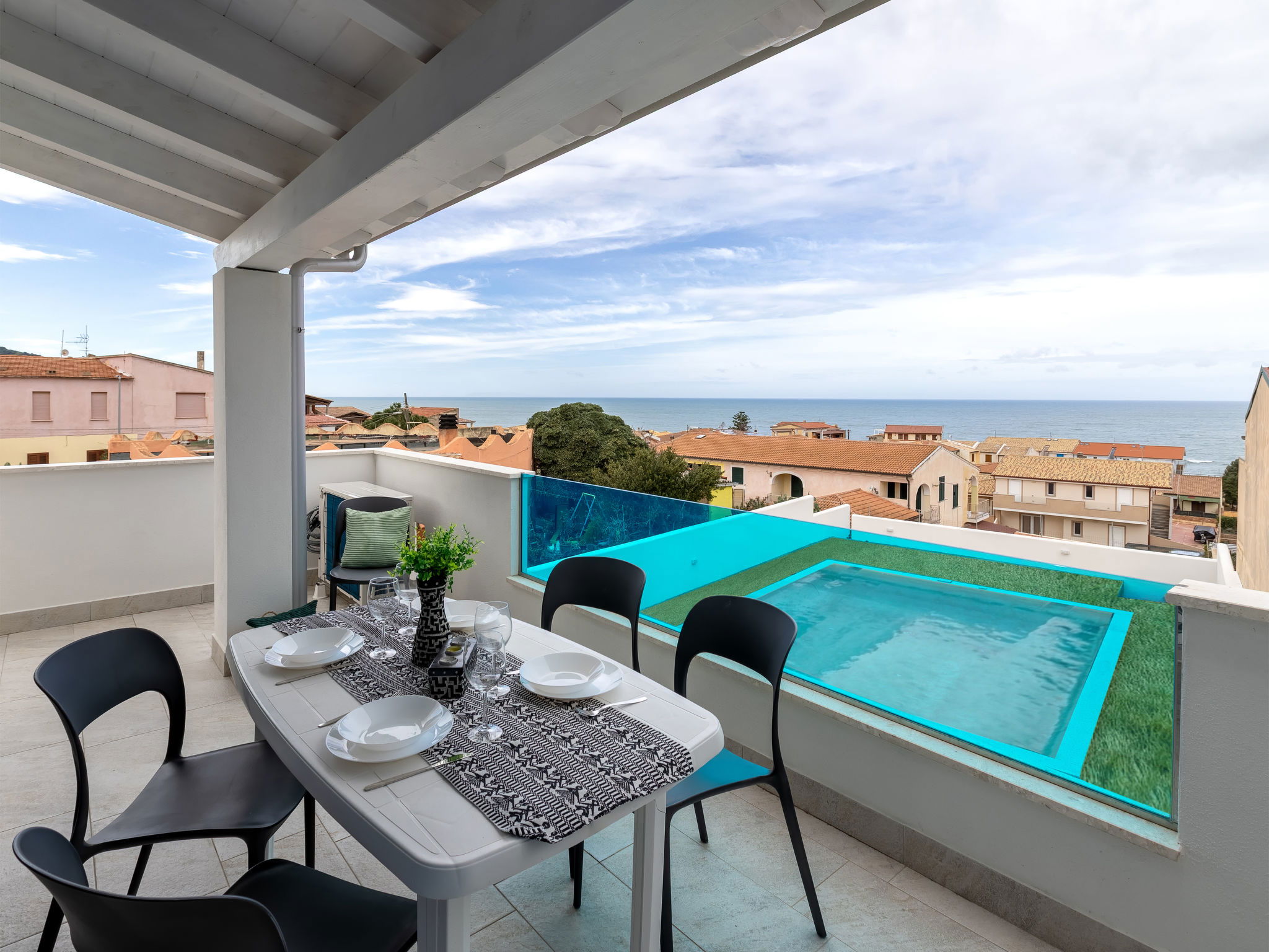 "Cristallo di mare", 3-room penthouse 64 m2 on 1st floor. Bright, modern and cosy furnishings: living/dining room with satellite TV. Exit to the terrace. 2 rooms, each room with 1 double bed and satellite TV. Kitchenette (oven, dishwasher, 4 induction hot plates, toaster, kettle, microwave). Shower/bidet/WC. Air-conditioning, forced-air heating. Partly. Terrace furniture, sitting area. Very beautiful view of the sea and the swimming pool. Facilities: iron, mosquito net, hair dryer. Internet (WiFi, free). Parking (1 car) at the house. Maximum 1 small pet/ dog allowed. IT090079C2000U1841