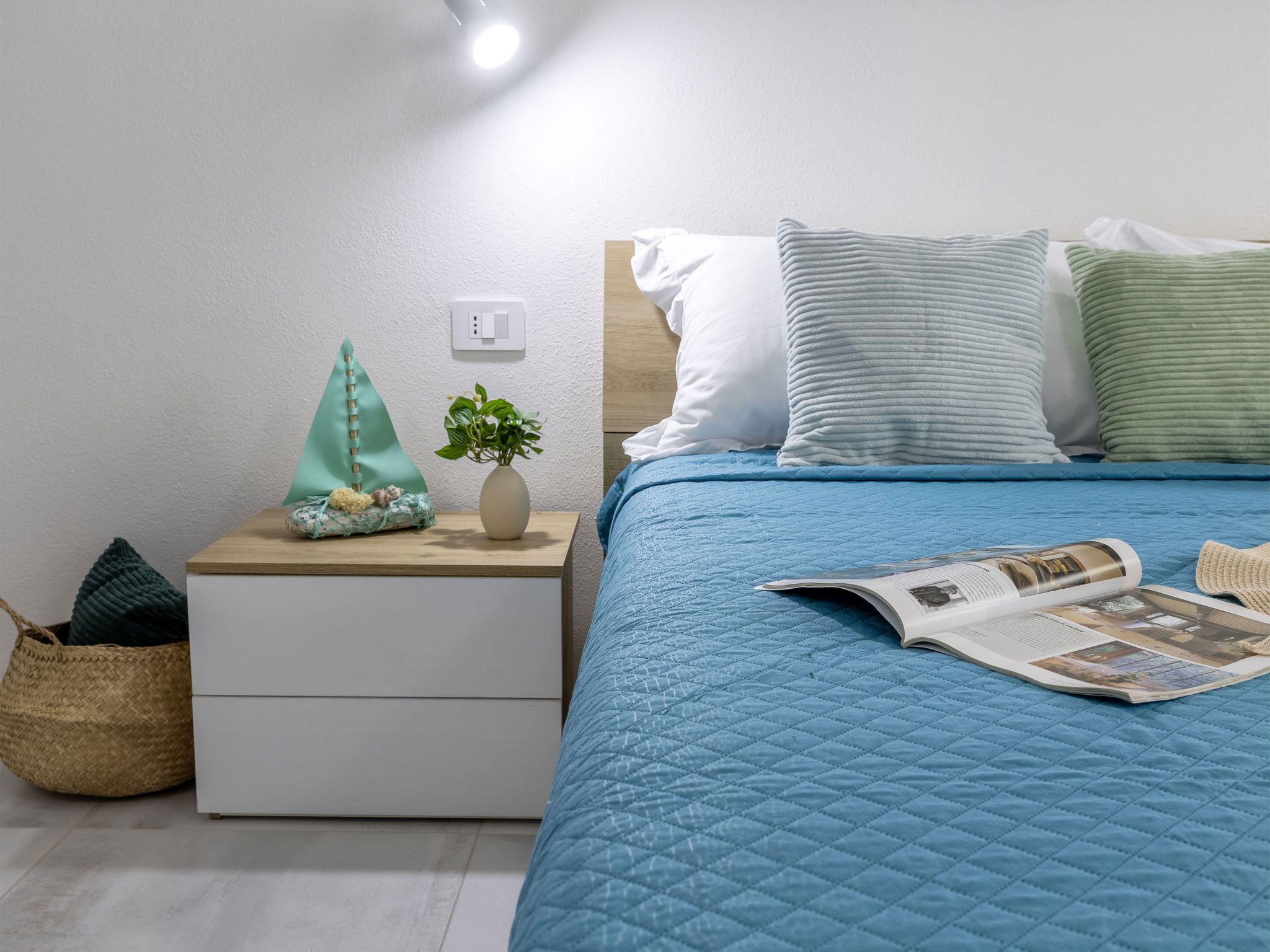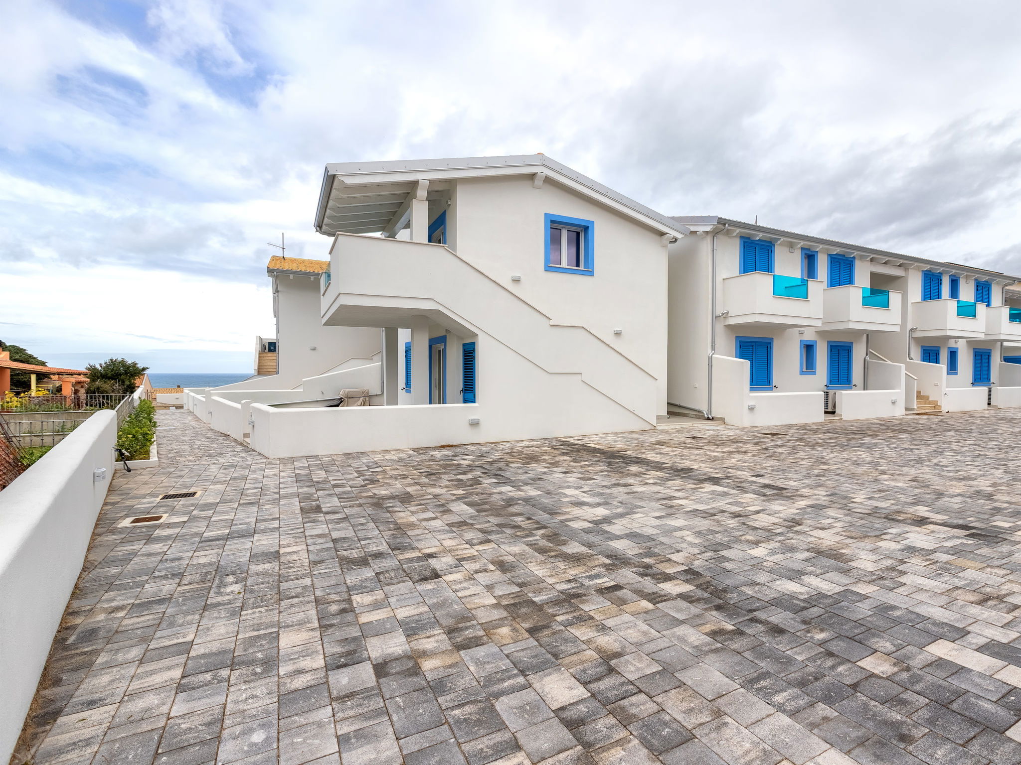 Modern residence "Azzurro", semi-detached, built in 2025. In the resort La Ciaccia, 3 km from the centre of Valledoria, in a sunny position, 250 m from the sea, 250 m from the beach. For shared use: swimming pool (8 x 10 m, depth 120 cm, seasonal availability: 15.Jun. - 30.Sep.). Outdoor shower, parking at the house, public parking. Grocery 200 m, supermarket 2 km, restaurant, bar 100 m, bus stop 3 km, sandy beach "Spiaggia la Ciaccia" 600 m pebble beach 150 m. Surf school 500 m, tennis 400 m. Nearby attractions: Castelsardo 13 km, Alghero 81 km, Costa paradiso 32 km, Olbia 89 km, Porto Cervo 86 km, Porto Rotondo 92 km. Please note: car recommended.