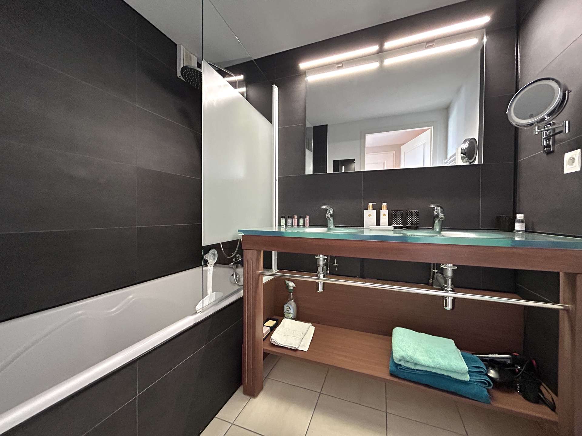 Les Plus de cette location de vacances : un balcon avec salon de jardin offrant une vue dégagée sur la piscine et le golf, un parking privatif en sous-sol, ainsi qu’une piscine chauffée et sécurisée, ouverte de juin à mi-septembre.