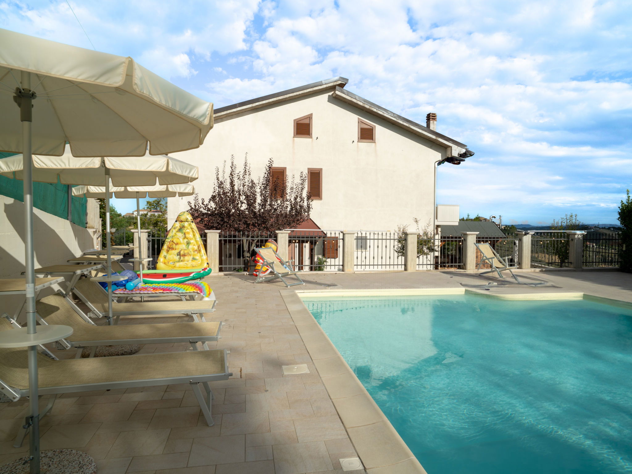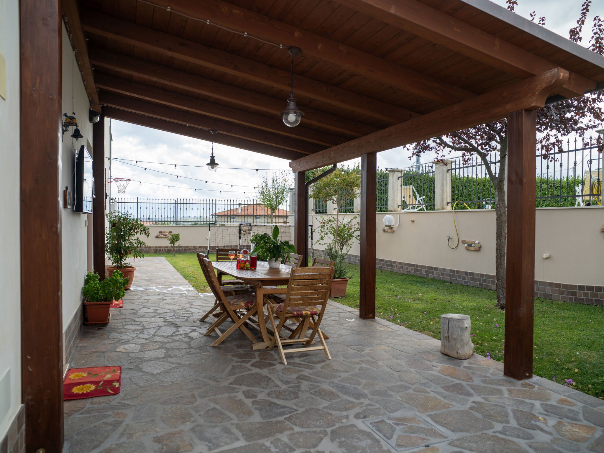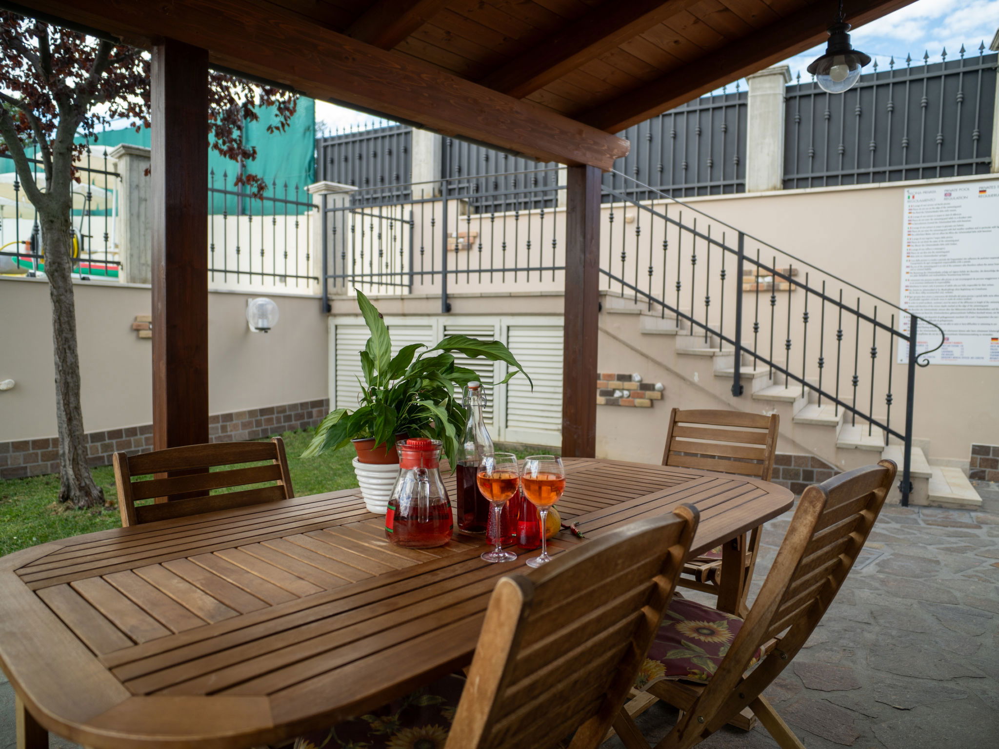 2-family house "Dolce Vita", renovated in 2016. 3 km from the centre of Collecorvino, 24 km from the centre of Pescara, outside the resort Collecorvino, on a slope, 21 km from the sea. For shared use: property 1'500 m2 (fenced), well-kept garden, courtyard. Private: swimming pool fenced (12 x 6 m, depth 100 - 190 cm, seasonal availability: 01.May. - 30.Oct.) with salt-electrolysis pool-cleaning system. Outdoor shower, terrace, garden furniture, barbecue house, parking (for 5 cars) on the premises. Shop 3 km, supermarket 3 km, bus stop 100 m, railway station "Pescara Centrale" 23 km, sandy beach "Montesilvano" 21 km. Nearby attractions: Chiostro e convento 3 km, Castello con la sua torretta 7 km, Parco Fluviale 10 km. Please note: Loading and unloading of baggage is possible at the holiday house. Residence with electric gates. The owner lives in the same residence. Motorway 20 km from the property. Airfield 25 km from the property.