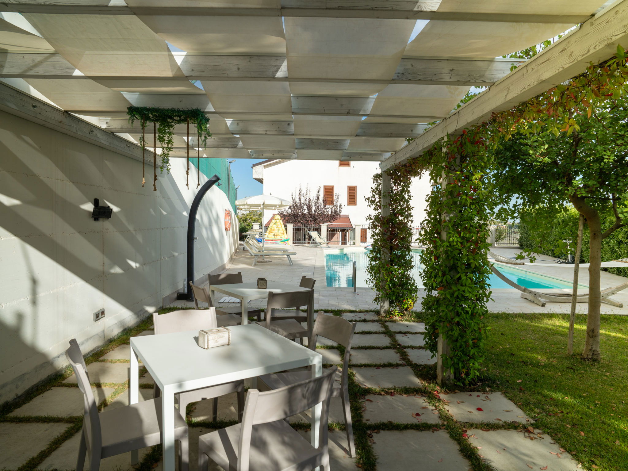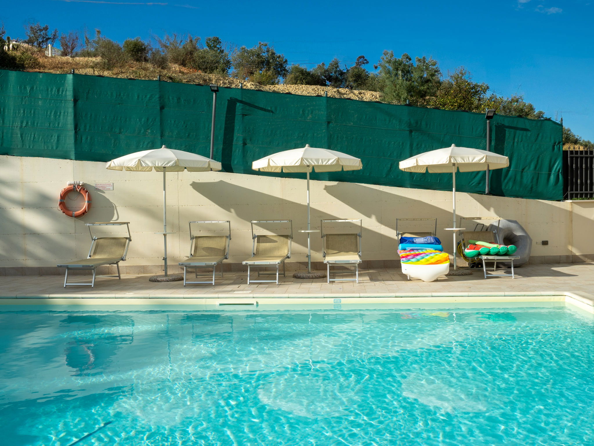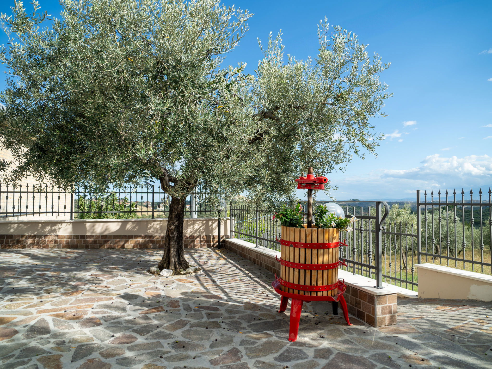 2-family house "Dolce Vita", renovated in 2016. 3 km from the centre of Collecorvino, 24 km from the centre of Pescara, outside the resort Collecorvino, on a slope, 21 km from the sea. For shared use: property 1'500 m2 (fenced), well-kept garden, courtyard. Private: swimming pool fenced (12 x 6 m, depth 100 - 190 cm, seasonal availability: 01.May. - 30.Oct.) with salt-electrolysis pool-cleaning system. Outdoor shower, terrace, garden furniture, barbecue house, parking (for 5 cars) on the premises. Shop 3 km, supermarket 3 km, bus stop 100 m, railway station "Pescara Centrale" 23 km, sandy beach "Montesilvano" 21 km. Nearby attractions: Chiostro e convento 3 km, Castello con la sua torretta 7 km, Parco Fluviale 10 km. Please note: Loading and unloading of baggage is possible at the holiday house. Residence with electric gates. The owner lives in the same residence. Motorway 20 km from the property. Airfield 25 km from the property.