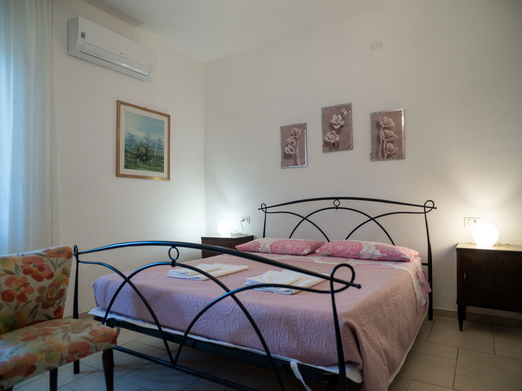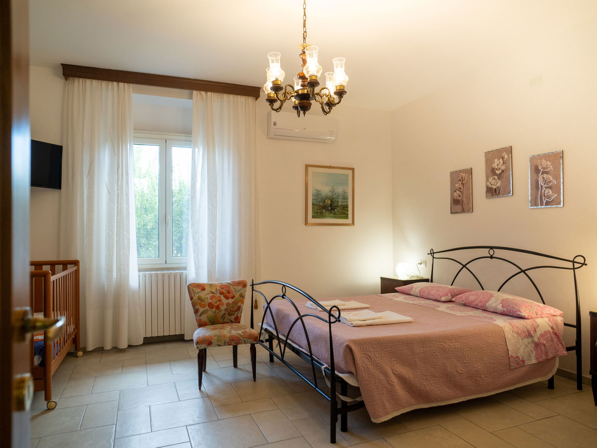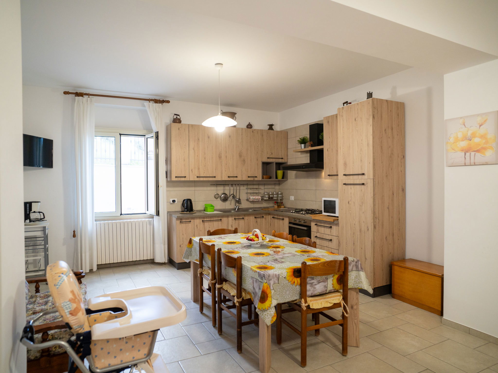 "Dolce Vita ", 4-room apartment 110 m2, on the ground floor. Practical and rustic furnishings: living room with TV and hi-fi system. Exit to the terrace. 1 room with 1 french bed (160 cm), air conditioning. 1 room with 2 beds. 1 room with 1 french bed (160 cm), shower/bidet/WC and air conditioning. Exit to the garden. Kitchen 30 m2 (4 hot plates, oven, dishwasher, microwave, freezer, electric coffee machine) with dining table. Exit to the terrace. Shower/WC. Heating. Terrace roofed, patio roofed, lawn 350 m2. Terrace furniture, barbecue. Panoramic view. Facilities: washing machine, safe, iron, children's high chair, baby cot for up to 2 year olds. Internet (WiFi, free). Please note: suitable for families. Maximum 1 pet/ dog allowed. Private entrance. IT068015C2SEKPJ7U3