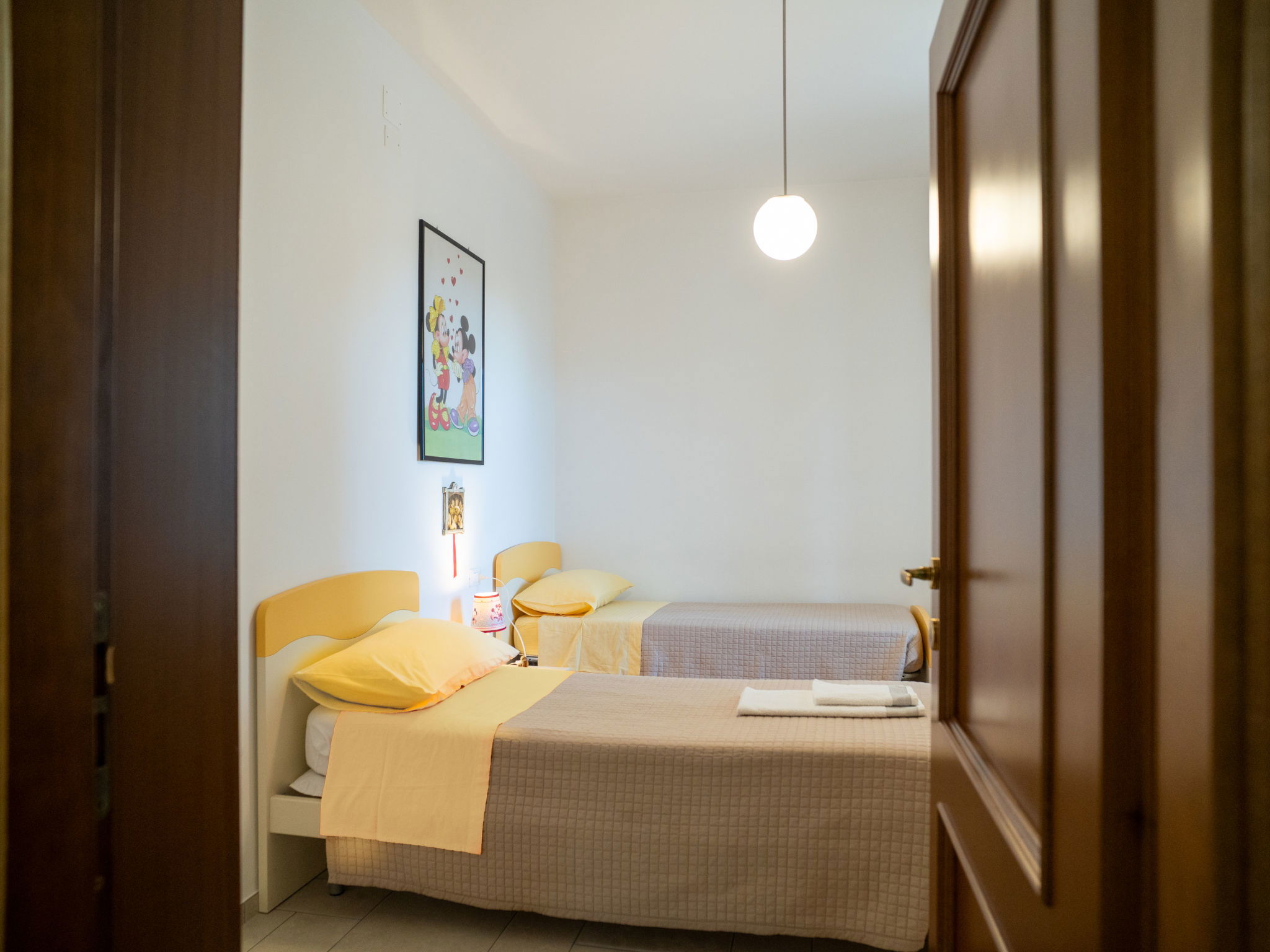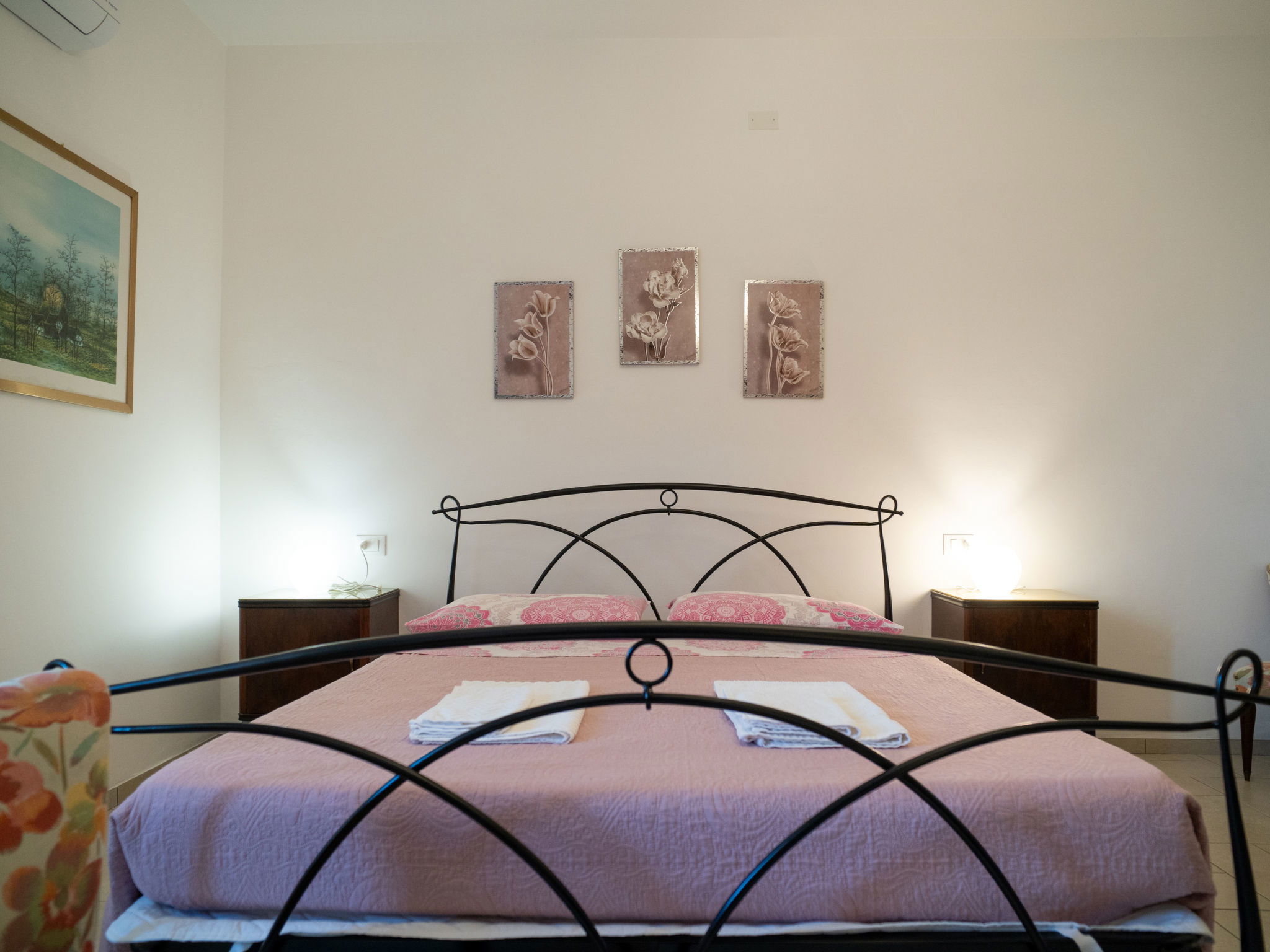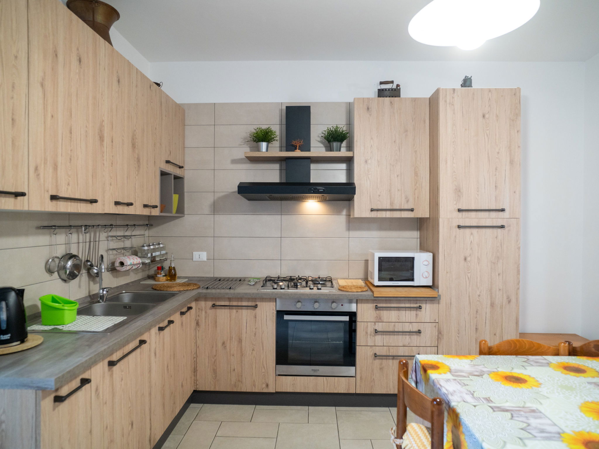 "Dolce Vita ", 4-room apartment 110 m2, on the ground floor. Practical and rustic furnishings: living room with TV and hi-fi system. Exit to the terrace. 1 room with 1 french bed (160 cm), air conditioning. 1 room with 2 beds. 1 room with 1 french bed (160 cm), shower/bidet/WC and air conditioning. Exit to the garden. Kitchen 30 m2 (4 hot plates, oven, dishwasher, microwave, freezer, electric coffee machine) with dining table. Exit to the terrace. Shower/WC. Heating. Terrace roofed, patio roofed, lawn 350 m2. Terrace furniture, barbecue. Panoramic view. Facilities: washing machine, safe, iron, children's high chair, baby cot for up to 2 year olds. Internet (WiFi, free). Please note: suitable for families. Maximum 1 pet/ dog allowed. Private entrance. IT068015C2SEKPJ7U3