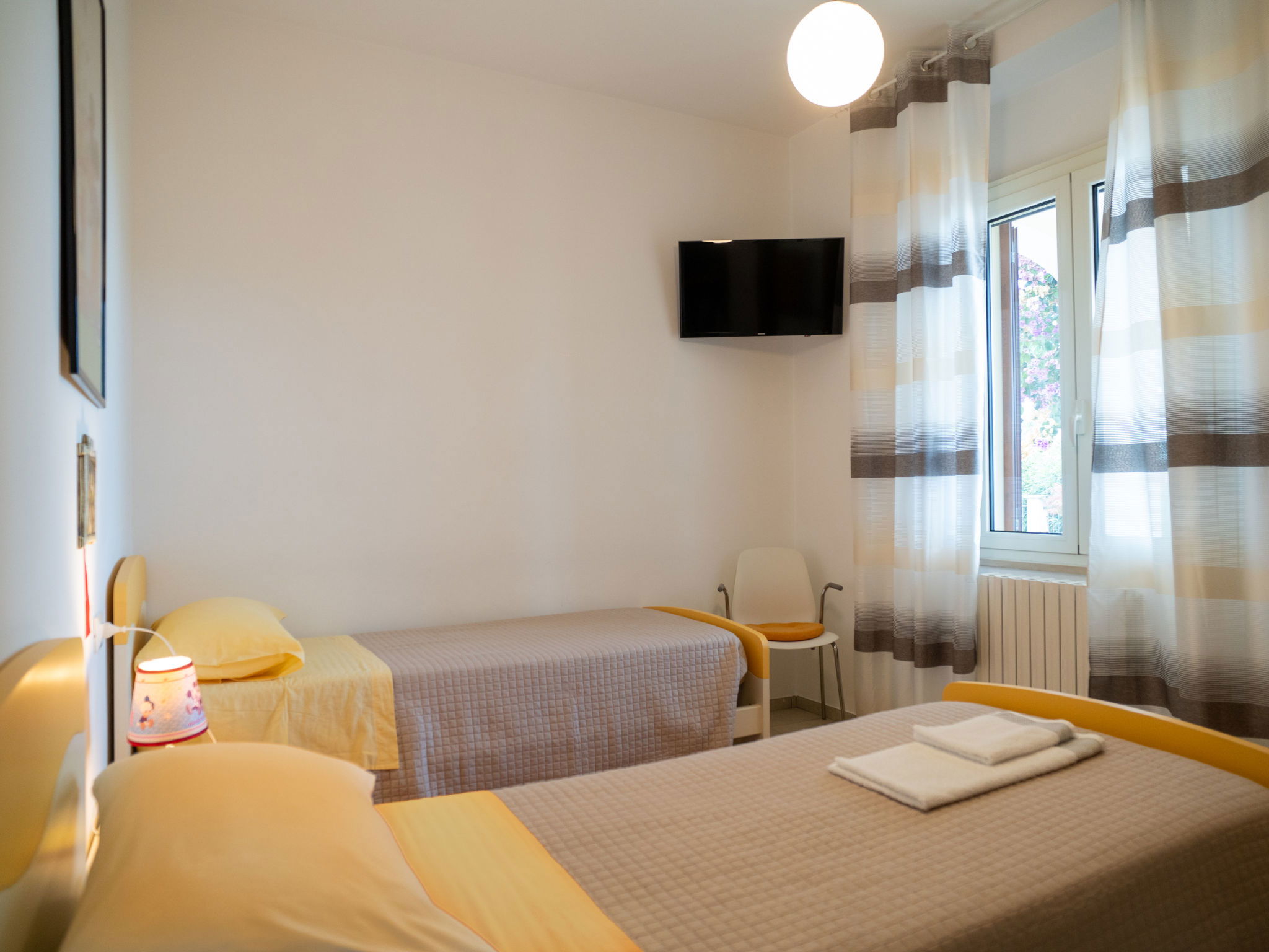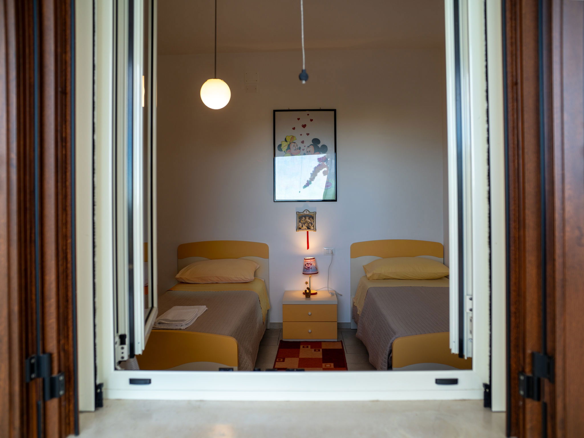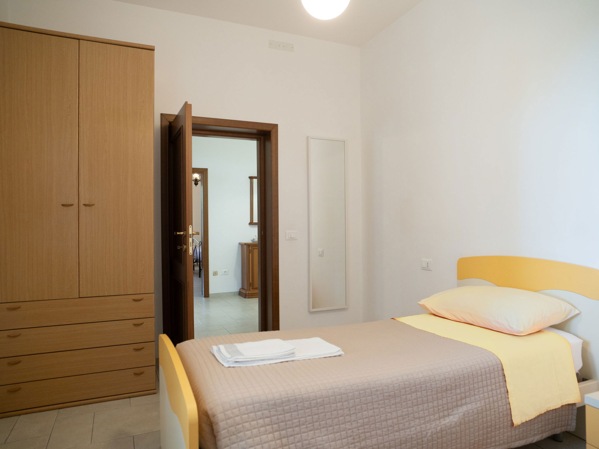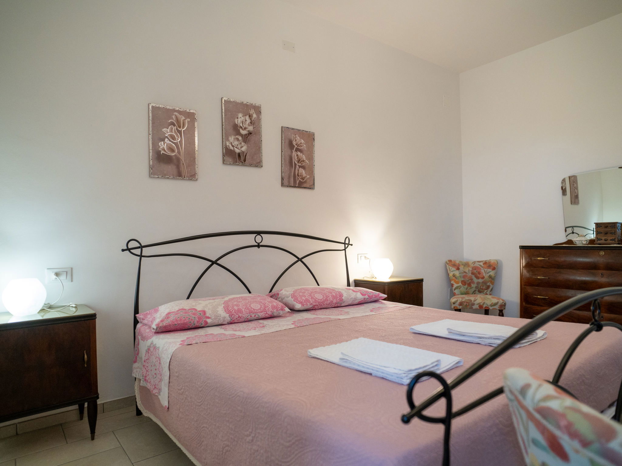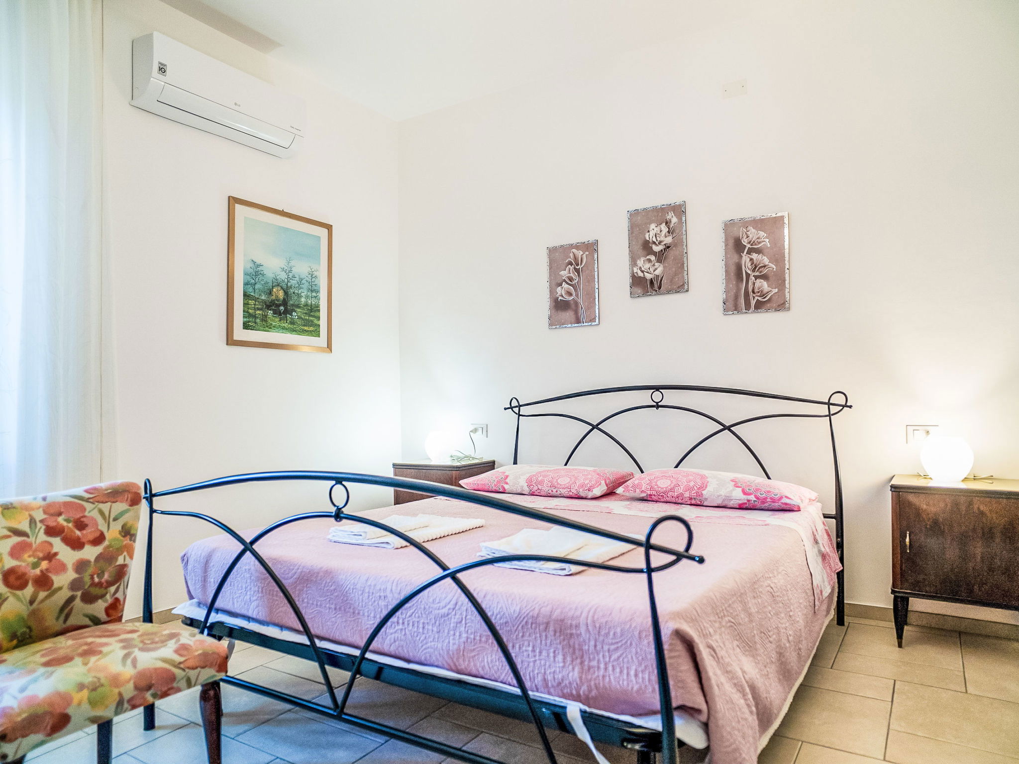 "Dolce Vita ", 4-room apartment 110 m2, on the ground floor. Practical and rustic furnishings: living room with TV and hi-fi system. Exit to the terrace. 1 room with 1 french bed (160 cm), air conditioning. 1 room with 2 beds. 1 room with 1 french bed (160 cm), bathroom, shower/bidet/WC and air conditioning. Exit to the garden. Kitchen 30 m2 (4 hot plates, oven, dishwasher, microwave, freezer, electric coffee machine) with dining table. Exit to the terrace. Bathroom, shower/bidet/WC. Heating. Terrace roofed, patio roofed, lawn 350 m2. Terrace furniture, barbecue. Panoramic view. Facilities: washing machine, safe, iron, children's high chair, baby cot for up to 2 year olds. Internet (WiFi, free). Please note: suitable for families. Maximum 1 pet/ dog allowed. Private entrance. IT068015C2SEKPJ7U3