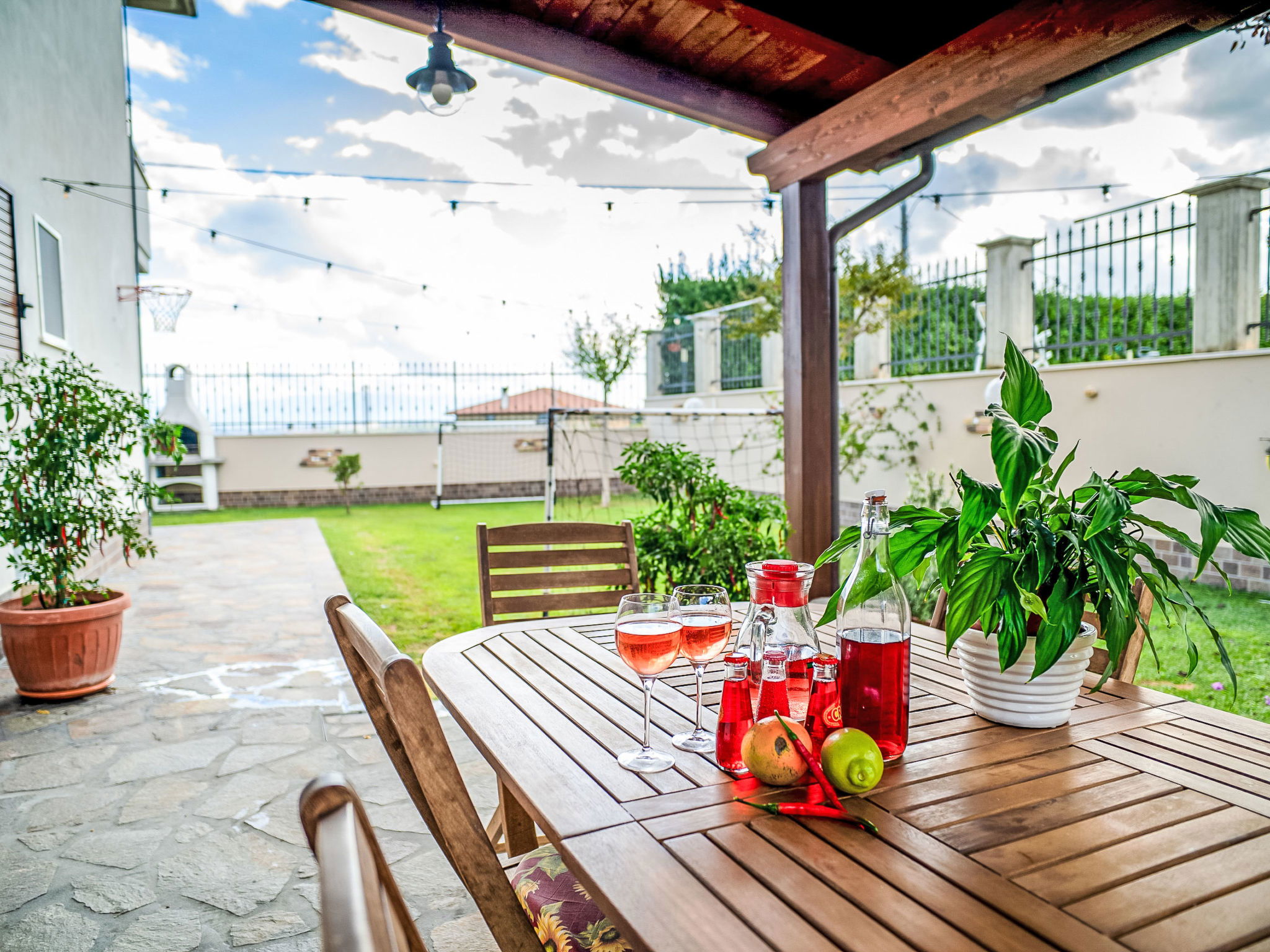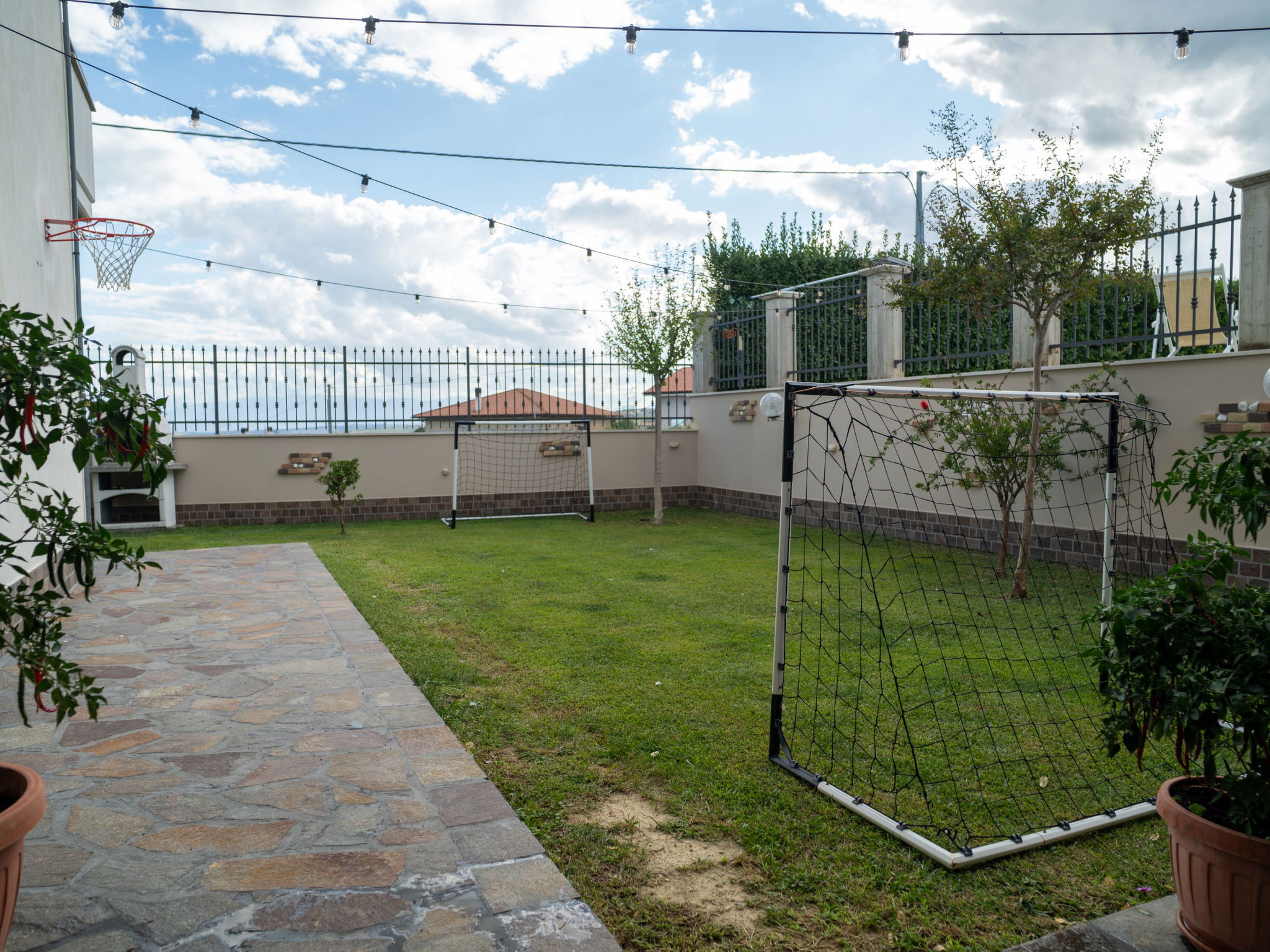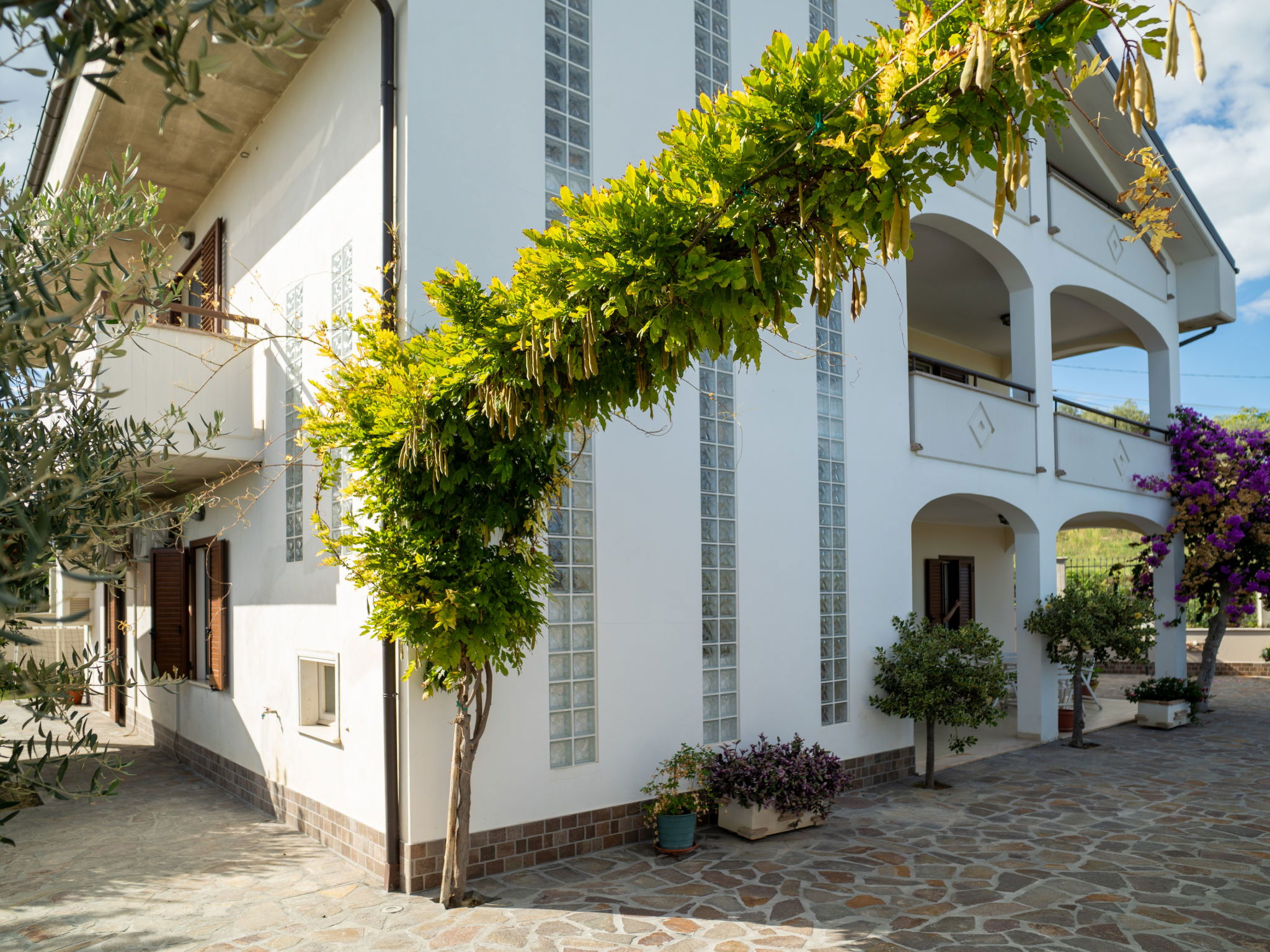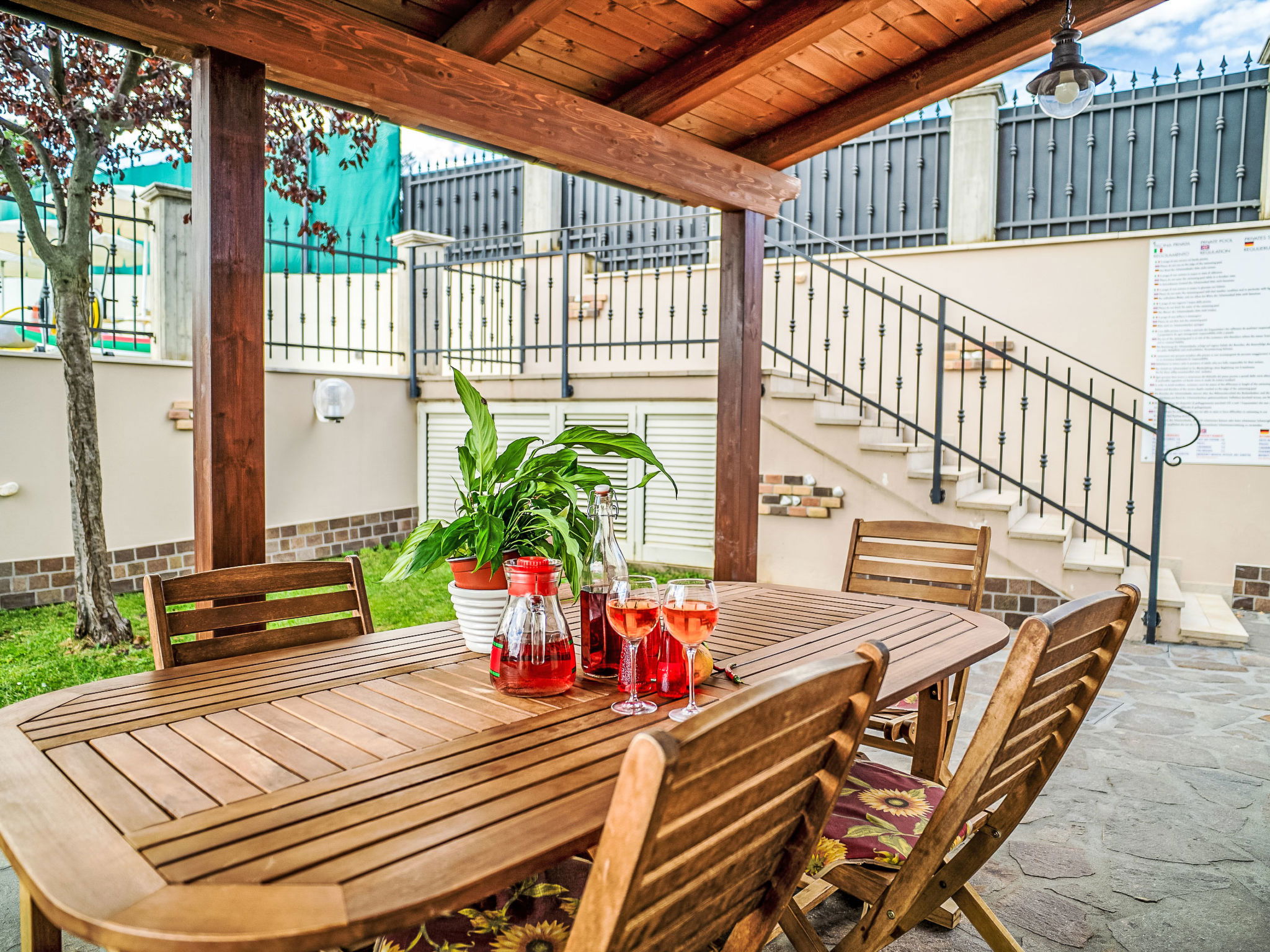 2-family house "Dolce Vita", renovated in 2024. 3 km from the centre of Collecorvino, 24 km from the centre of Pescara, outside the resort Collecorvino, on a slope, 21 km from the sea. For shared use: property 1'500 m2 (fenced), well-kept garden, courtyard. Private: swimming pool fenced (12 x 6 m, depth 120 - 190 cm, seasonal availability: 01.May. - 30.Oct.) with salt-electrolysis pool-cleaning system. Outdoor shower, terrace, garden furniture, barbecue house, parking (for 5 cars) on the premises. Shop 3 km, supermarket 3 km, bus stop 100 m, railway station "Pescara Centrale" 23 km, sandy beach "Montesilvano" 21 km. Nearby attractions: Chiostro e convento 3 km, Castello con la sua torretta 7 km, Parco Fluviale 10 km. Please note: Loading and unloading of baggage is possible at the holiday house. Residence with electric gates. The owner lives in the same residence. Motorway 20 km from the property. Airfield 25 km from the property.