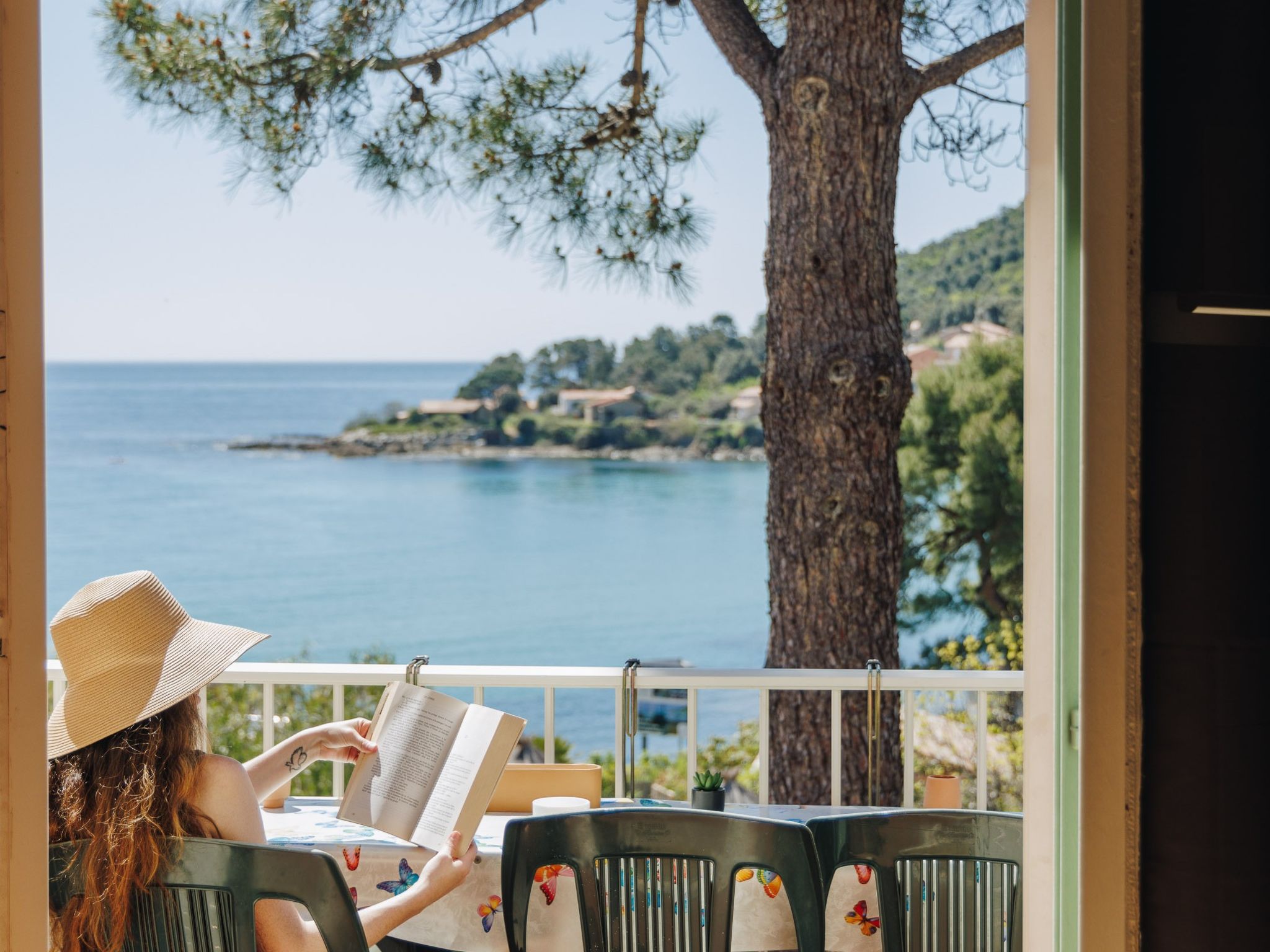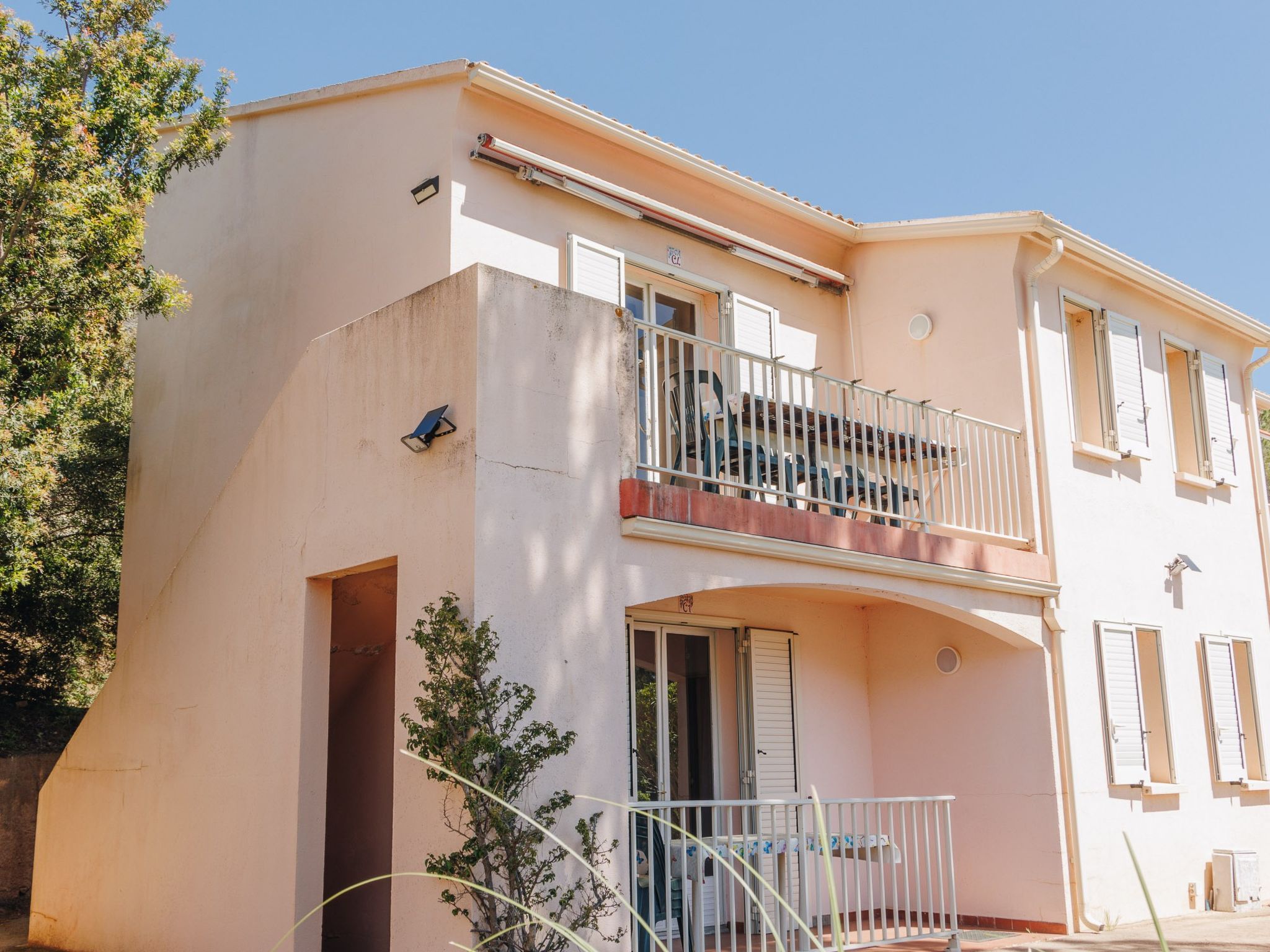 "Le Télémaque 2 pièces Mezzanine", 2-room apartment 38 m2. Object suitable for 2 adults + 2 children. Simple and practical furnishings: living/dining room. Exit to the terrace. Open gallery with 1 french bed (160 cm, length 190 cm). 1 small children's room with 1 x 2 bunk beds (90 cm, length 190 cm). Kitchen-/living room (4 gas rings, kettle, microwave, electric coffee machine). Shower, sep. WC. Electric heating, air-conditioning. Terrace. Terrace furniture. View of the sea. Facilities: Internet (WiFi). Parking at the house. Please note: maximum 1 pet/ dog allowed. Smoke alarm. Offer by a commercial proprietor according to Art. 155, IV, CGI