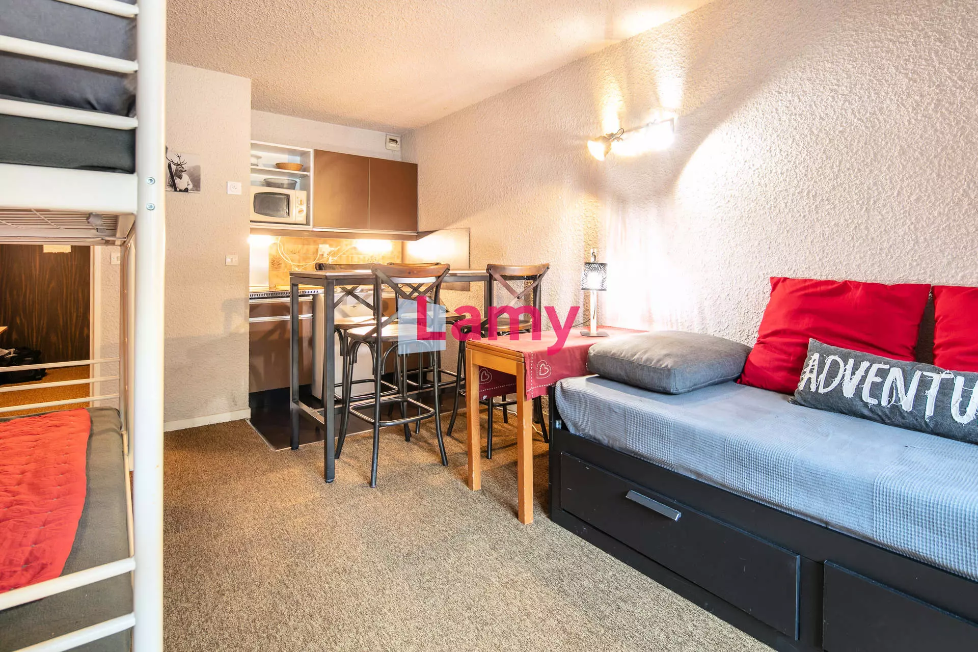 Charming studio in Corrençon-en-Vercors. Located in Clos de La Balme – “Herbouilly” building, this cozy and functional studio on the 1st floor will charm you with its optimized layout and warm atmosphere.