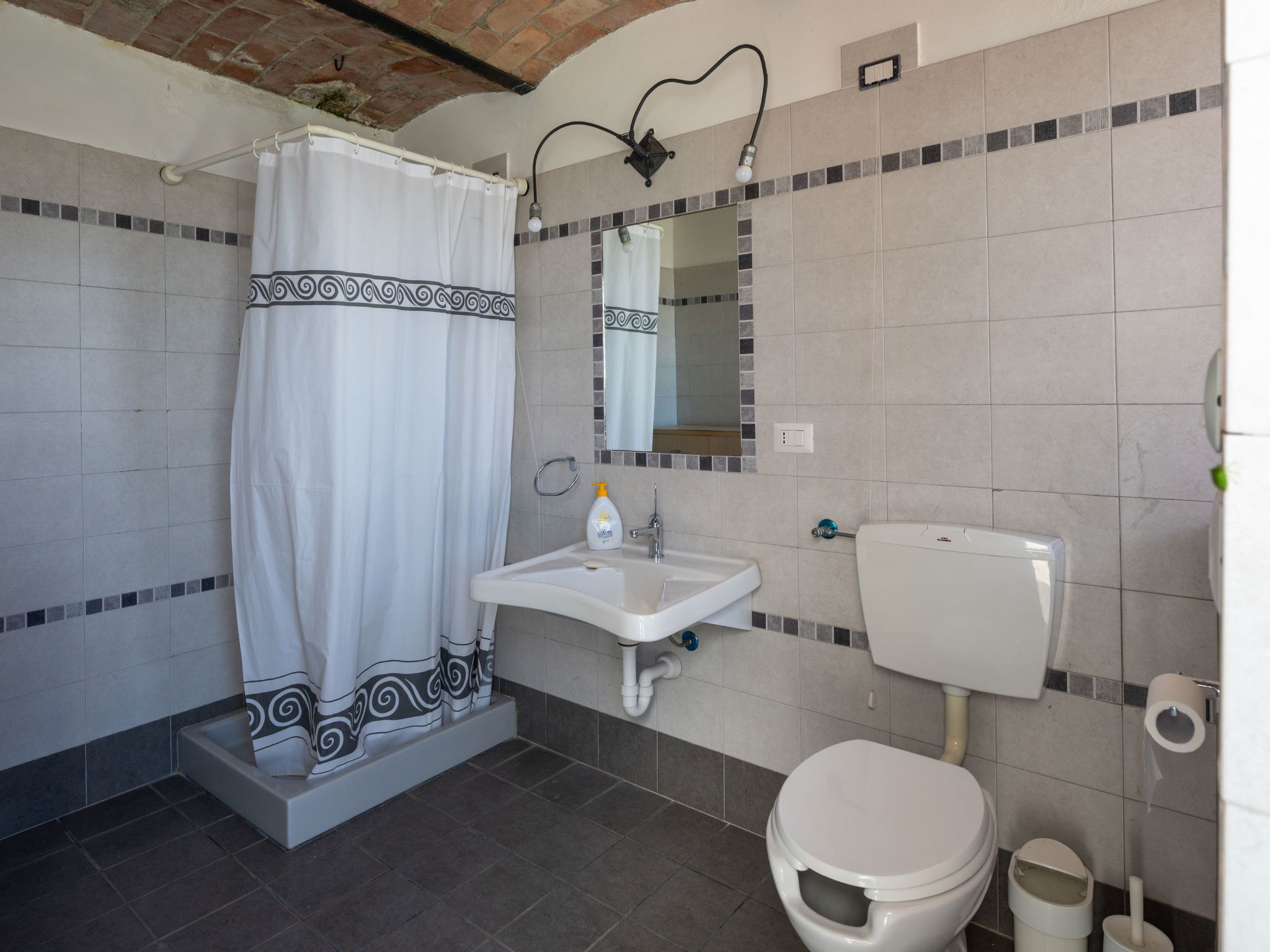 "Le Rose d'Antan", 4-room apartment 75 m2 on 1st floor. Rustic and tasteful furnishings: 1 room with 2 beds and 1 french bed (160 cm), shower/WC. Walk-through room with 2 beds. 1 room with 1 bed and 1 double bed. Kitchen-/living room (oven, 4 induction hot plates, toaster, freezer, electric coffee machine) with dining table and TV. Shower/WC. Heating, air-conditioning. Heating available only from 01.10. to 15.04. Natural stone floors. Patio. Terrace furniture. Facilities: Internet (WiFi, free). Please note: non-smokers only. Maximum 2 pets/ dogs allowed. IT005049B46KYHTUBZ