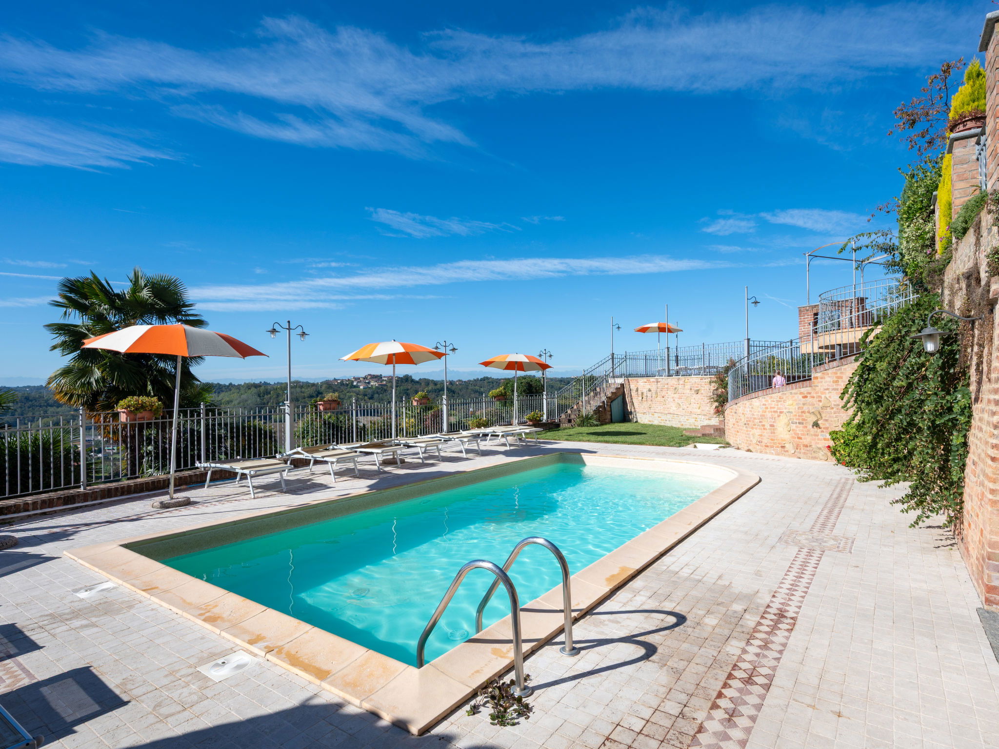 On a vinyard "Il Pozzo Fiorito", surrounded by fields and vineyards. 5 apartments in the residence. 100 m from the centre of Cossombrato, 14 km from the centre of Asti, 45 km from the centre of Turin. For shared use: property 1'200 m2 (fenced), well-kept garden with lawn, swimming pool (8 x 4 m, depth 150 cm, seasonal availability: 26.Apr. - 10.Oct.). Shower/WC in the pool area, outdoor shower, table tennis, pergola, terrace, garden furniture, barbecue. In the complex: fitness room (extra). Washing machine (for shared use, extra), bicycles available (extra). Parking at the house on the premises. Supermarket 1 km, bus stop 100 m, railway station "Asti" 14 km. Local sale of farm products. Please note: the owner lives on the same property.
