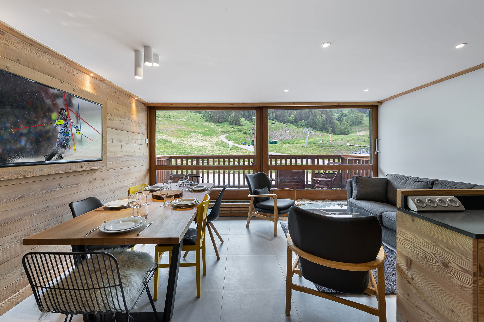 Ski-in ski-out apartment next to the shops and next to the kindergarden.