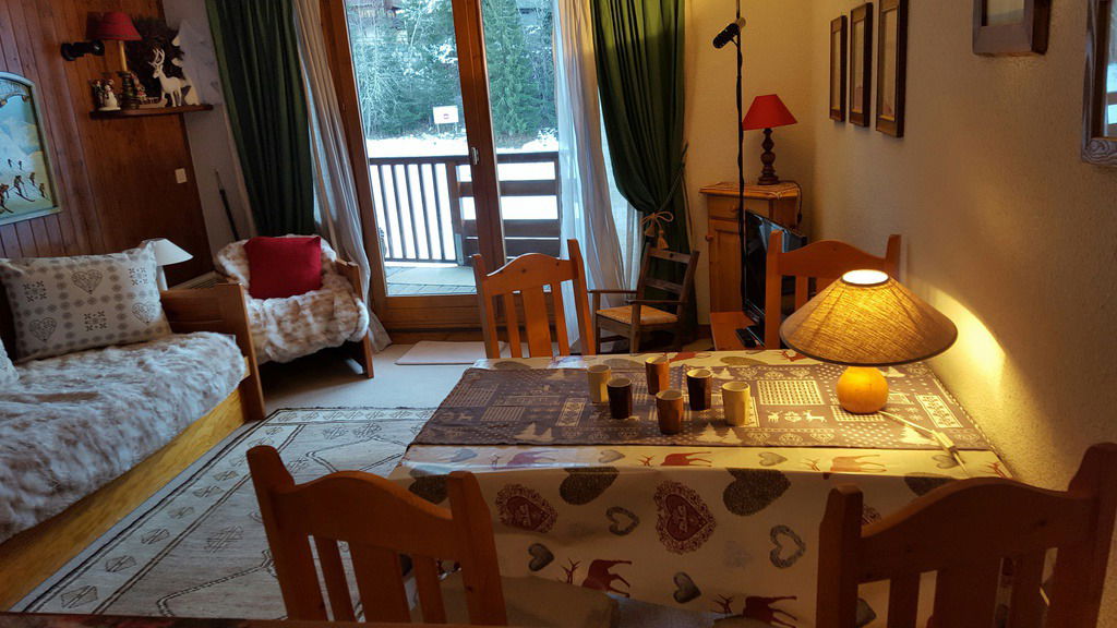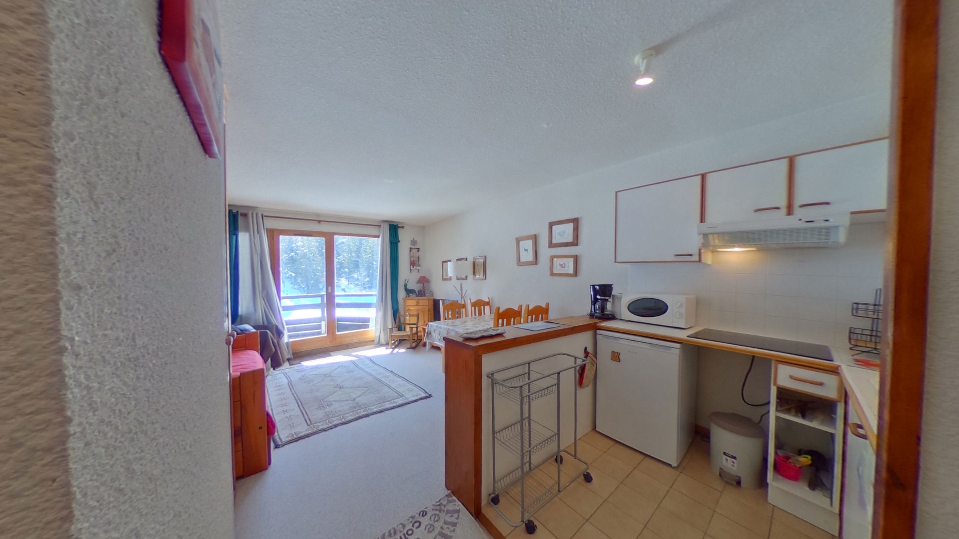 33 sq-m astudio including an entrance with alcove, for 4 persons, at the bottom of the slopes, on the 5th floor of the residence with lift. Balcony exposed south with view on the slopes, the mountains and the forest.