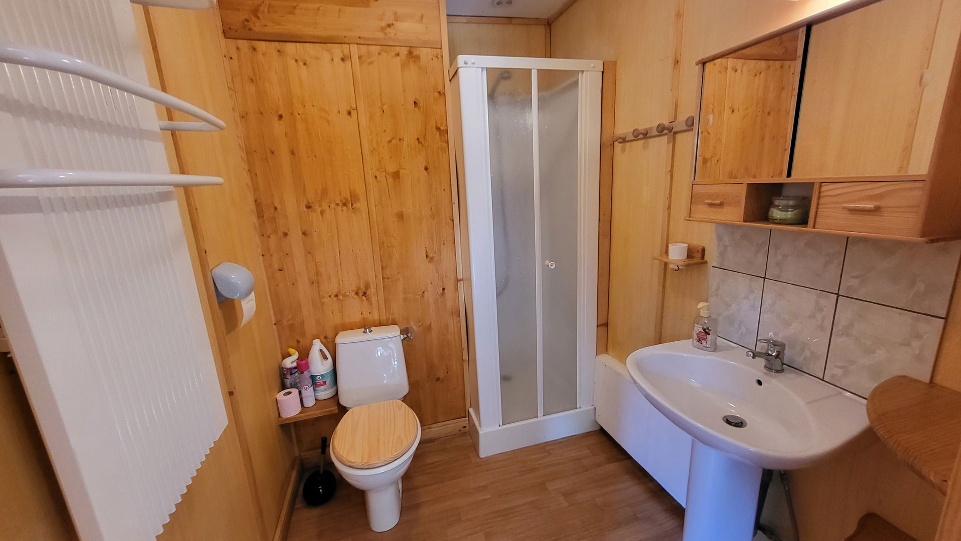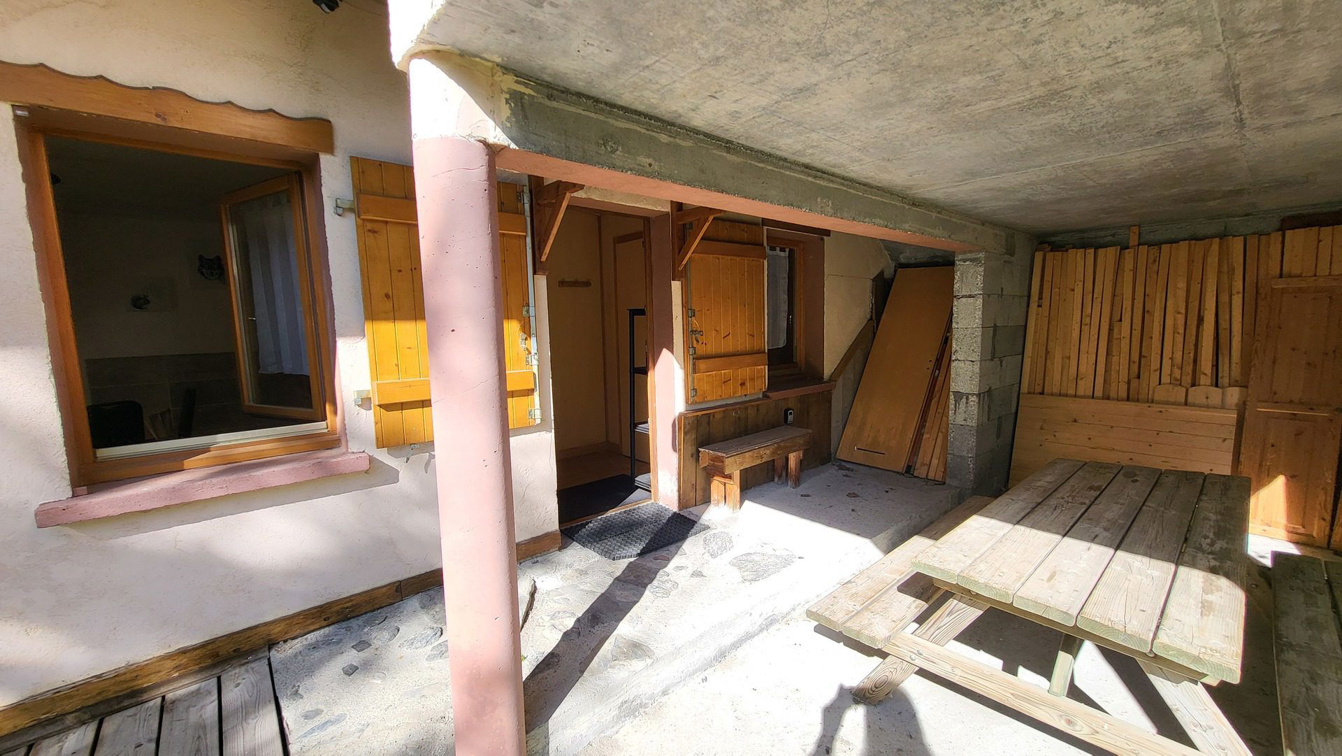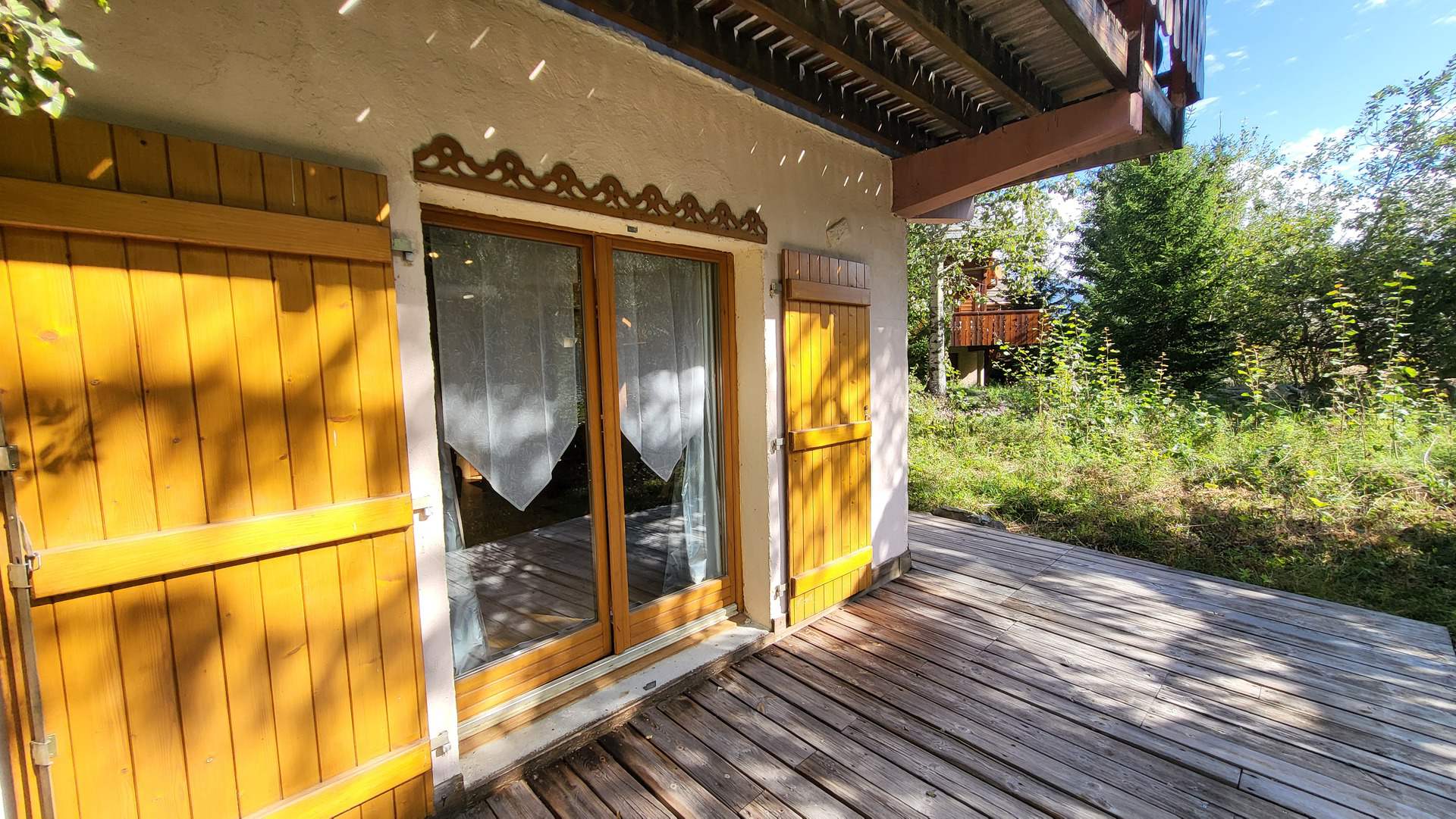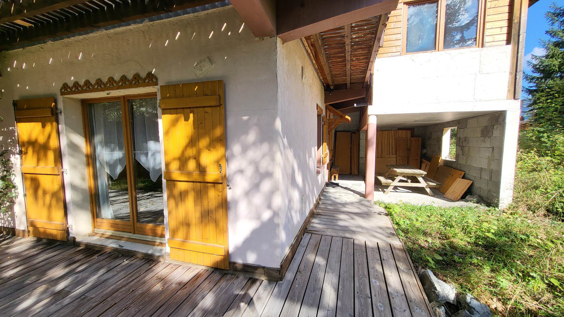 2 rooms of 31sq-m for 4 people maximum, located on level -1 of a chalet. Large shared terrace facing south east overlooking the forest and courtyard with picnic table in front of the entrance.