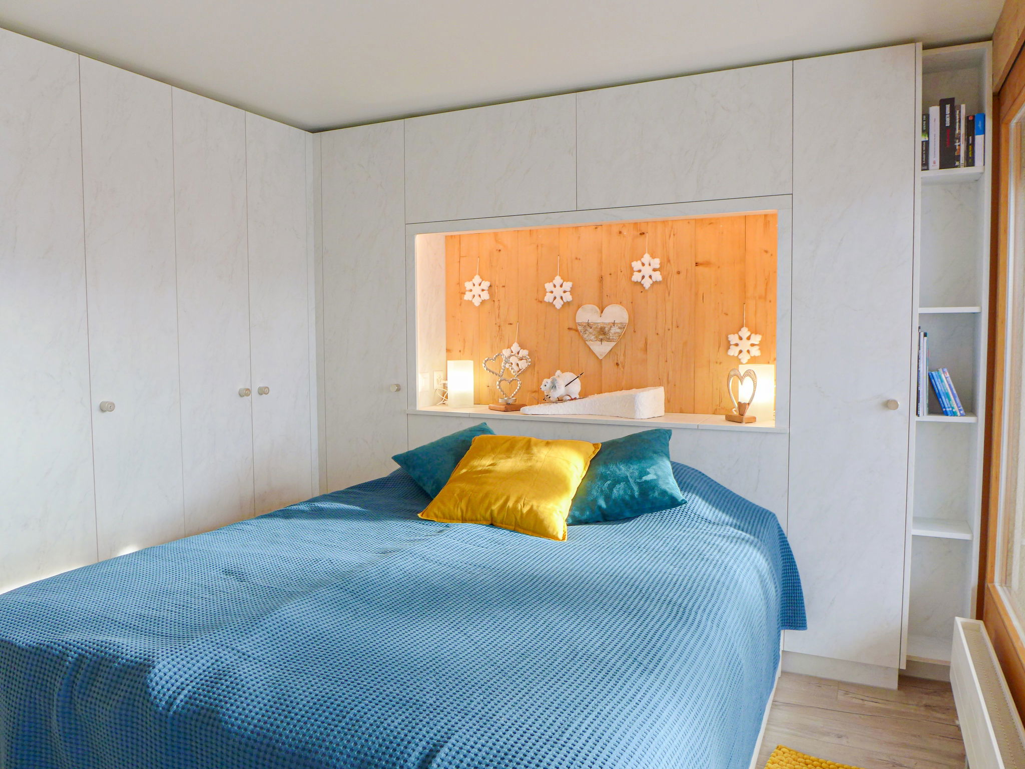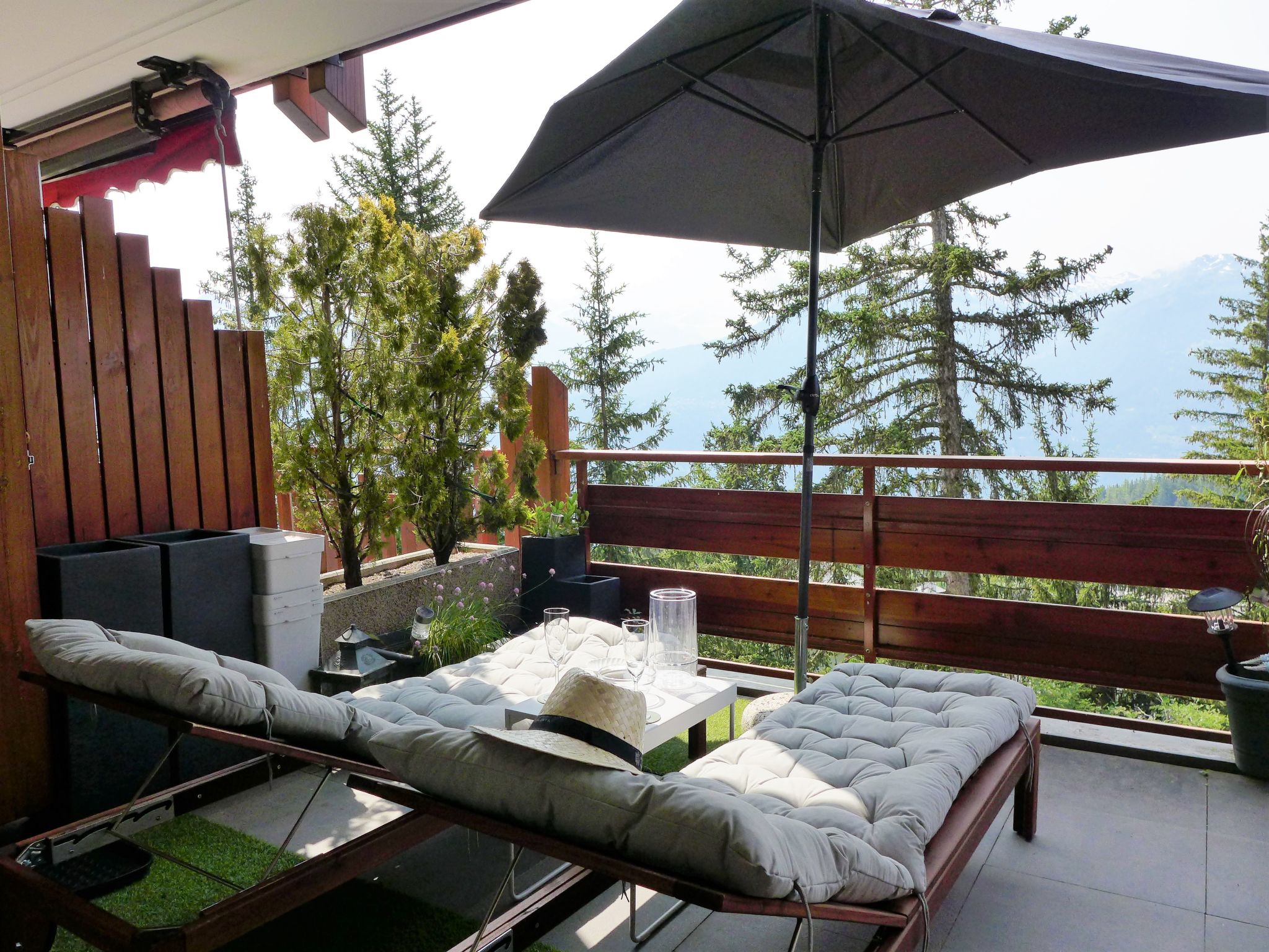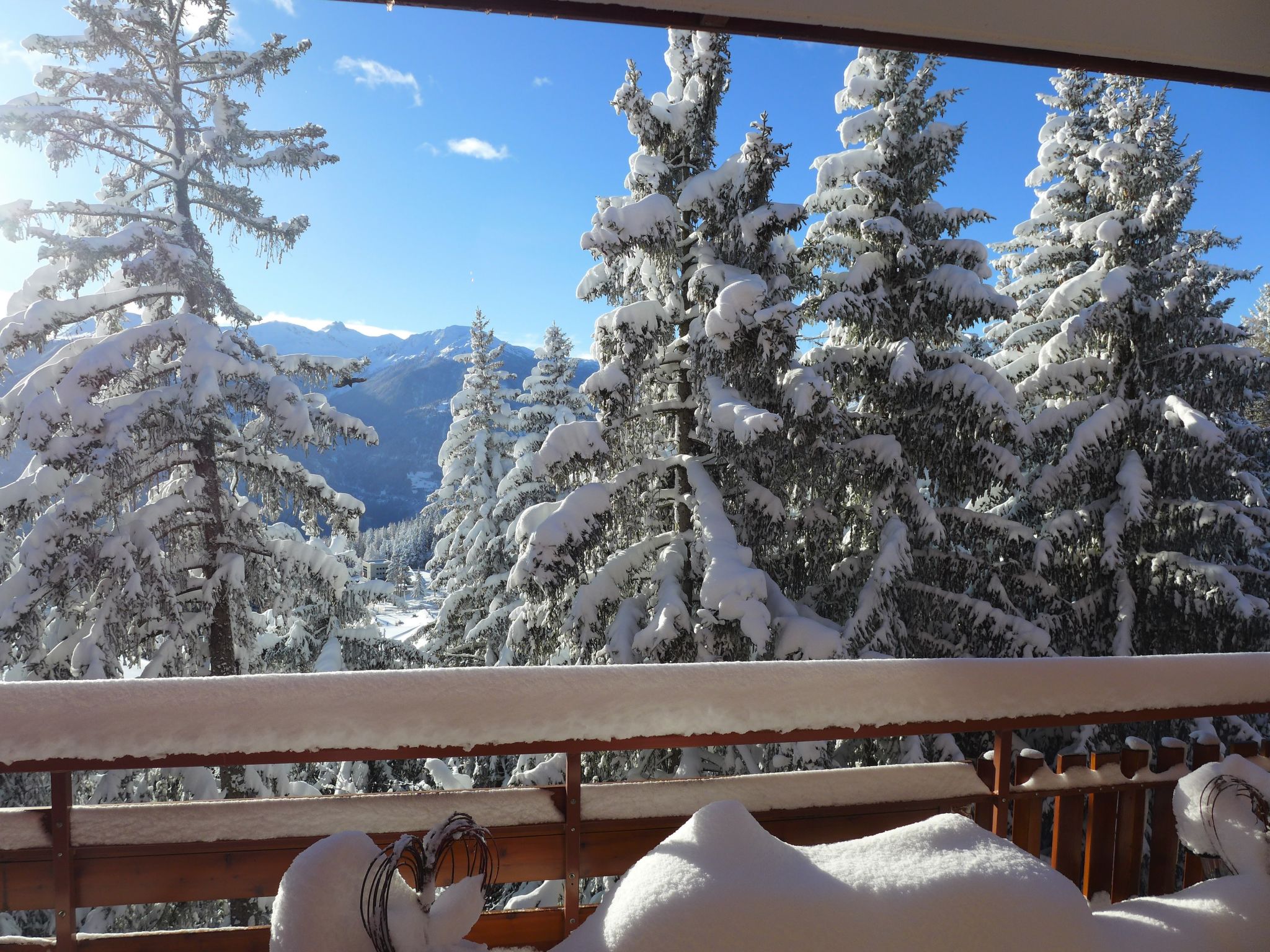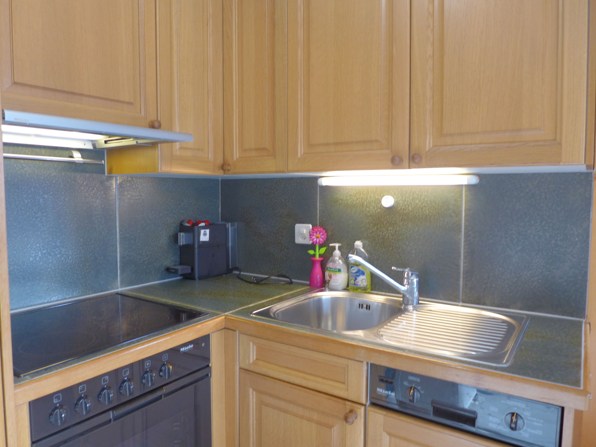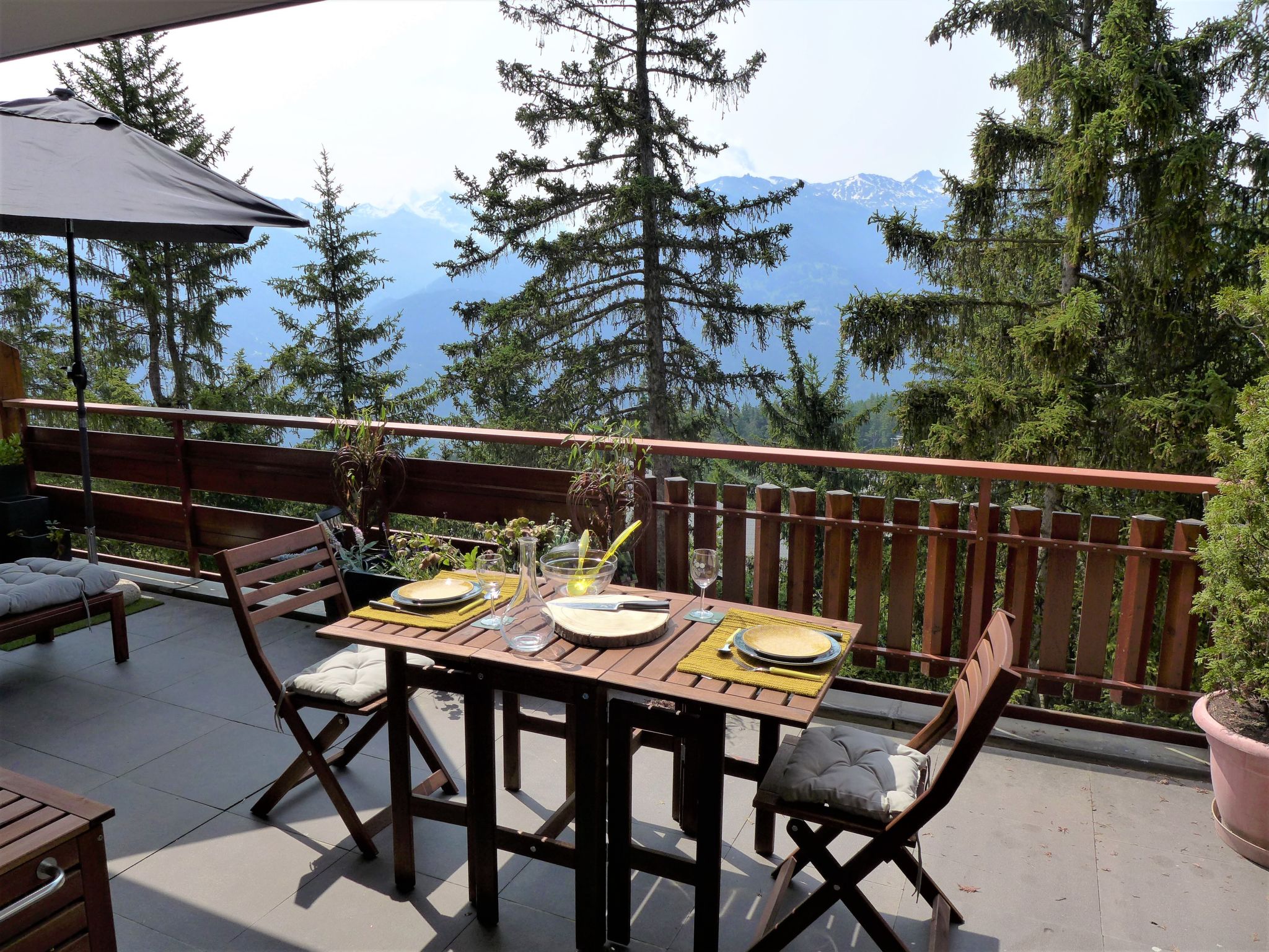"Résidence Byblos 11", 2-room apartment 46 m2 on 1st floor. Fully renovated in 2022, comfortable and tasteful furnishings: living/dining room with cable TV. Exit to the balcony. 1 room with 1 double bed (2 x 80 cm, length 200 cm). Exit to the balcony. Open kitchen (oven, dishwasher, 4 ceramic glass hob hotplates, toaster, kettle, microwave, freezer, electric coffee machine, Capsules for coffee machine (Delizio) extra, raclette grill, fondue Set (chinoise, cheese)). Bath/WC. Large terrace 24 m2, south facing position. Balcony furniture, deck chairs (2). Beautiful view of the mountains and the forest. Facilities: iron, hair dryer. Internet (WiFi, free). Parking space n 11. Please note: non-smokers only. Maximum 1 small pet/ dog allowed.