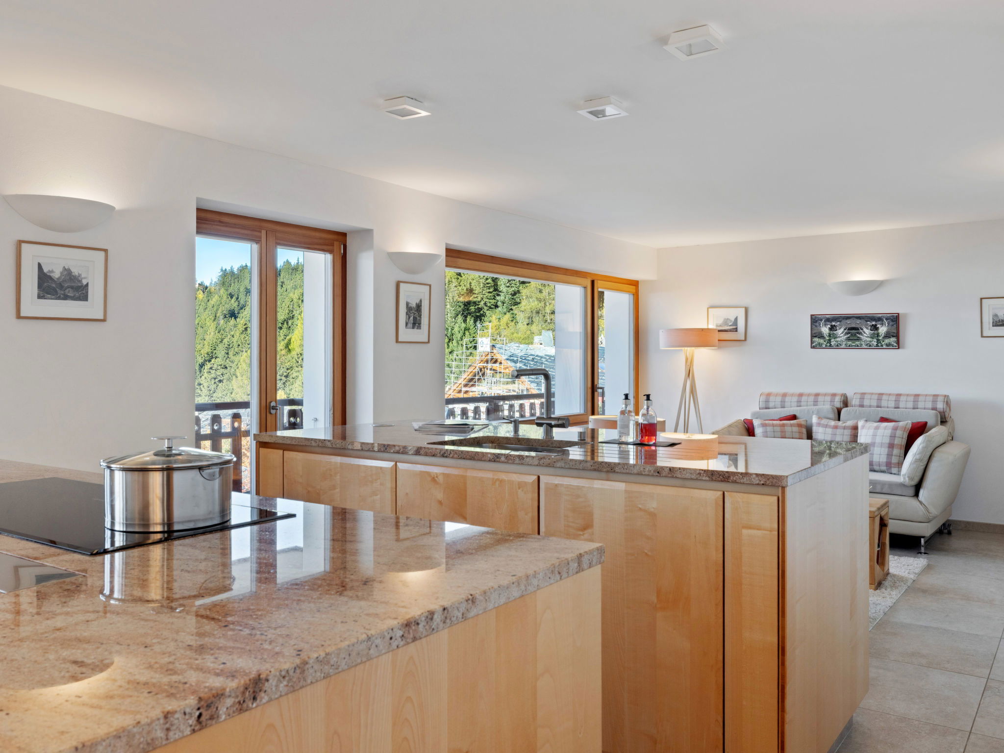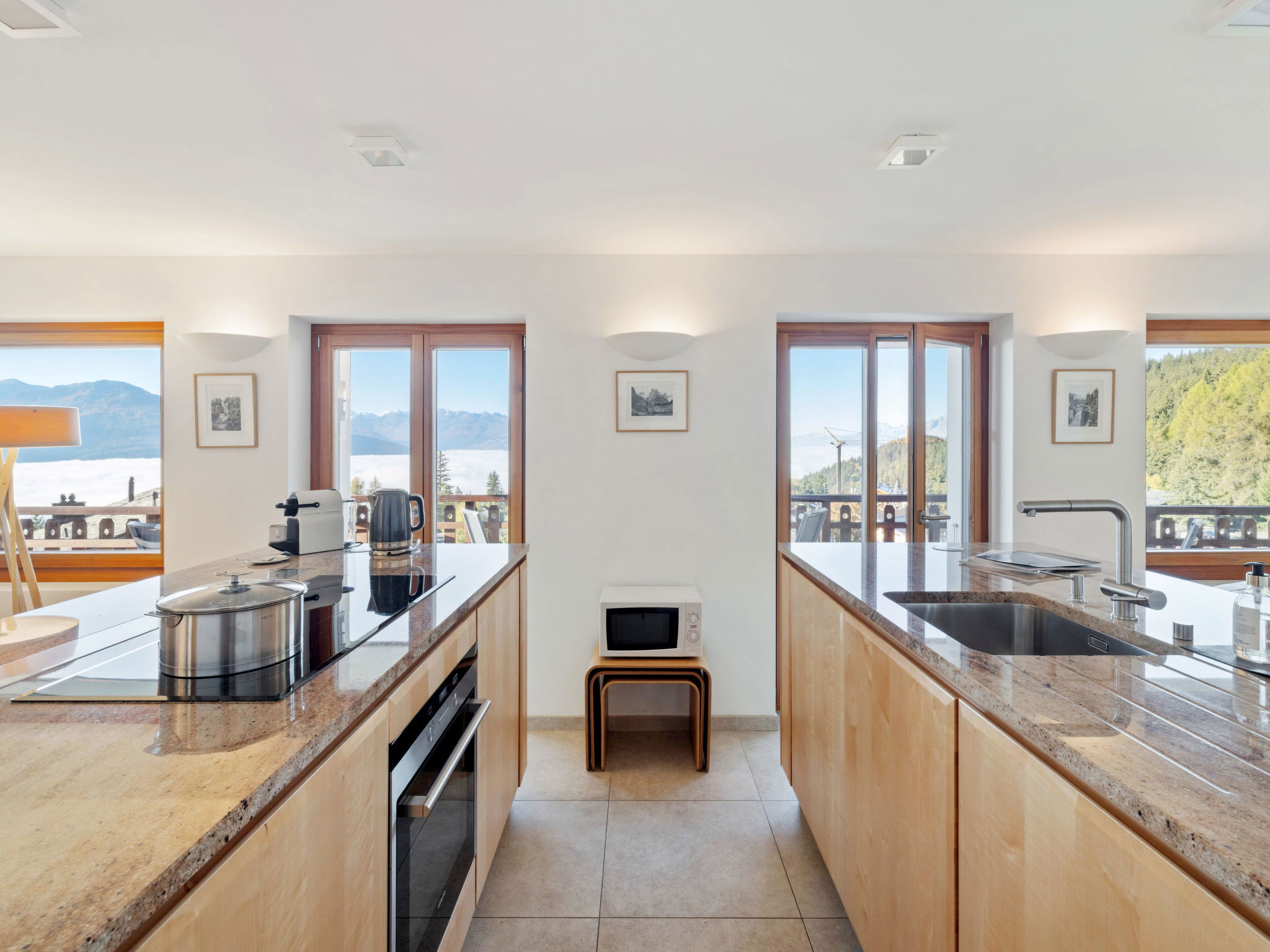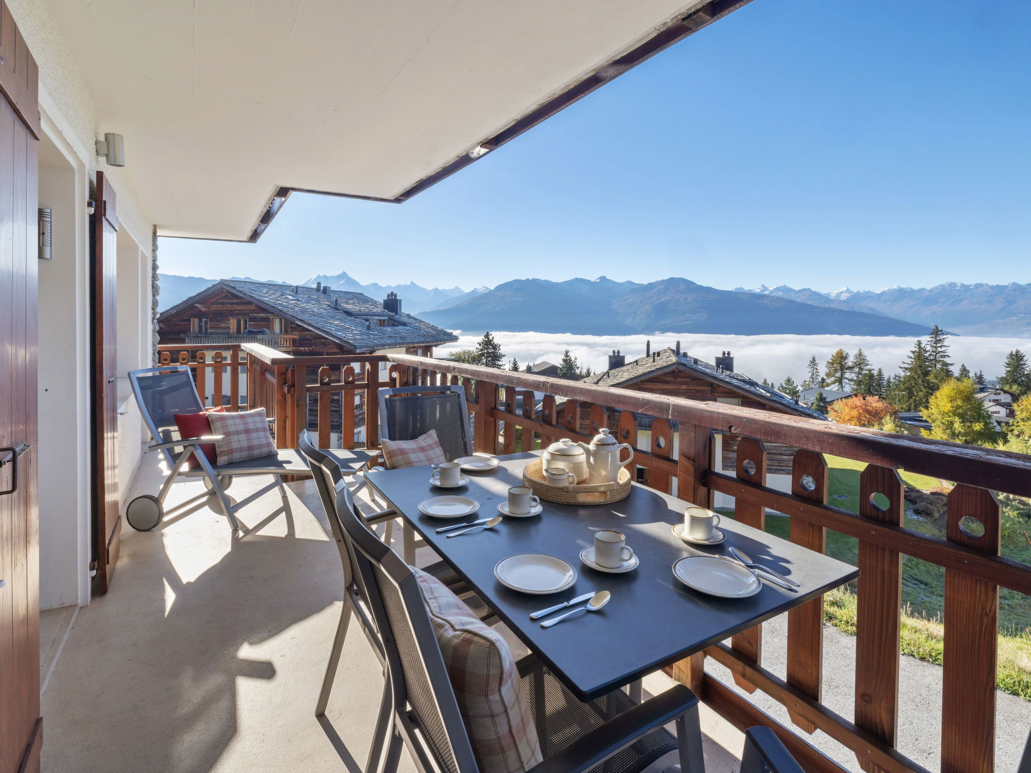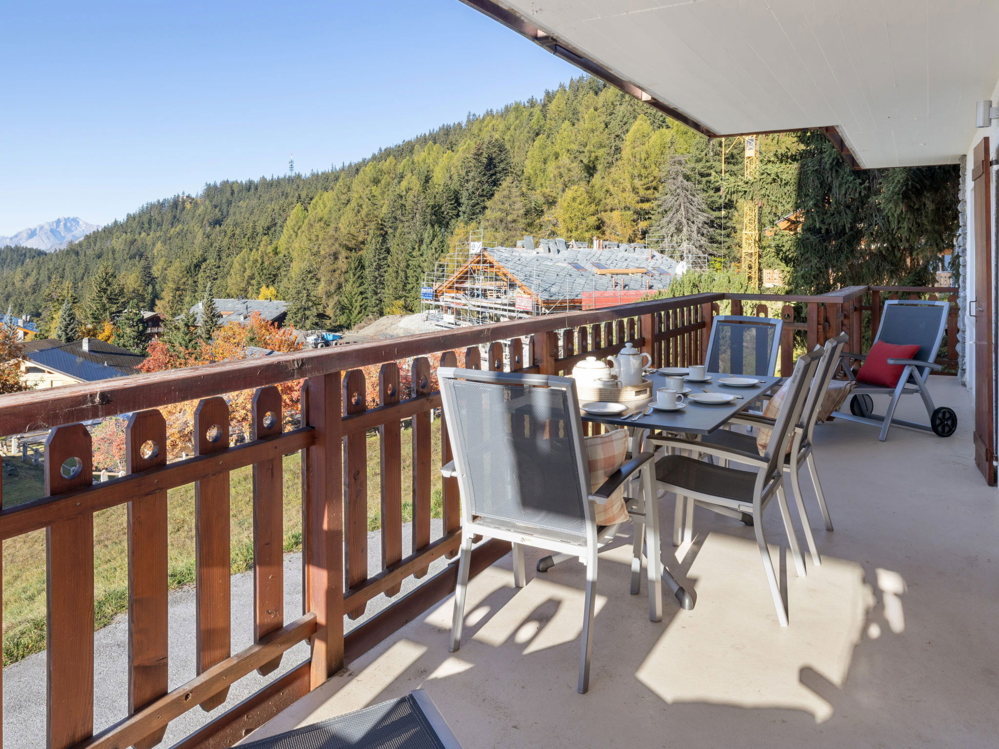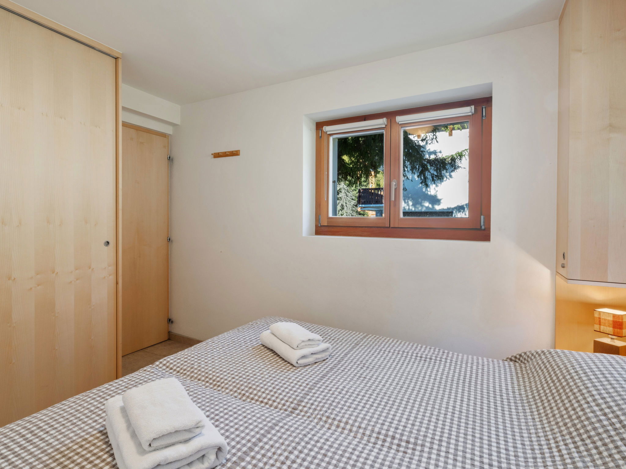 Comfortable 3-family house "Les Aiguilles Vertes", 4 storeys, built in 1962, renovated in 2015. In the district of Vermala, 1.7 km from the centre of Montana, in a quiet, elevated position, 1.5 km from the lake, 1.1 km from the skiing area, south-west facing position. For shared use: natural state property 1'273 m2. In the house: storage room for skis, central heating system, washing machine, tumble dryer (for shared use), ski boot dryer. Motor access (ramp). Single garage. Shop 1.7 km, supermarket 1.9 km, restaurant 1.5 km, bakery 2 km, bus stop "Vermala Centre" 200 m, railway station "Funiculaire Montana Gare" 2.1 km, bathing lake "Moubra" 2.7 km, lake Grenon 1.5 km. Golf course (18 hole) 2.8 km, skisport facilities 1.1 km. Well-known ski regions can easily be reached: Etang Long 2.9 km. Please note: ski bus (free of charge). Additional accommodations can be booked.