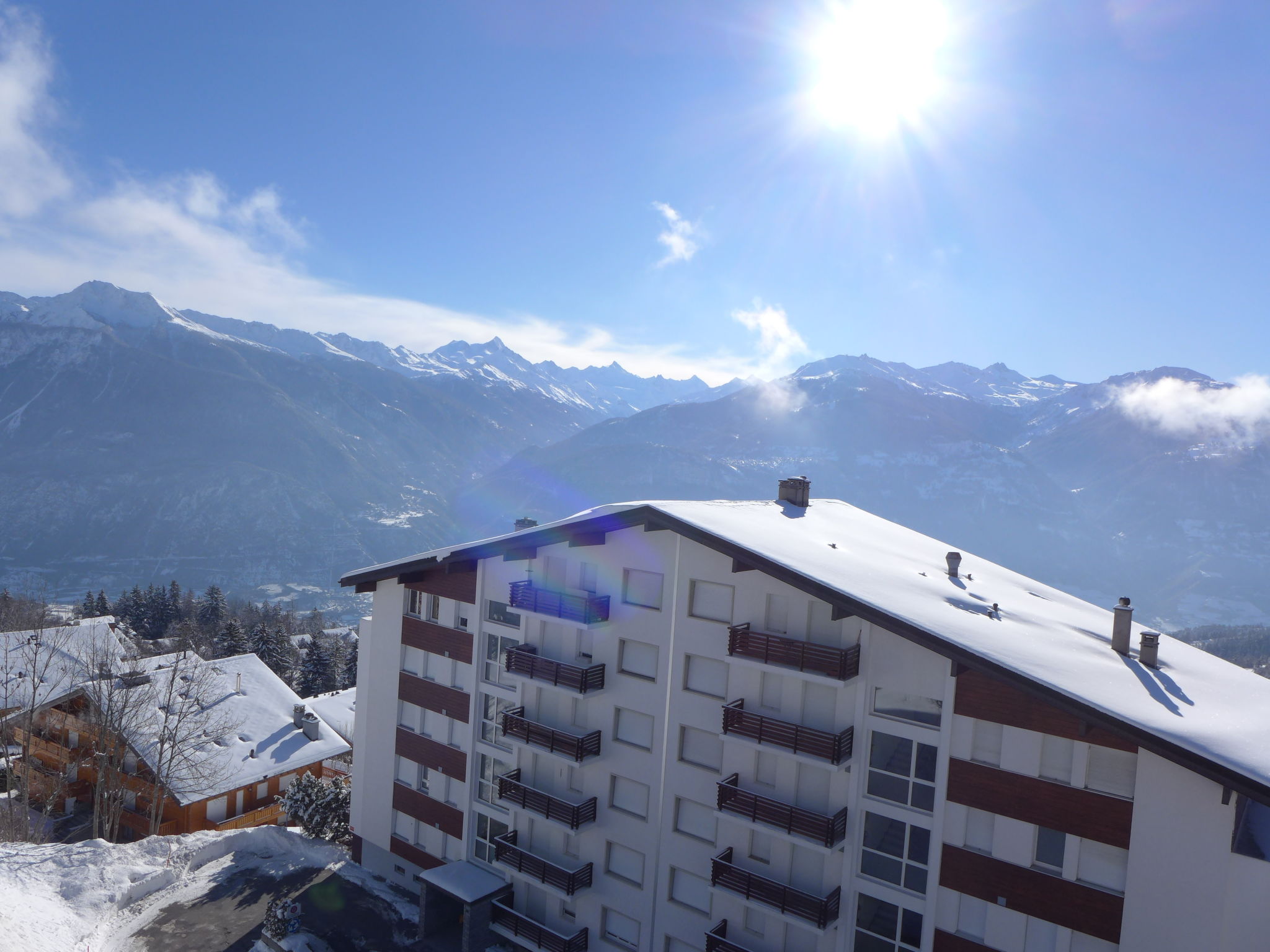 Residence "Armorial Est / Ouest", 5 storeys. In the district of Combaz, 1.5 km from the centre of Montana, in a quiet, sunny position, traffic calmed area, 2.1 km from the lake, 1.2 km from the skiing area, south facing position. In the complex: table tennis, lift, storage room for skis, central heating system, washing machine, tumble dryer (for shared use, extra). Parking (limited number of spaces) at the house. Shop 1.5 km, supermarket 1.5 km, restaurant 1.5 km, bakery 750 m, bus stop "Comba" 300 m, railway station "Funiculaire Montana Gare" 1.1 km, bathing lake "Moubra" 2.5 km. Golf course (18 hole) 3.5 km, tennis 2.5 km, sports centre 2.5 km, skisport facilities 1.2 km, cross country ski track 2.5 km, ice rink 1.9 km. Well-known lakes can easily be reached: Grenon 2.1 km, Etang Long 3.6 km. Please note: ski bus (free of charge). Additional accommodations can be booked.