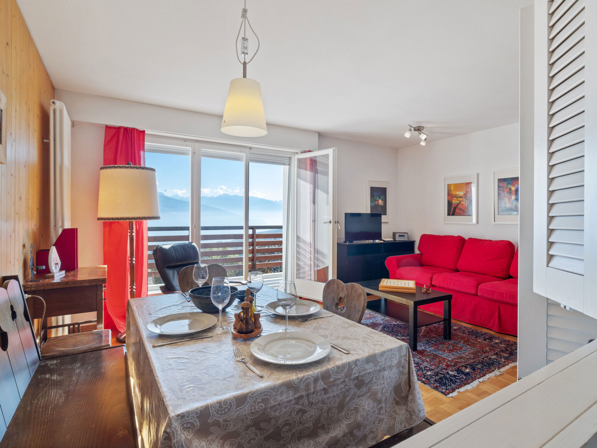 "Armorial Est 72", 2-room apartment 60 m2 on 4th floor, south facing position. Bright, comfortable and beautiful furnishings: large living/dining room with 1 double sofabed (160 cm, length 200 cm), separate WC, cable TV, flat screen, radio, CD-player and DVD. Exit to the balcony, south facing position. 1 room with 1 french bed (160 cm, length 200 cm). Open kitchen (3 hot plates, oven, dishwasher, toaster, kettle, electric coffee machine, raclette grill). Bath/bidet/WC. Balcony, south facing position. Balcony furniture. Very beautiful view of the mountains and the valley. Facilities: hair dryer. Internet (WiFi, free). Please note: non-smokers only. Maximum 1 pet/ dog allowed.