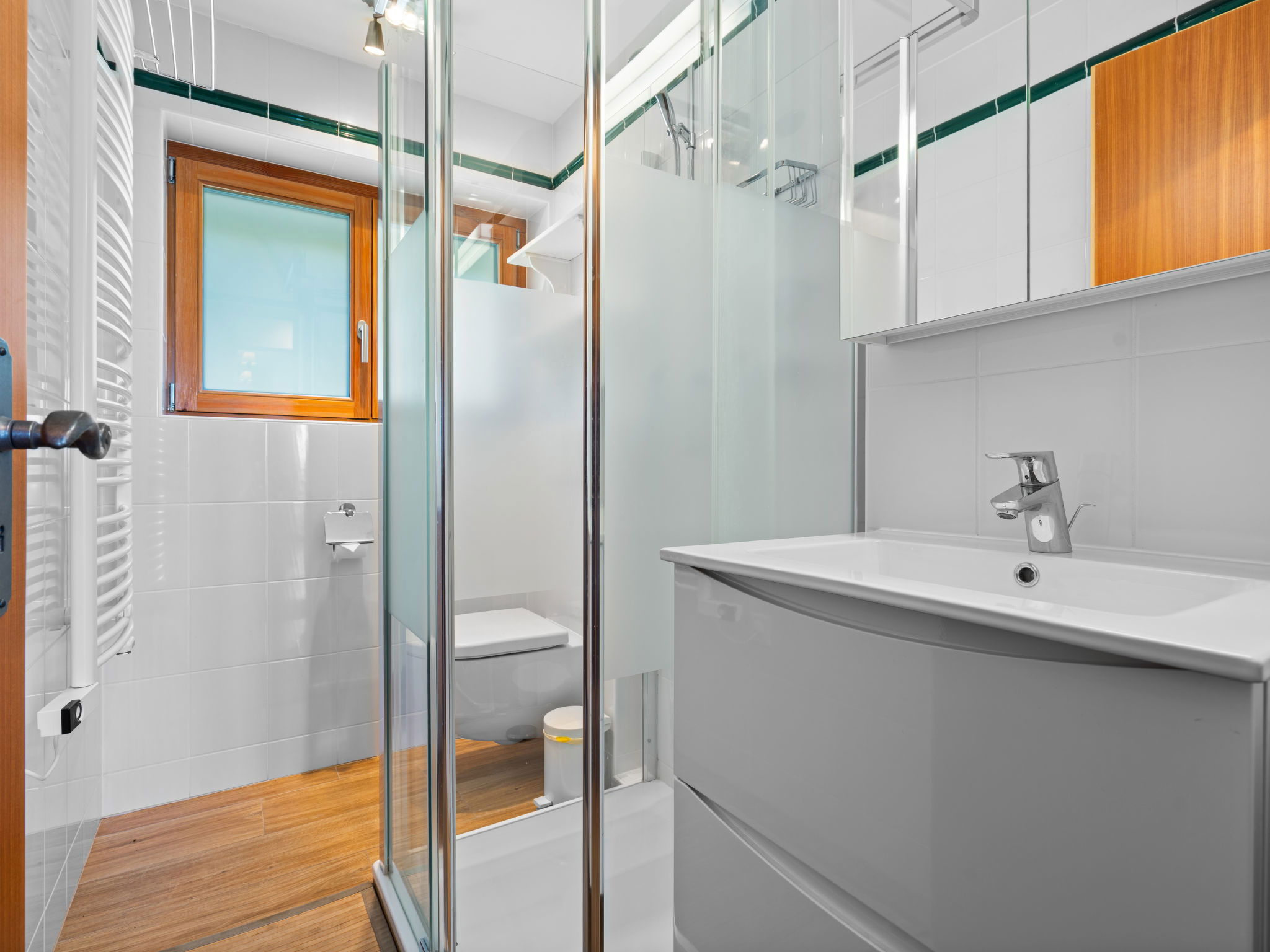 Comfortable 3-family house "Les Aiguilles Vertes", 4 storeys, built in 1962, renovated in 2015. In the district of Vermala, 1.7 km from the centre of Montana, in a quiet, elevated position, 1.5 km from the lake, 1.1 km from the skiing area, south-west facing position. For shared use: natural state property 1'273 m2. In the house: storage room for skis, central heating system, washing machine, tumble dryer (for shared use), ski boot dryer. Motor access (ramp). Single garage. Shop 1.7 km, supermarket 1.9 km, restaurant 1.5 km, bakery 2 km, bus stop "Vermala Centre" 200 m, railway station "Funiculaire Montana Gare" 2.1 km, bathing lake "Moubra" 2.7 km, lake Grenon 1.5 km. Golf course (18 hole) 2.8 km, skisport facilities 1.1 km. Well-known ski regions can easily be reached: Etang Long 2.9 km. Please note: ski bus (free of charge). Additional accommodations can be booked.