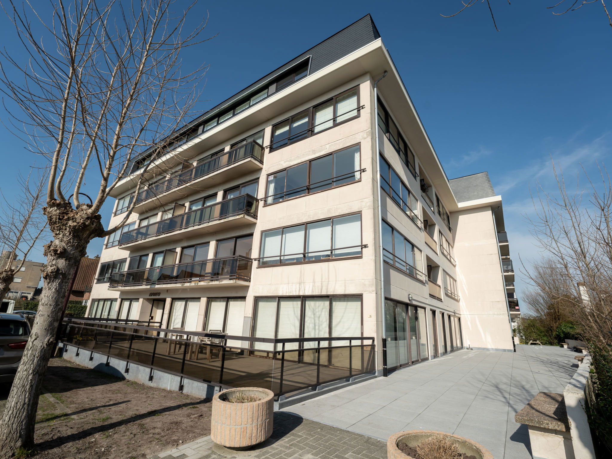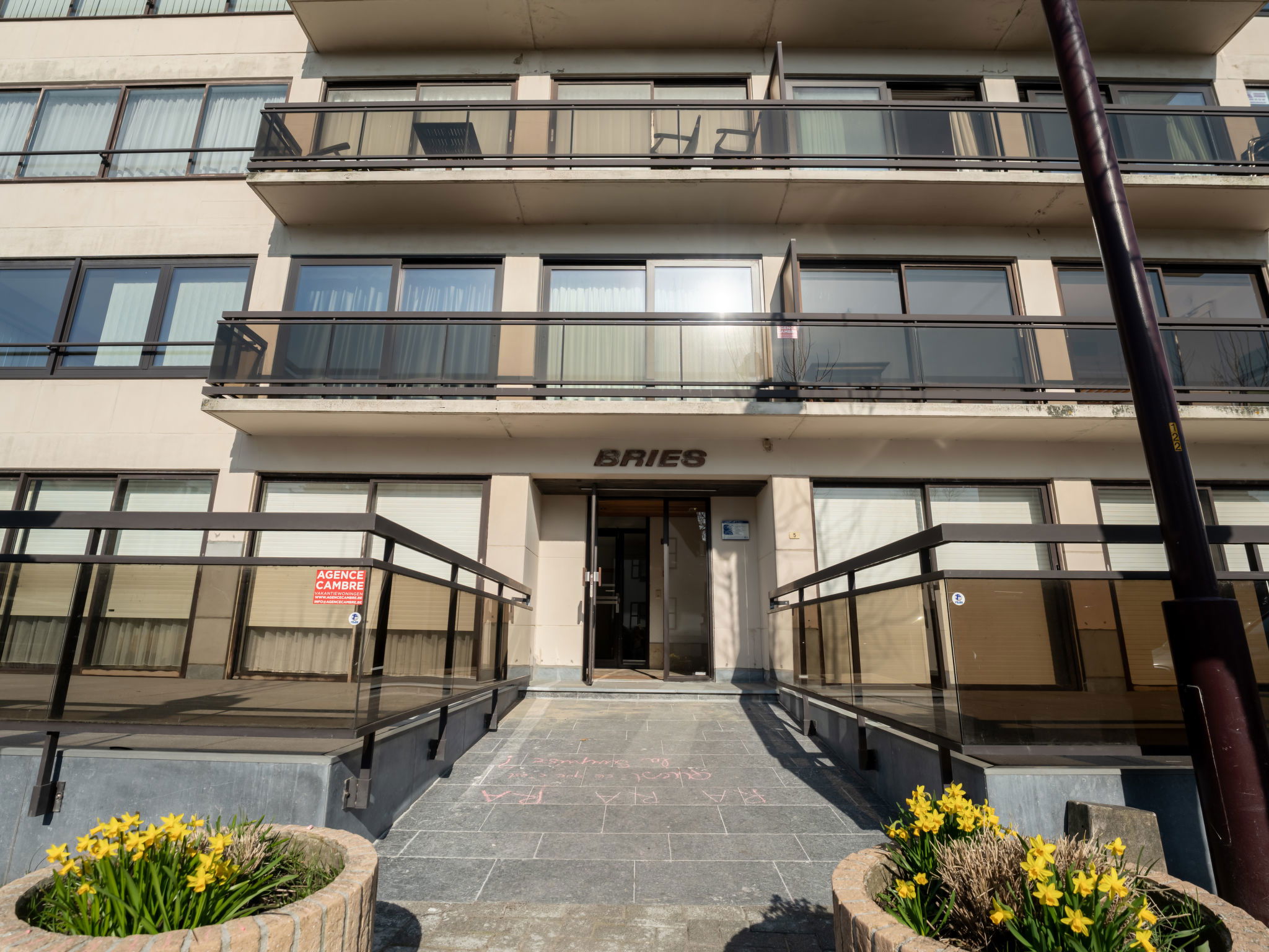 De Haan: Residence "Bries", 4 storeys. In the centre of De Haan, in a quiet position residential area (villas), 150 m from the sea, 150 m from the beach. In the house: lift, central heating system. Public parking on the road. Supermarket 850 m, restaurant 400 m, bar 500 m, bakery 400 m, café 500 m, bicycle rental 650 m, tram "De Haan aan Zee" 800 m, bus stop "De Haan aan Zee" 800 m, sandy beach 200 m. Golf course (18 hole) 2 km, surf school, sailing school 600 m, tennis 500 m, minigolf 500 m, children's playground 500 m. Nearby attractions: Brugge 17 km, Blankenberge Sea Life 10 km, Oostende 12 km, Brugge 20 km.