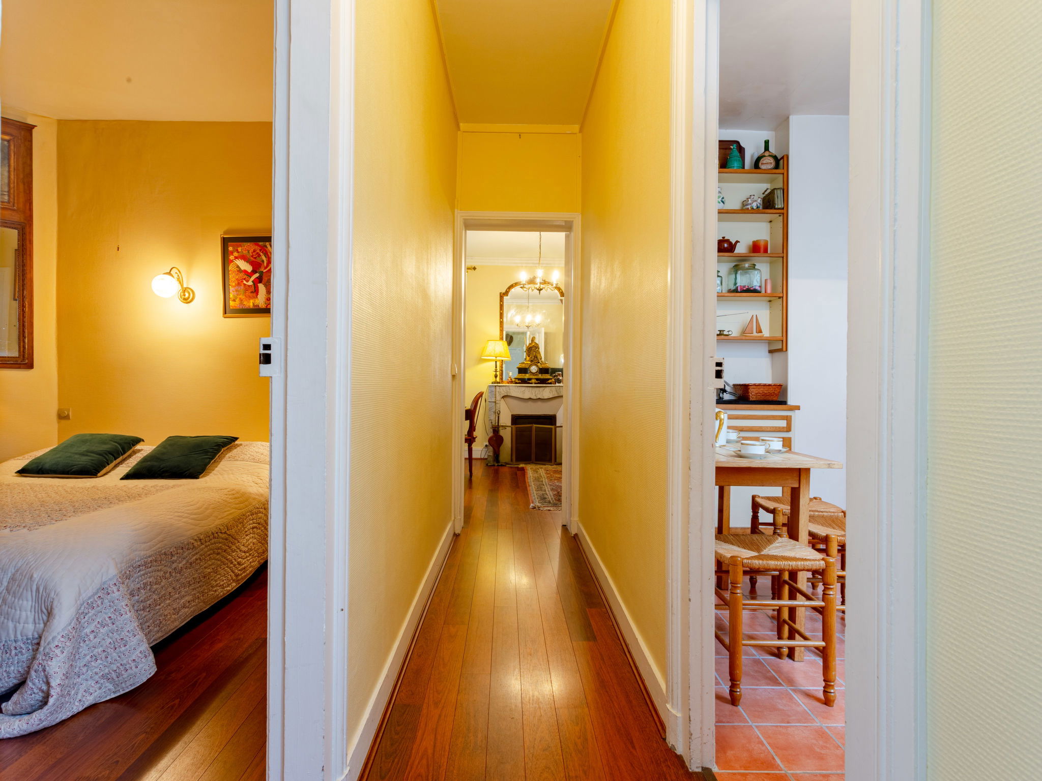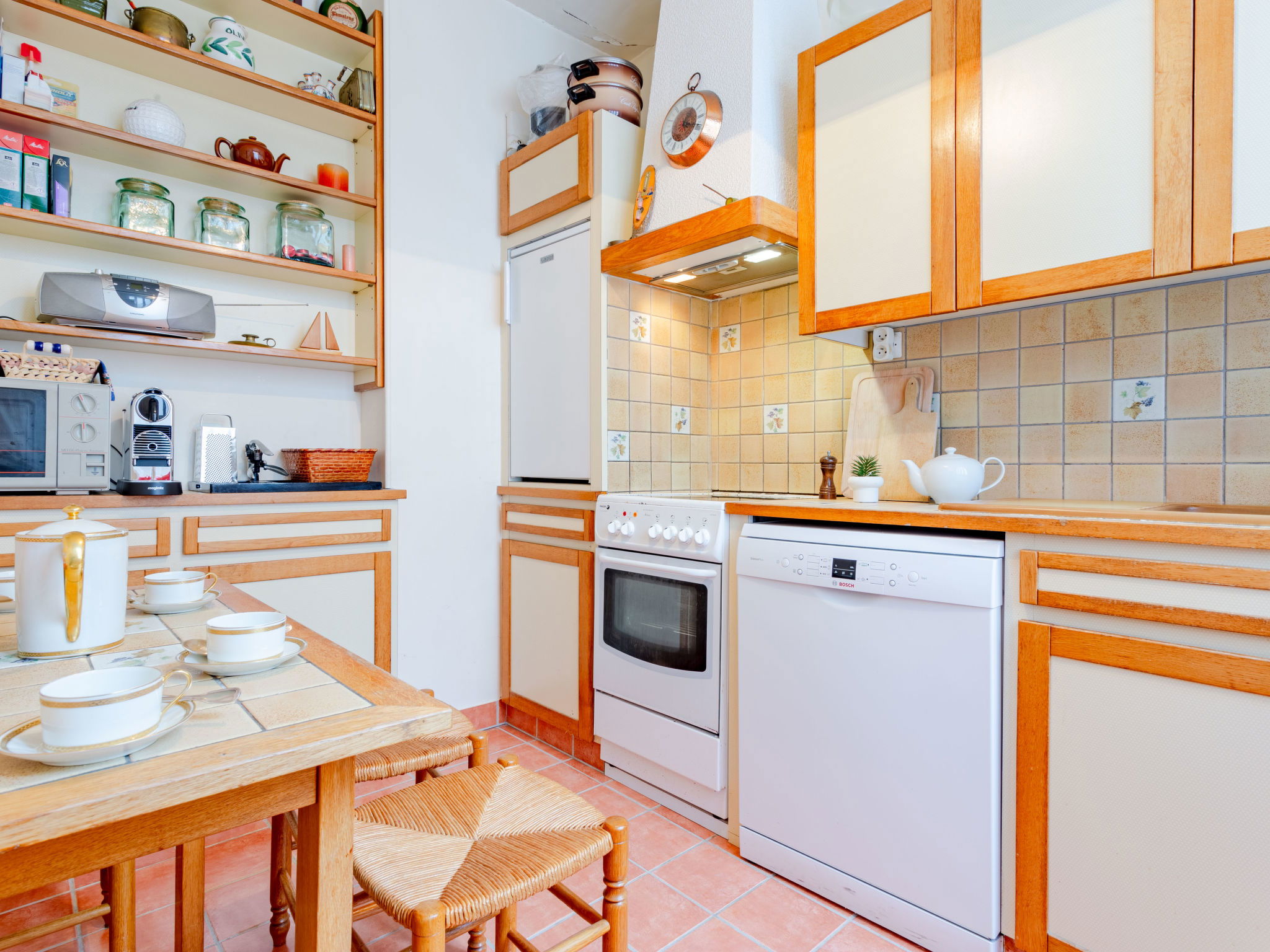"Cigale", 4-room apartment 64 m2, west facing position. Entrance hall. Living/dining room with TV (flat screen). 1 room with 2 beds (90 cm, length 190 cm). 1 room with 1 french bed (1 x 160 cm, length 200 cm). Kitchen (4 hot plates, oven, dishwasher, toaster, kettle, microwave, electric coffee machine). Shower/WC. Electric heating. Upper floor: with sloping ceilings, 1 room with 2 beds (90 cm, length 190 cm). Partial view of the sea. Facilities: washing machine, dryer. Internet (WiFi, free). Parking (fenced 1 car). Please note: 1 small pet/ dog allowed. Smoke alarm, no lift. Offer by a private individual according to Art. 155, IV of CGI.