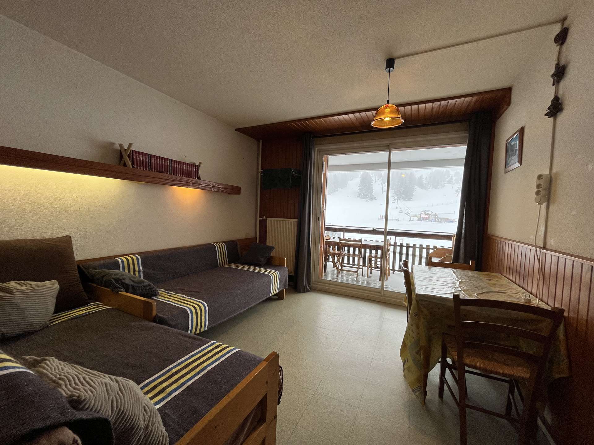 This mountain studio is on the ground floor of the "Le Bois d'Aurouze" residence, ideally located just 50m from the Le Jas chairlift! Facing southwest, it offers a view of the snow front.