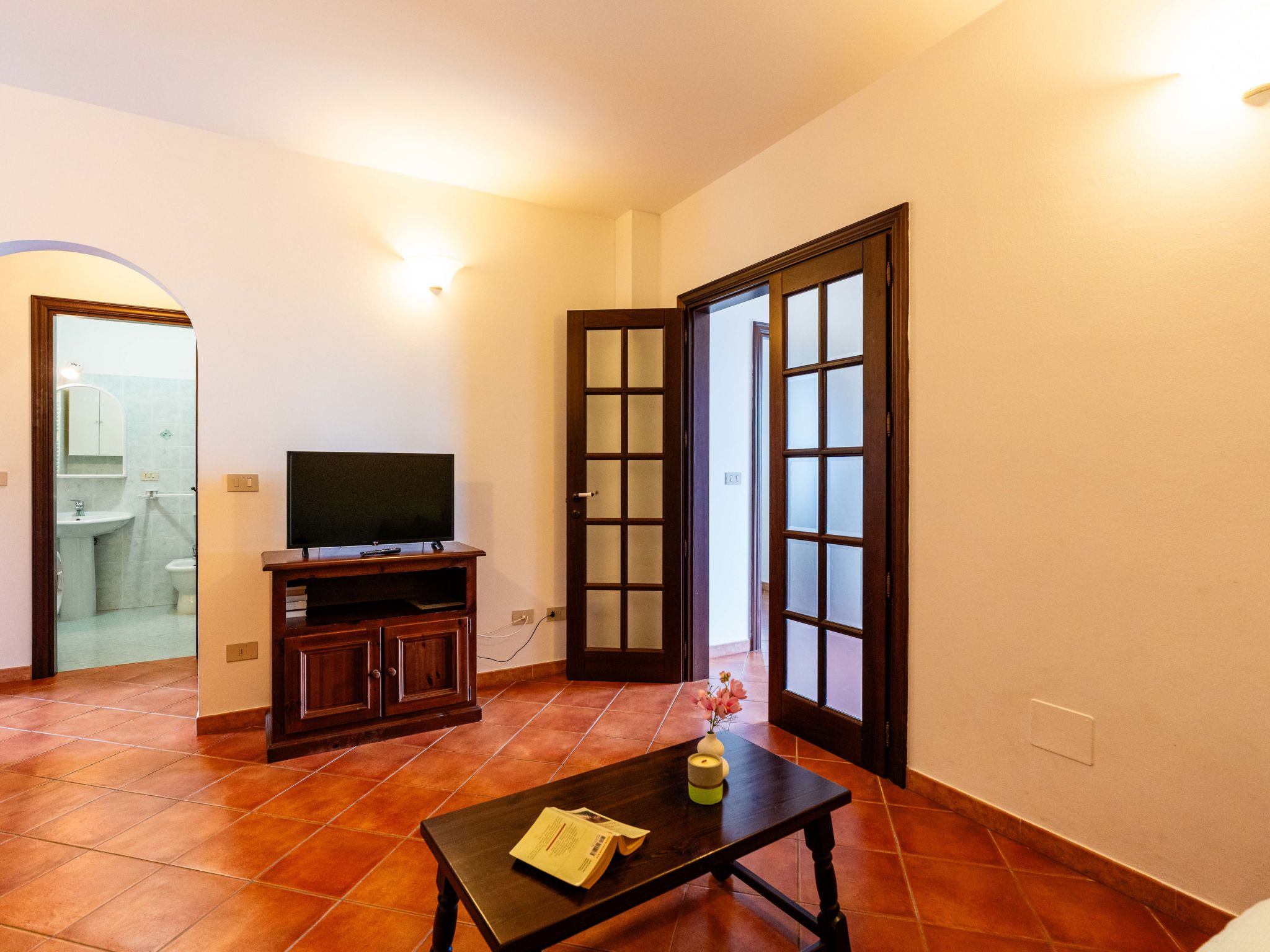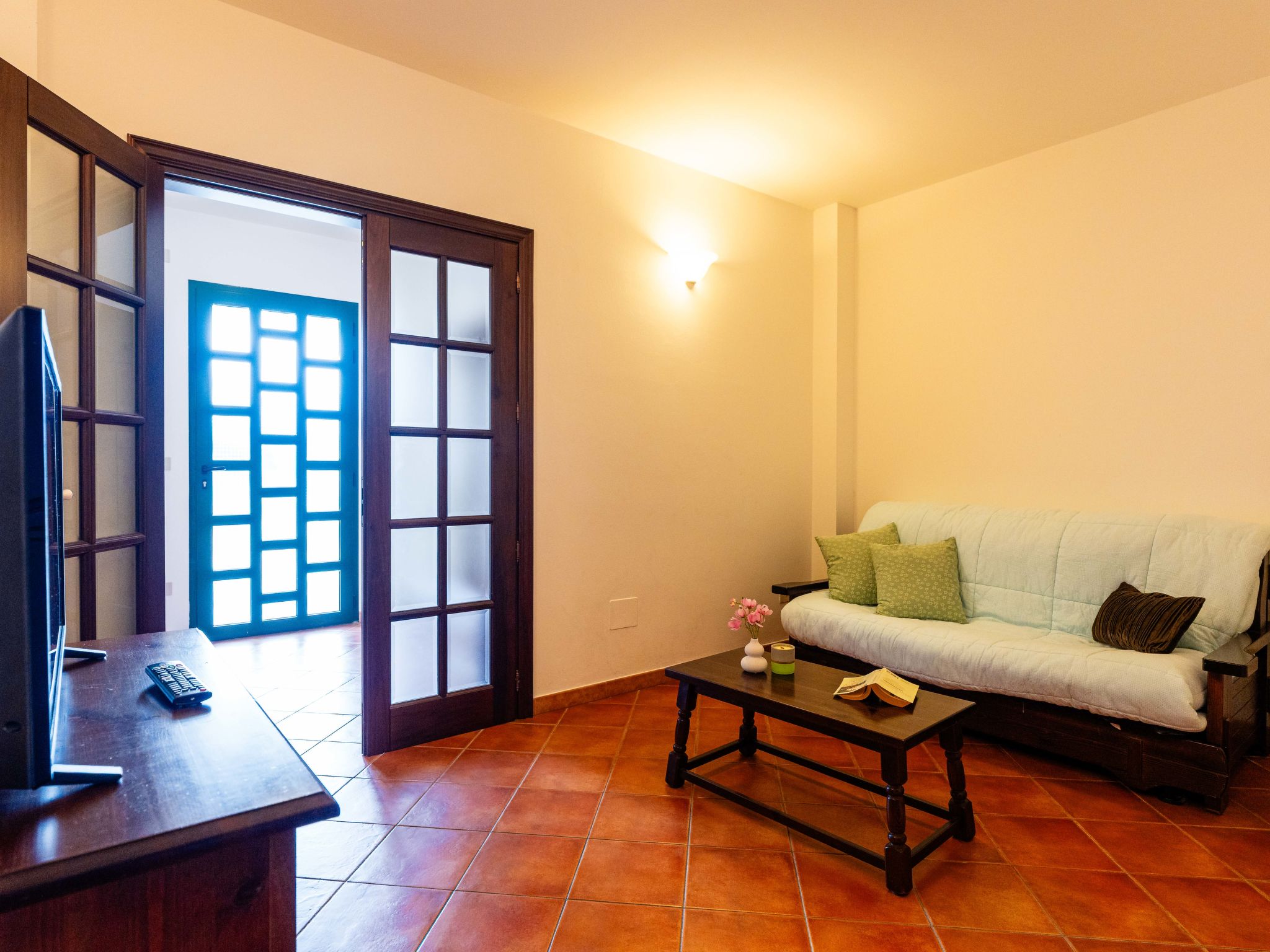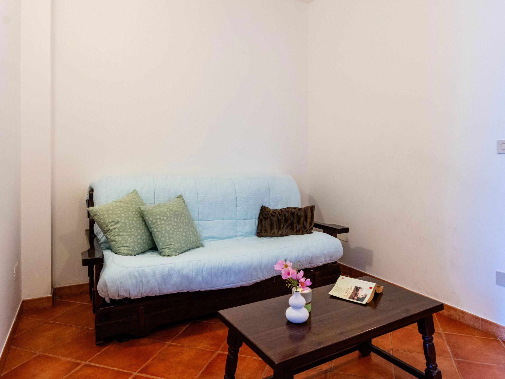 "Il Raggio", 2-room apartment 60 m2, on the ground floor. Rustic furnishings: living/sleeping room with 1 double sofabed, dining table and satellite TV. 1 room with 1 french bed (160 cm). Kitchen-/living room (oven, 4 gas rings, toaster, kettle, freezer, electric coffee machine) with small dining table. Exit to the balcony. Shower/WC. Gas heating. Patio. Facilities: washing machine, children's high chair, baby cot. Internet (WiFi, free). Please note: maximum 1 pet/ dog allowed. Private entrance. IT008026B53FWFJN55