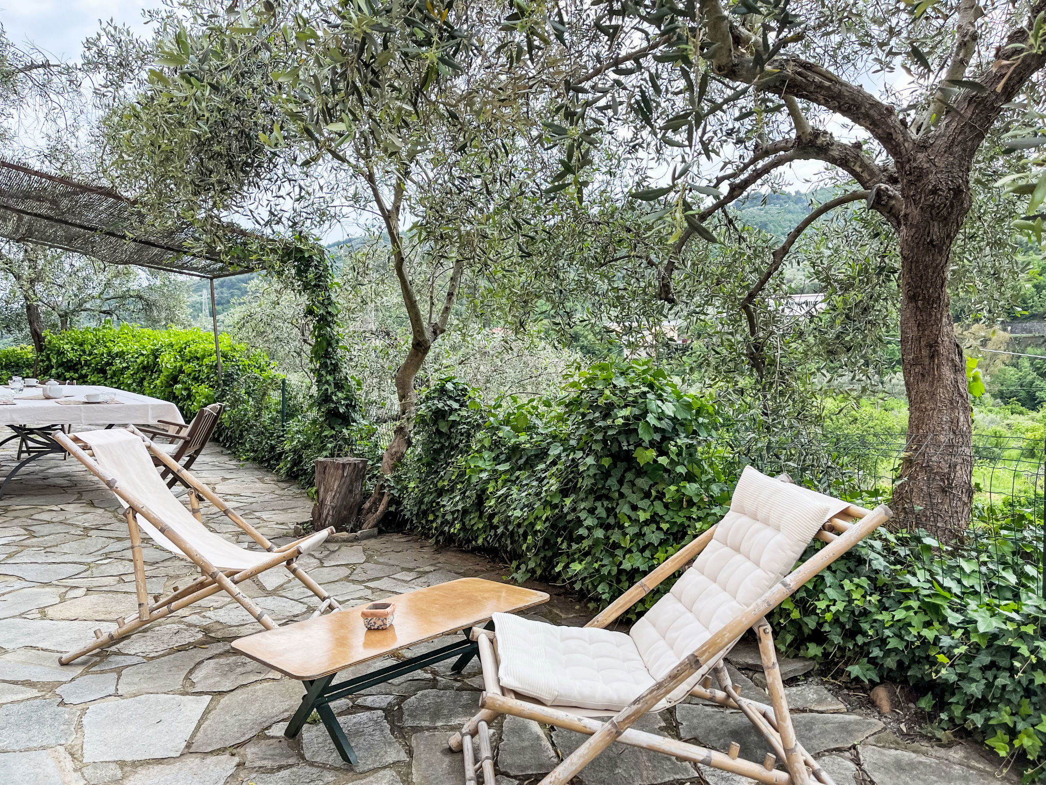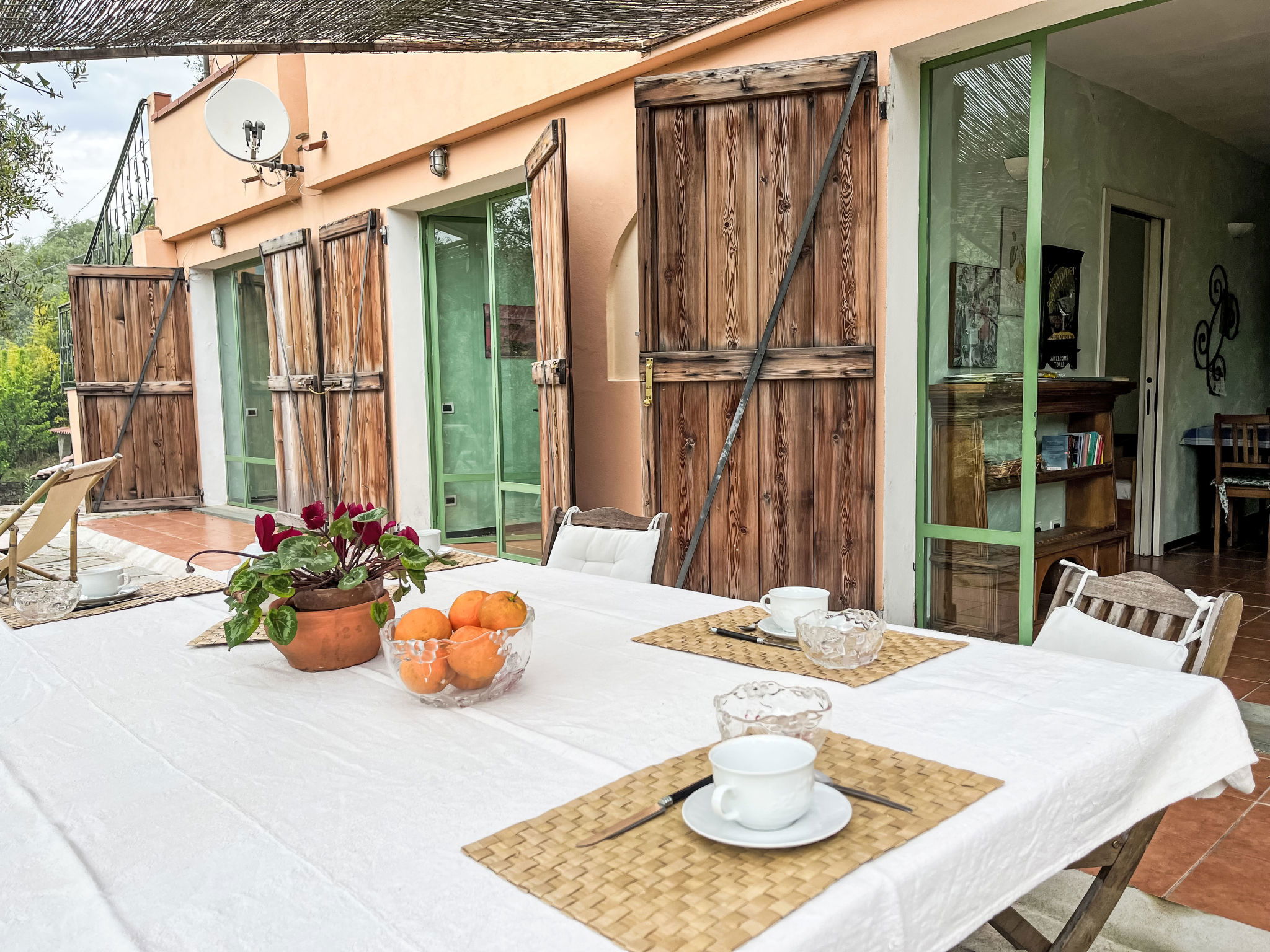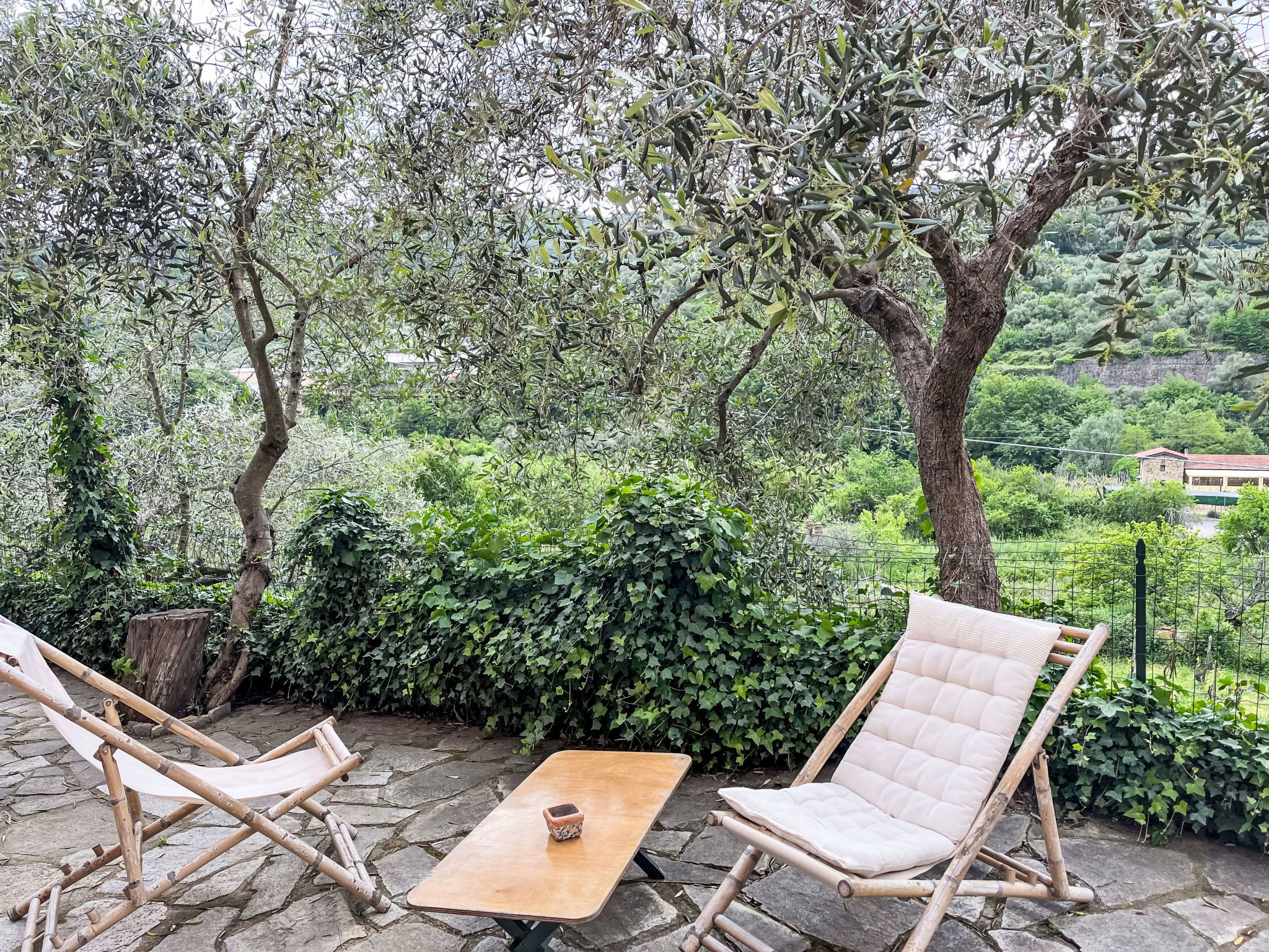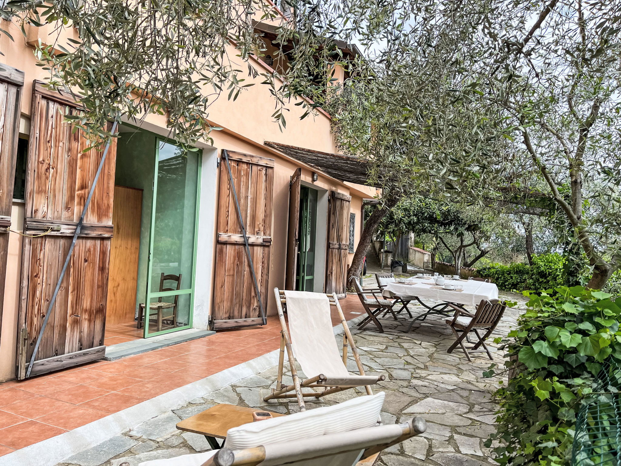 Beautiful, rustic 2-family house "NISSO", surrounded by trees. In the district of Isola Lunga, in the resort 1 km from the centre of Dolcedo, 6 km from the centre of Imperia, 35 km from the centre of San Remo, 5 km from the sea, in the countryside. For shared use: table tennis. Private: terraced garden (not fenced) with trees. In the house: washing machine. Parking on the premises. Grocery 100 m, supermarket 4 km, restaurant, bakery 50 m, café 400 m, bus stop 16.6 km, sandy beach "Imperia Borgo Marina" 6 km, outdoor swimming pool 6 km, indoor swimming pool 6 km.