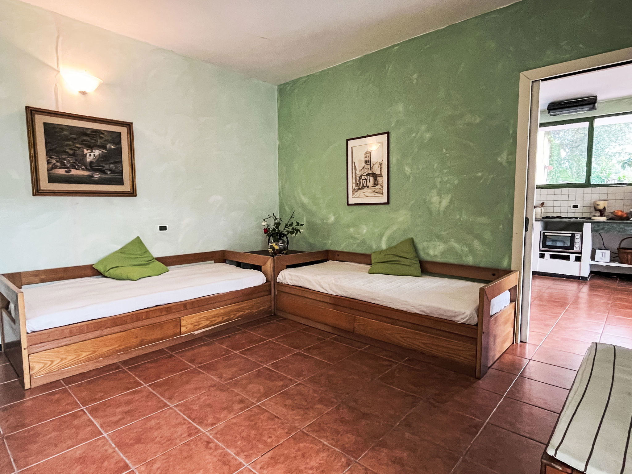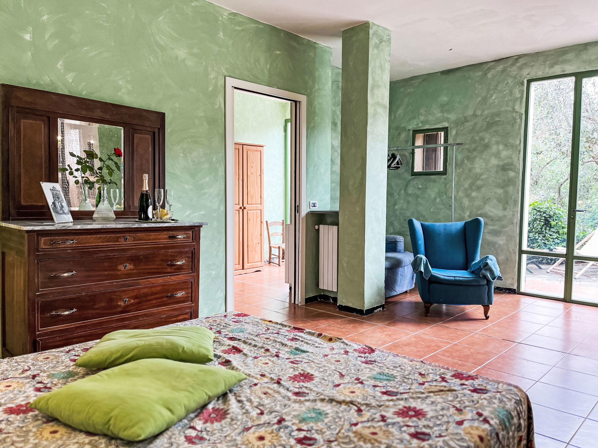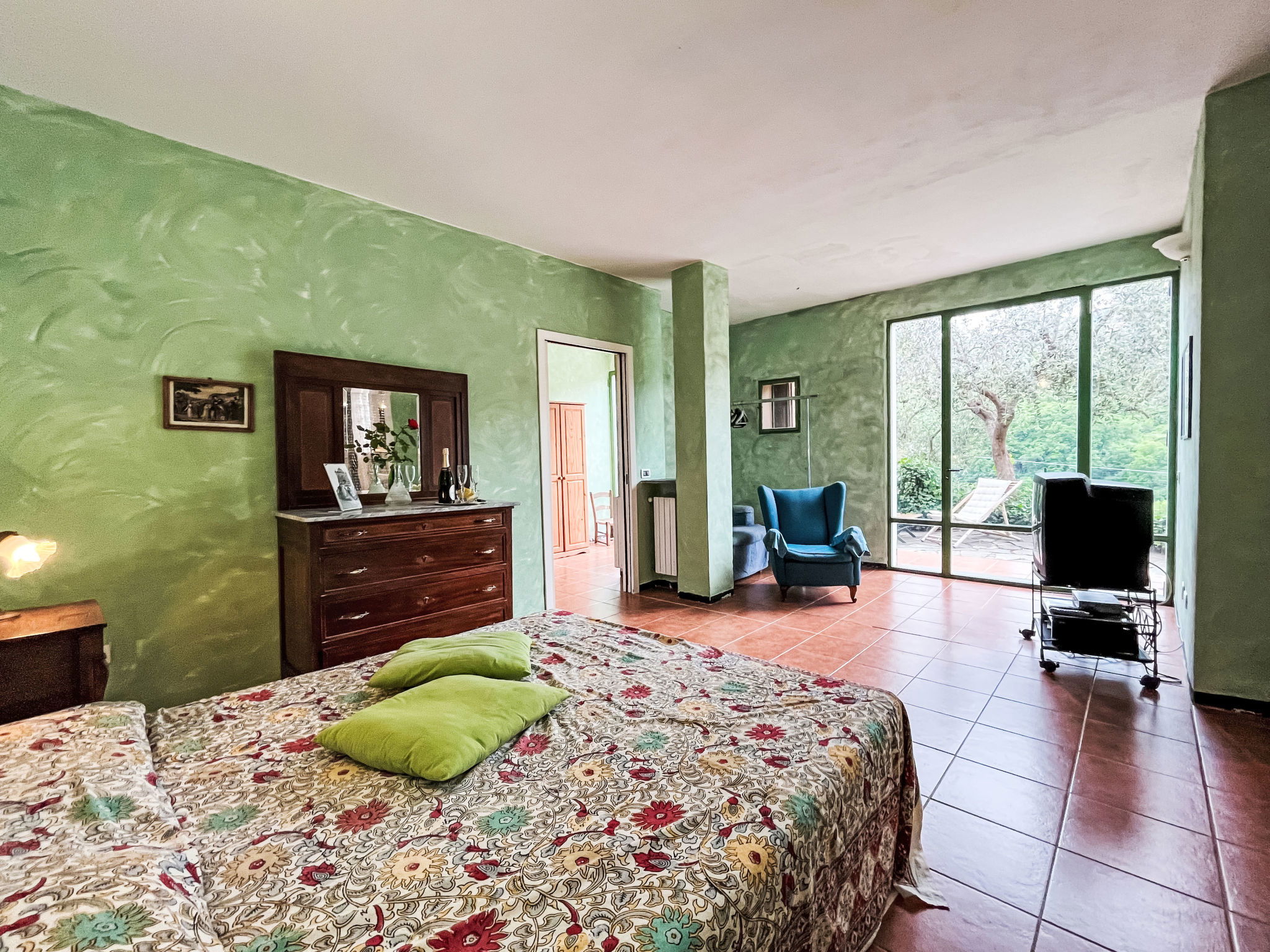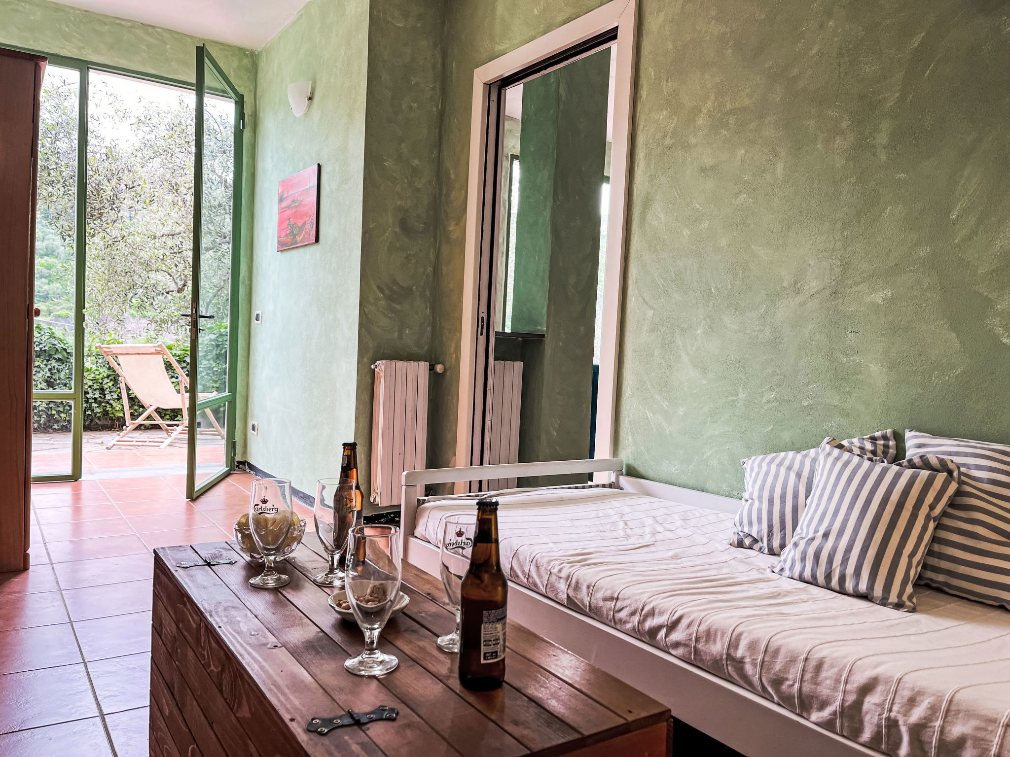 Beautiful, rustic 2-family house "NISSO", surrounded by trees. In the district of Isola Lunga, in the resort 1 km from the centre of Dolcedo, 6 km from the centre of Imperia, 35 km from the centre of San Remo, 5 km from the sea, in the countryside. For shared use: table tennis. Private: terraced garden (not fenced) with trees. In the house: washing machine. Parking on the premises. Grocery 100 m, supermarket 4 km, restaurant, bakery 50 m, café 400 m, bus stop 16.6 km, sandy beach "Imperia Borgo Marina" 6 km, outdoor swimming pool 6 km, indoor swimming pool 6 km.
