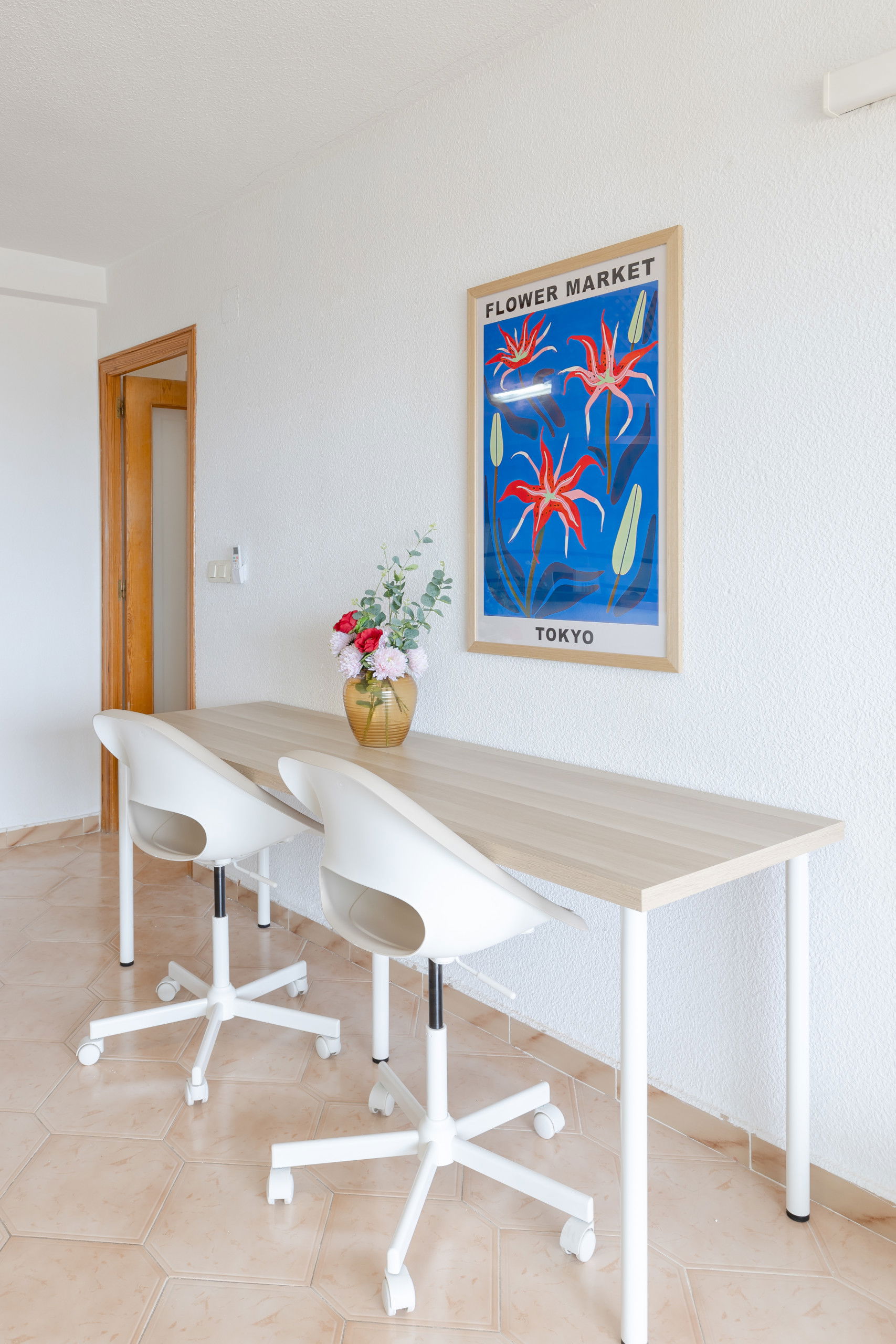 The living room, permeated with natural light, has an air conditioning system to maintain a pleasant temperature throughout the year. Additionally, the air extends to the corridor and rooms, ensuring a comfortable environment in every corner of the apartment.