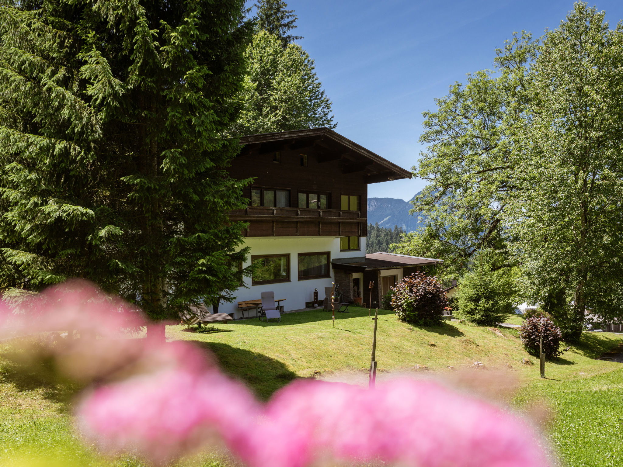Ellmau: Apartment block "Esche", detached. 5 apartments in the property. 2.5 km from the centre of Ellmau, in a quiet position on a slope, 2.5 km from the skiing area. For shared use: lawn for sunbathing, beautiful garden to relax. Terrace (30 m2), garden furniture, barbecue. In the complex: lounge, central heating system. Parking (for 4 cars) at the house. Supermarket 1.9 km, restaurant 350 m, bakery 1 km, bus stop "Ellmau/Auwald" 550 m, railway station "Kitzbühel" 17 km, outdoor swimming pool 1.9 km, indoor swimming pool 1.9 km. Golf course (18 hole) 2.4 km, skisport facilities 2.5 km, ski rental 2.5 km, ski bus stop 550 m. Nearby attractions: Kitzbühel Zentrum 16 km, Bergdoktorhaus 3.3 km, Schleier Wasserfall 10.7 km, Casino Kitzbühel 16 km. Well-known ski regions can easily be reached: SkiWelt Wilder Kaiser 2.5 km, Kitzbühel 16 km. Well-known lakes can easily be reached: Schwarzsee Kitzbühel 16 km, Hintersteinersee 6.7 km. Hiking paths: wandern und radfahren ab Haus möglich, Radwege in unmittelbarer Nähe, Hexenwasser Söll 12.4 km. Please note: ski bus (free of charge).