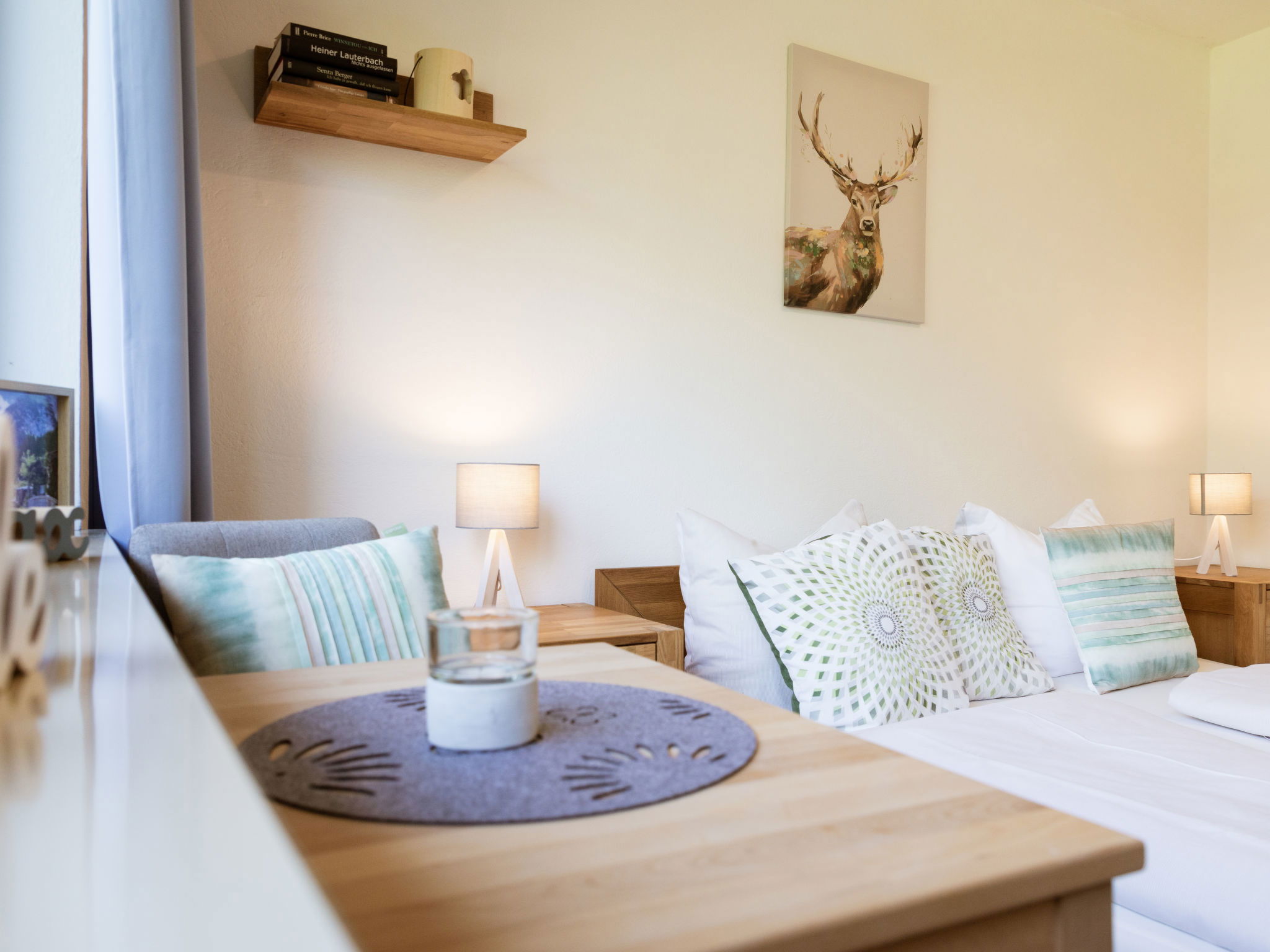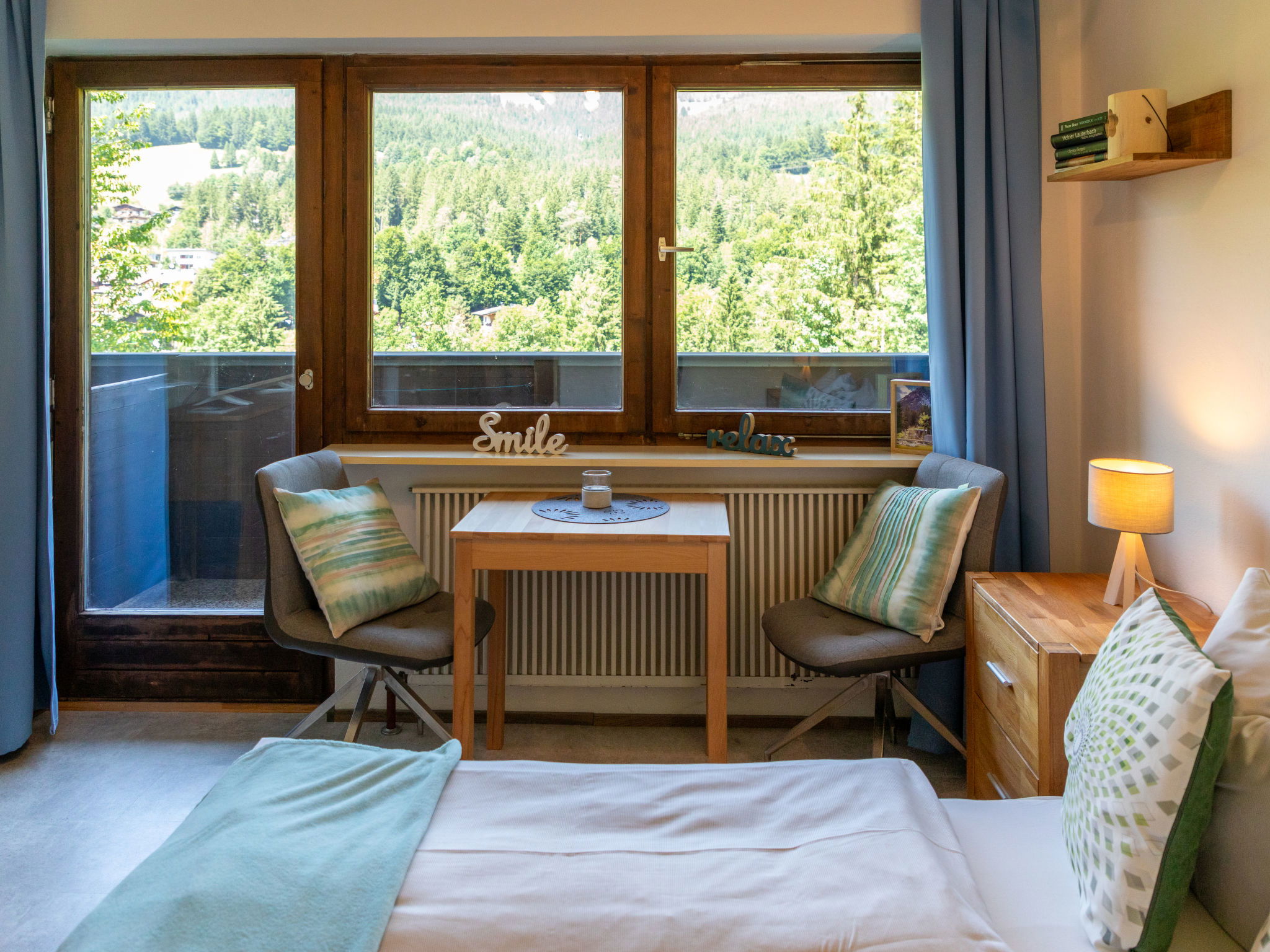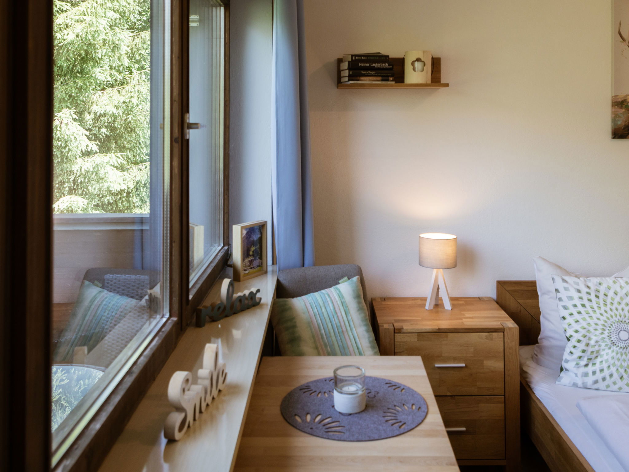 "Studio Esche 4", 1-room apartment 20 m2 on 1st floor. Beautiful and cosy furnishings: living/sleeping room with 1 double bed (180 cm, length 200 cm), bath/WC and satellite TV (flat screen). Open kitchen (2 hot plates, toaster, kettle, microwave, electric coffee machine). Balcony. Balcony furniture. Beautiful panoramic view of the mountains. Facilities: Internet (WiFi, free). Please note: non-smokers only. Maximum 1 pet/ dog allowed. Smoke alarm.