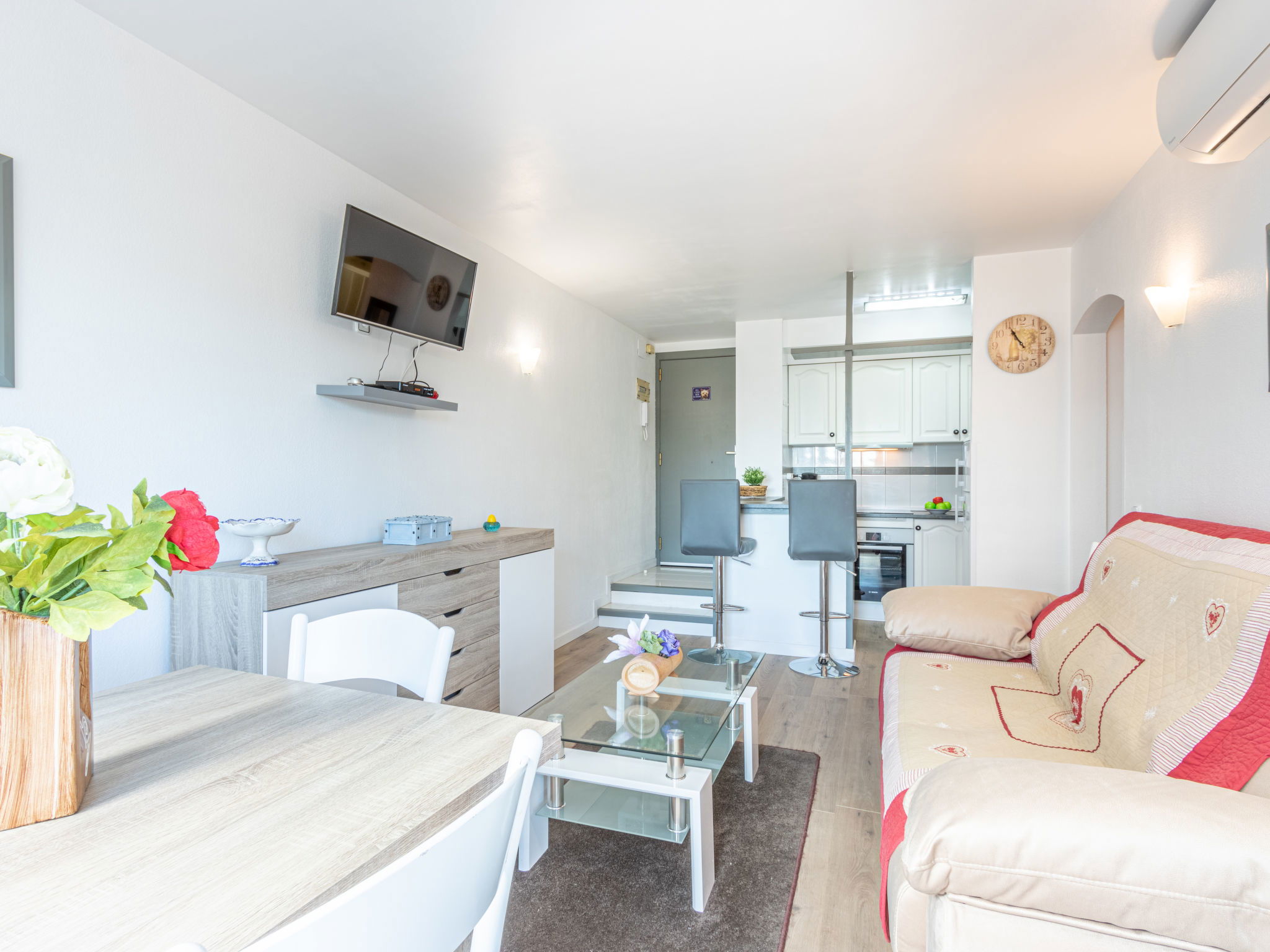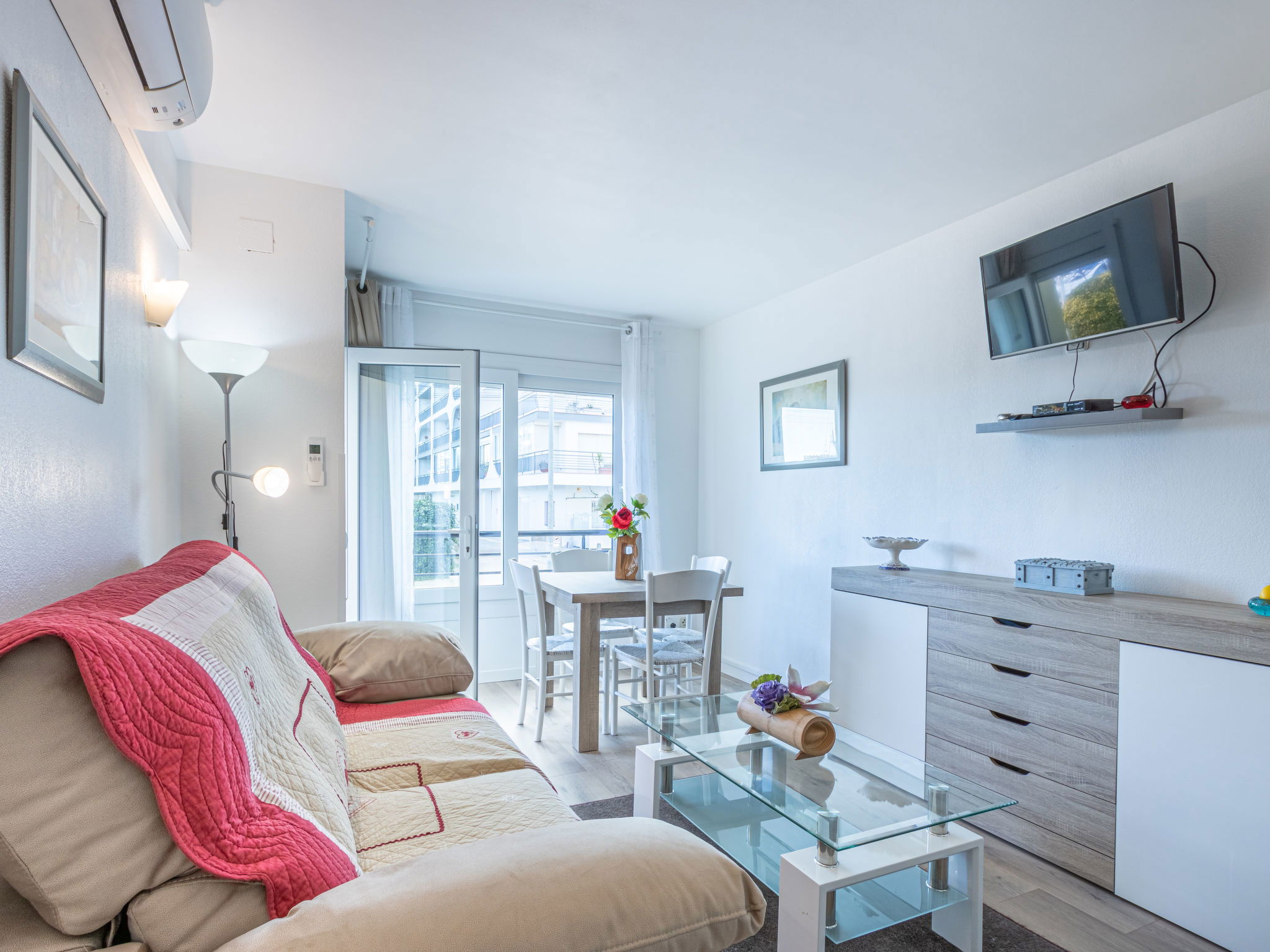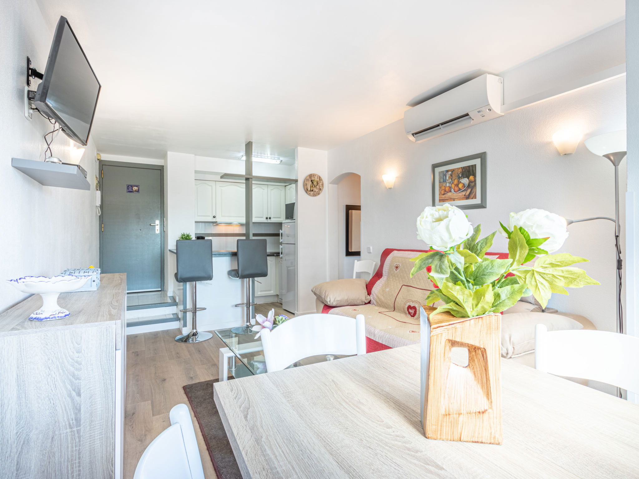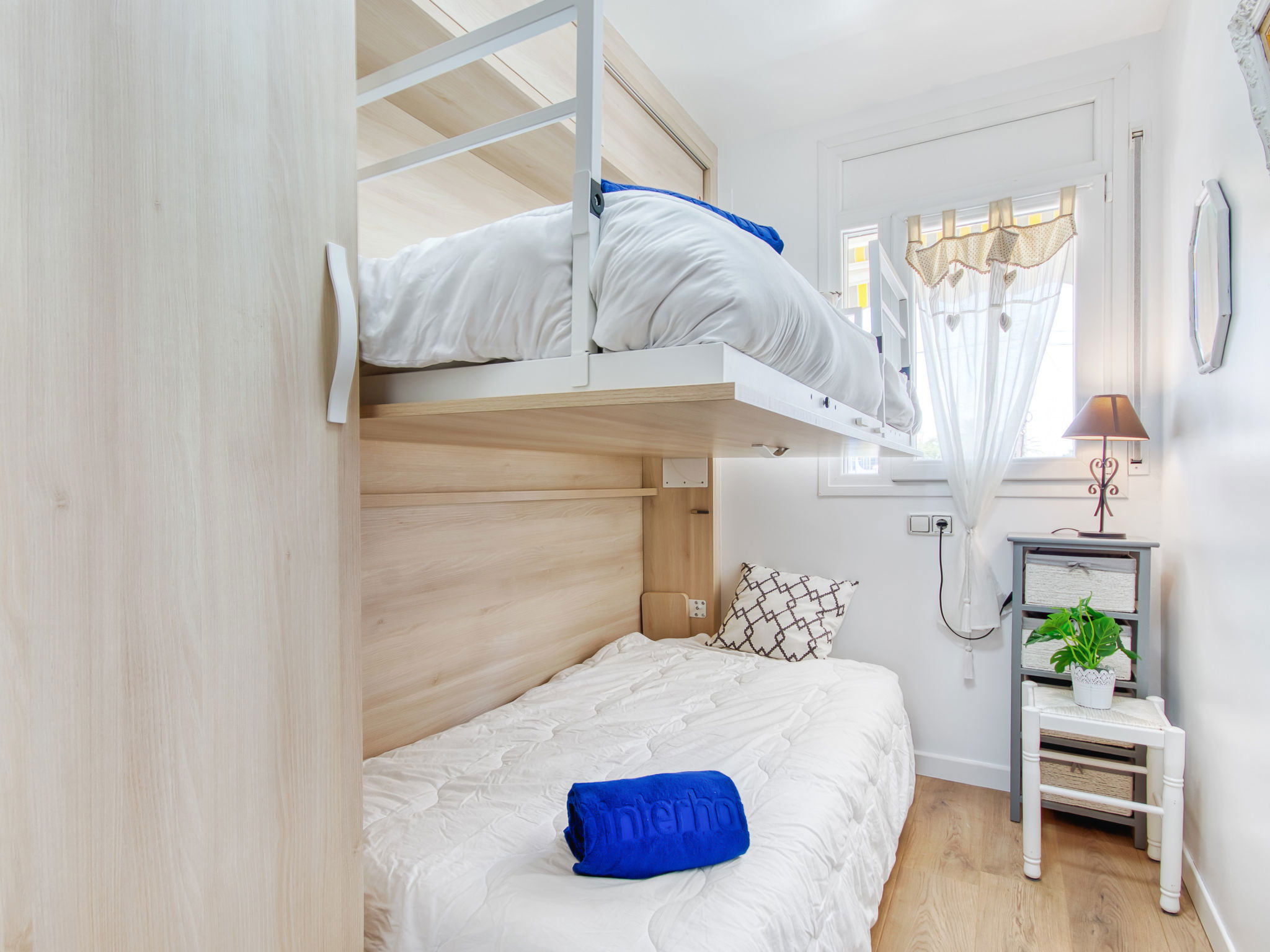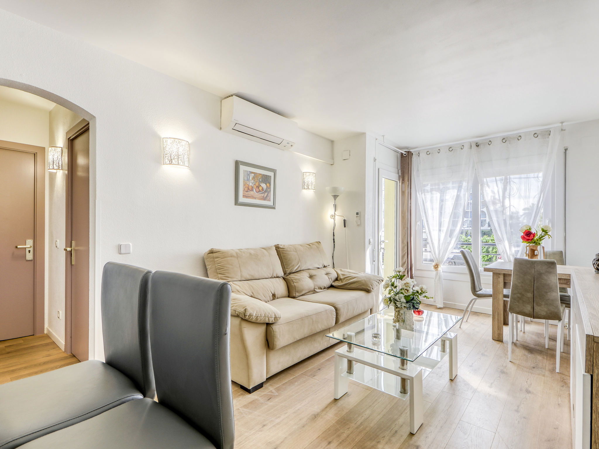 3-room apartment 55 m2, on the ground floor, south facing position. Comfortable and cosy furnishings: living/dining room with 1 double sofabed, dining table and satellite TV (flat screen), air conditioning and forced-air heating. Exit to the balcony, south facing position. 1 children's room with 1 x 2 bunk beds (90 cm, length 190 cm). 1 room with 1 double wall-trunk bed, air conditioning and forced-air heating. Open kitchen (mini-oven, oven, dishwasher, 3 ceramic glass hob hotplates, microwave, freezer, electric coffee machine, fondue Set (cheese)) with bar. Bath/WC. Balcony. Balcony furniture. Beautiful view of the canal. Facilities: washing machine, iron, children's high chair, baby cot, hair dryer. Internet (WiFi, free). Please note: non-smokers only. 1 small pet/ dog allowed. TV only FR. HUTG034492 // Reg. Nr.: ESFCTU000017020000206974000000000000000000HUTG0344926