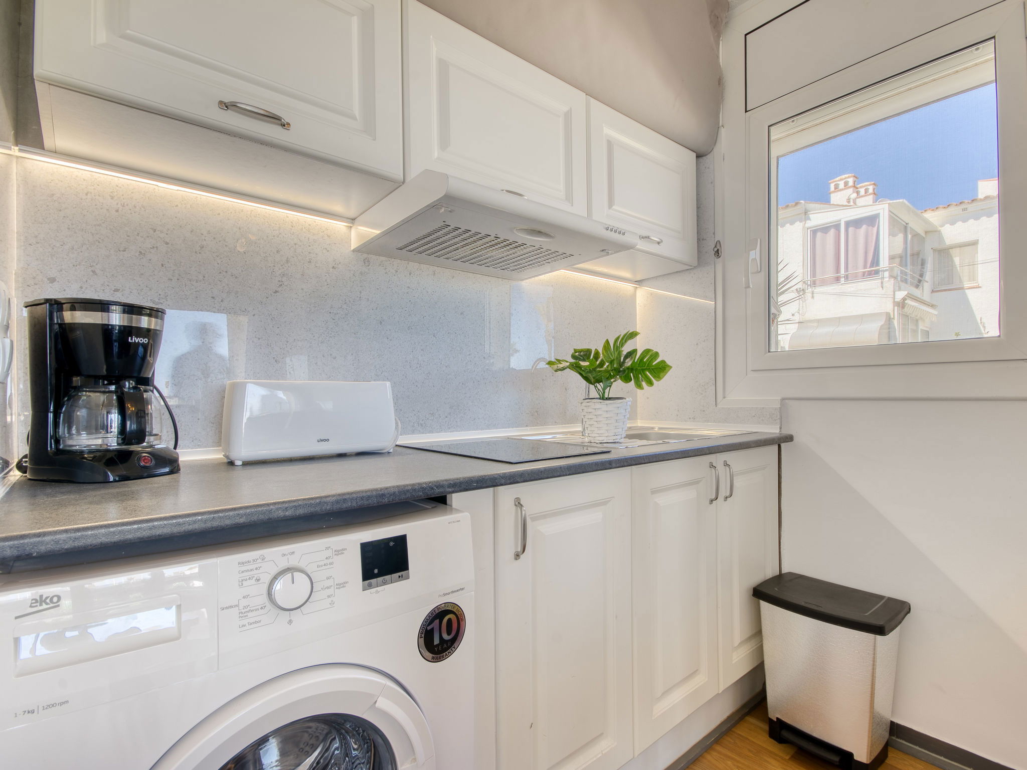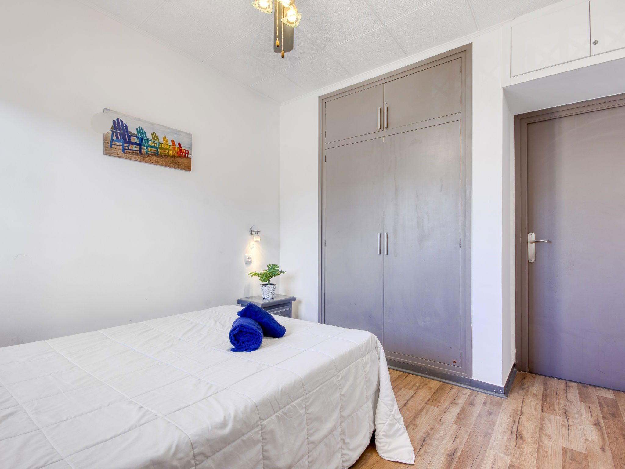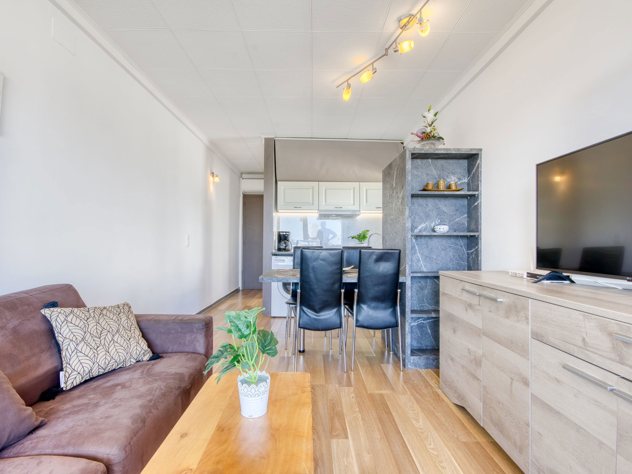 2-room apartment 32 m2 on 1st floor, south facing position. Fully renovated, modern and tasteful furnishings: living/dining room with 1 double sofabed (140 cm, length 190 cm), dining table and satellite TV (flat screen), air conditioning and forced-air heating. Exit to the balcony, south facing position. 1 room with 1 french bed (140 cm, length 190 cm). Small, open kitchen (2 ceramic glass hob hotplates, microwave, electric coffee machine). Shower/WC. Air-conditioning. Small balcony, south facing position. Balcony furniture. Marvellous panoramic view of the sea. Facilities: iron, hair dryer. Internet (WiFi, free). Parking space n 14. Please note: fridge without freezer. Maximum 1 pet/ dog allowed. TV only FR. No lift. *there is no washing machine in the apartment. HUTG023221