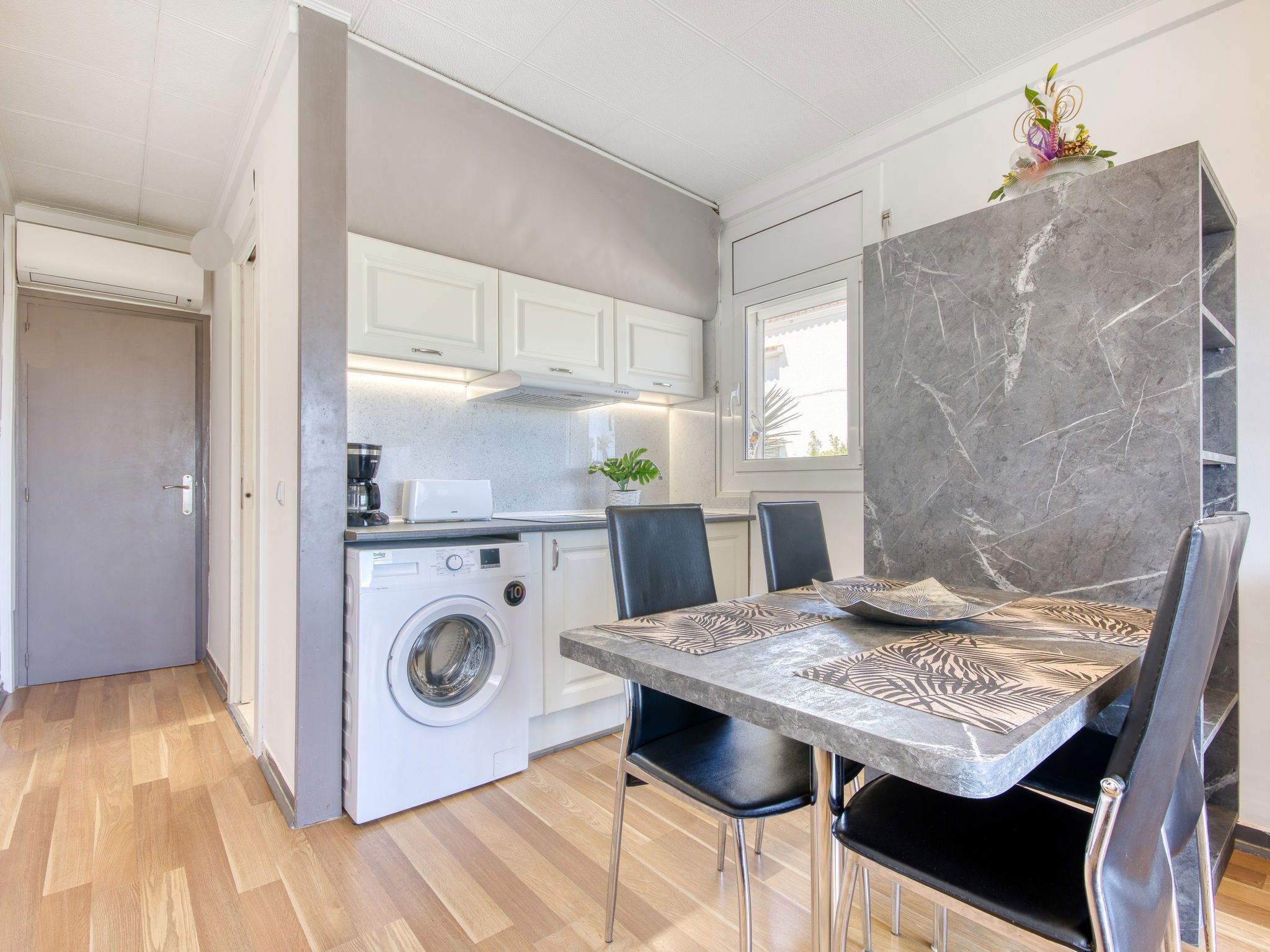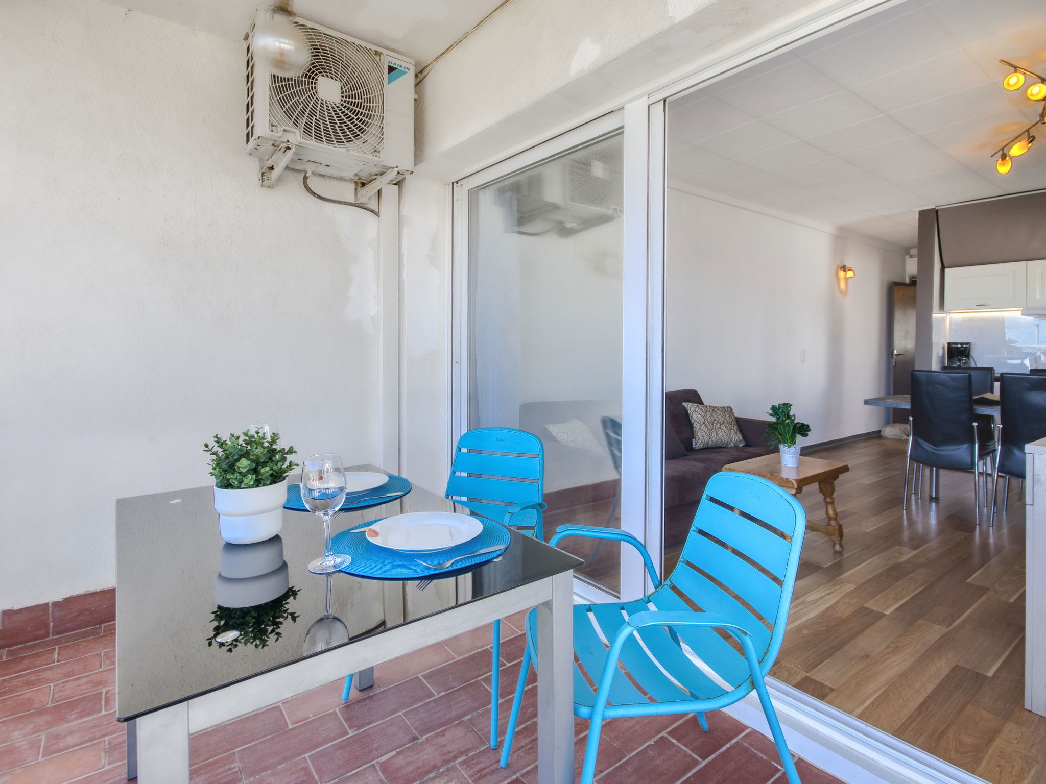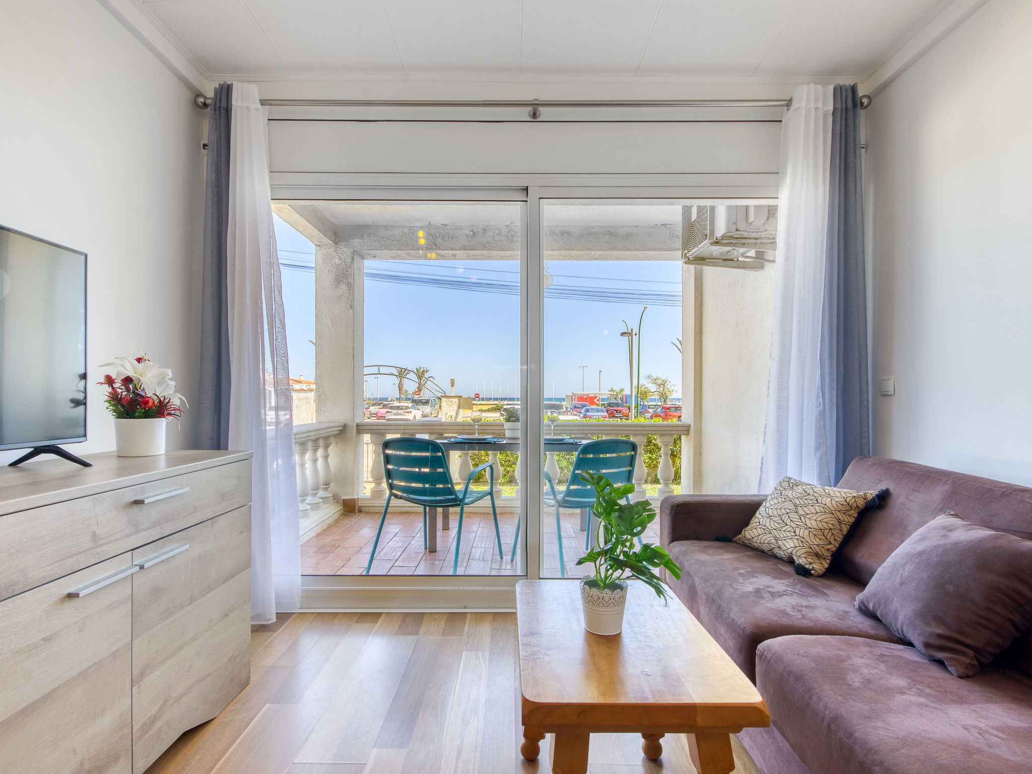 2-room apartment 32 m2 on 1st floor, south facing position. Fully renovated, modern and tasteful furnishings: living/dining room with 1 double sofabed (140 cm, length 190 cm), dining table and satellite TV (flat screen), air conditioning and forced-air heating. Exit to the balcony, south facing position. 1 room with 1 french bed (140 cm, length 190 cm). Small, open kitchen (2 ceramic glass hob hotplates, microwave, electric coffee machine). Shower/WC. Air-conditioning. Small balcony, south facing position. Balcony furniture. Marvellous panoramic view of the sea. Facilities: iron, hair dryer. Internet (WiFi, free). Parking space n 14. Please note: fridge without freezer. Maximum 1 pet/ dog allowed. TV only FR. No lift. *there is no washing machine in the apartment. HUTG023221