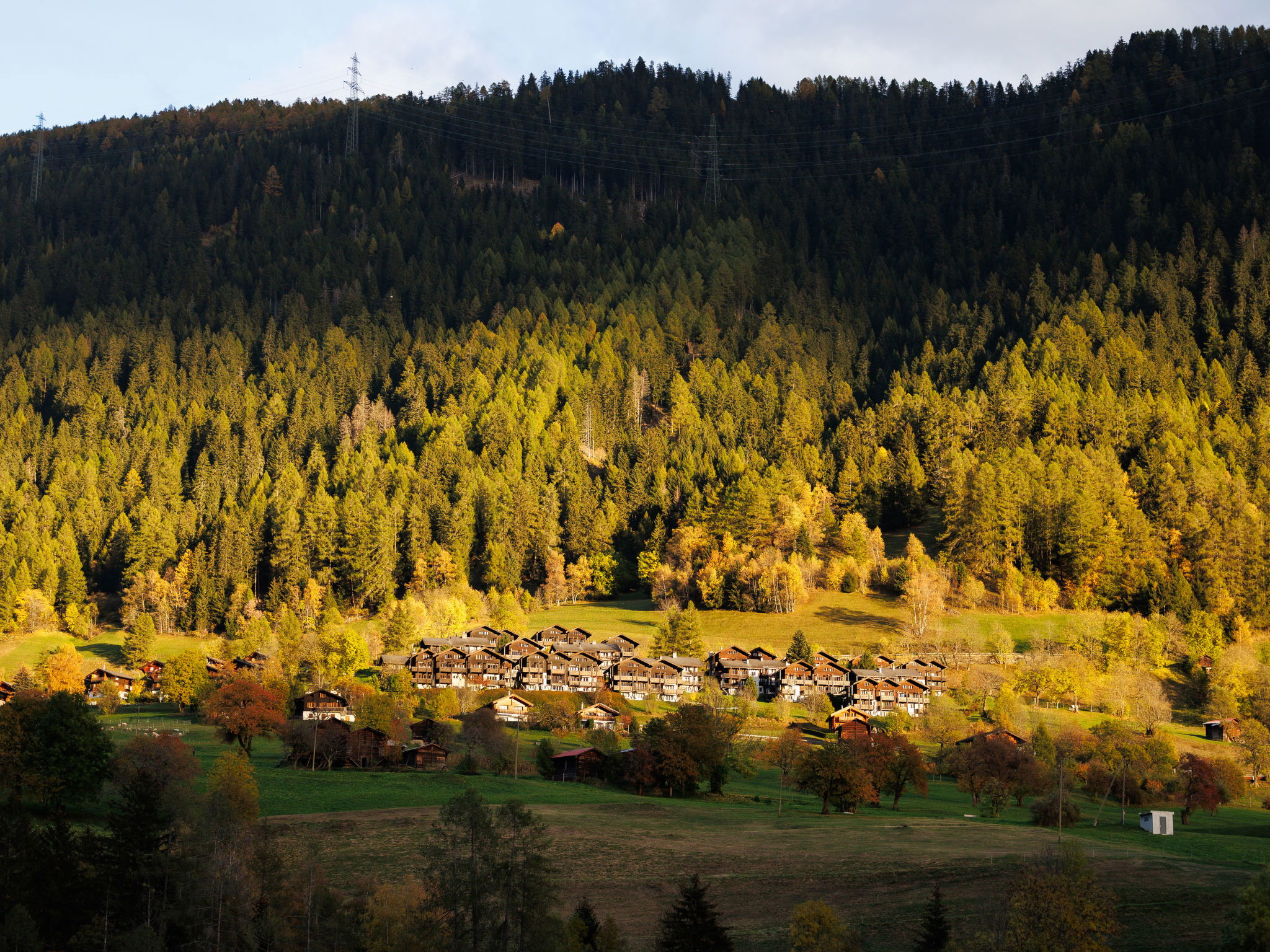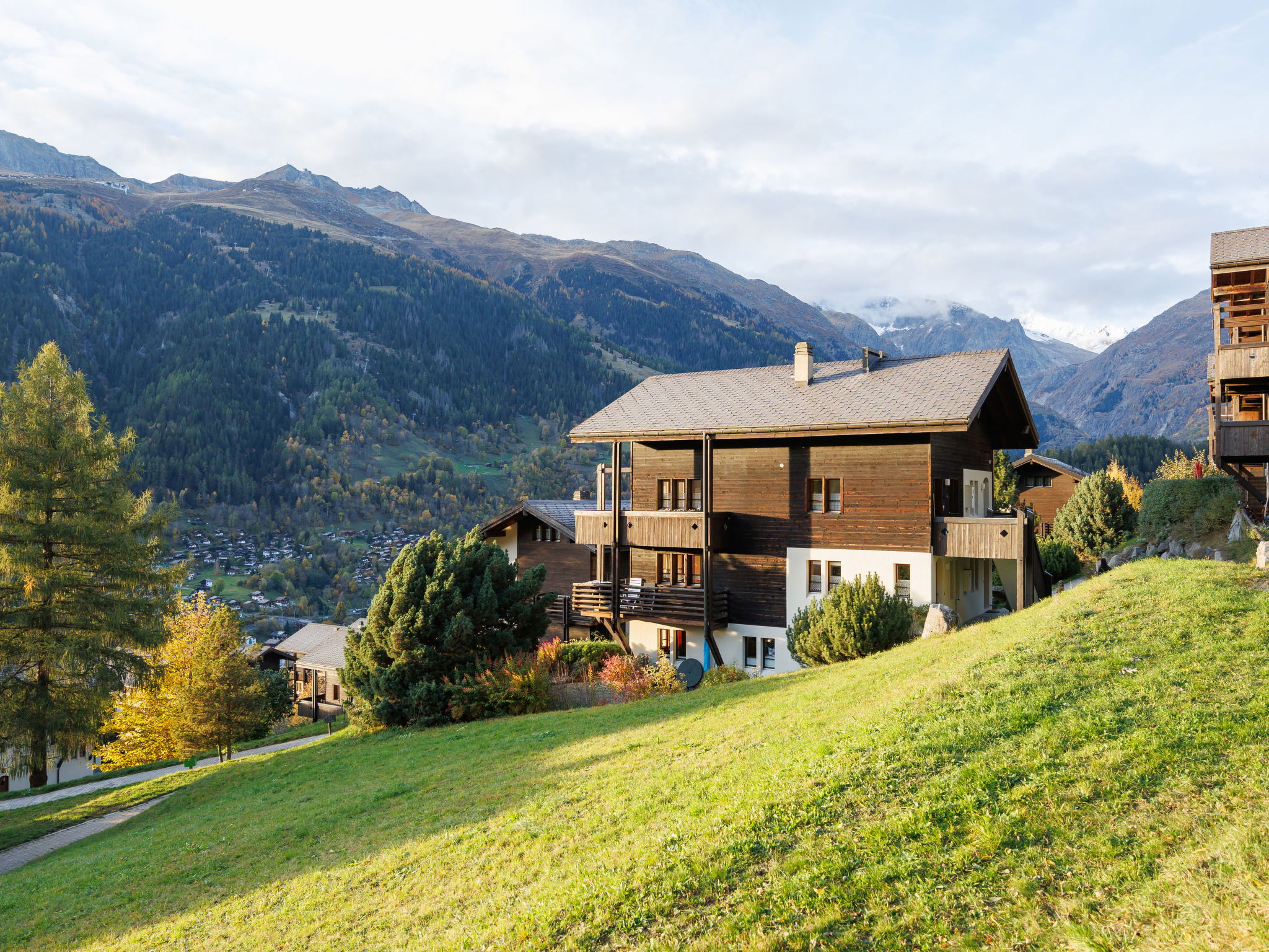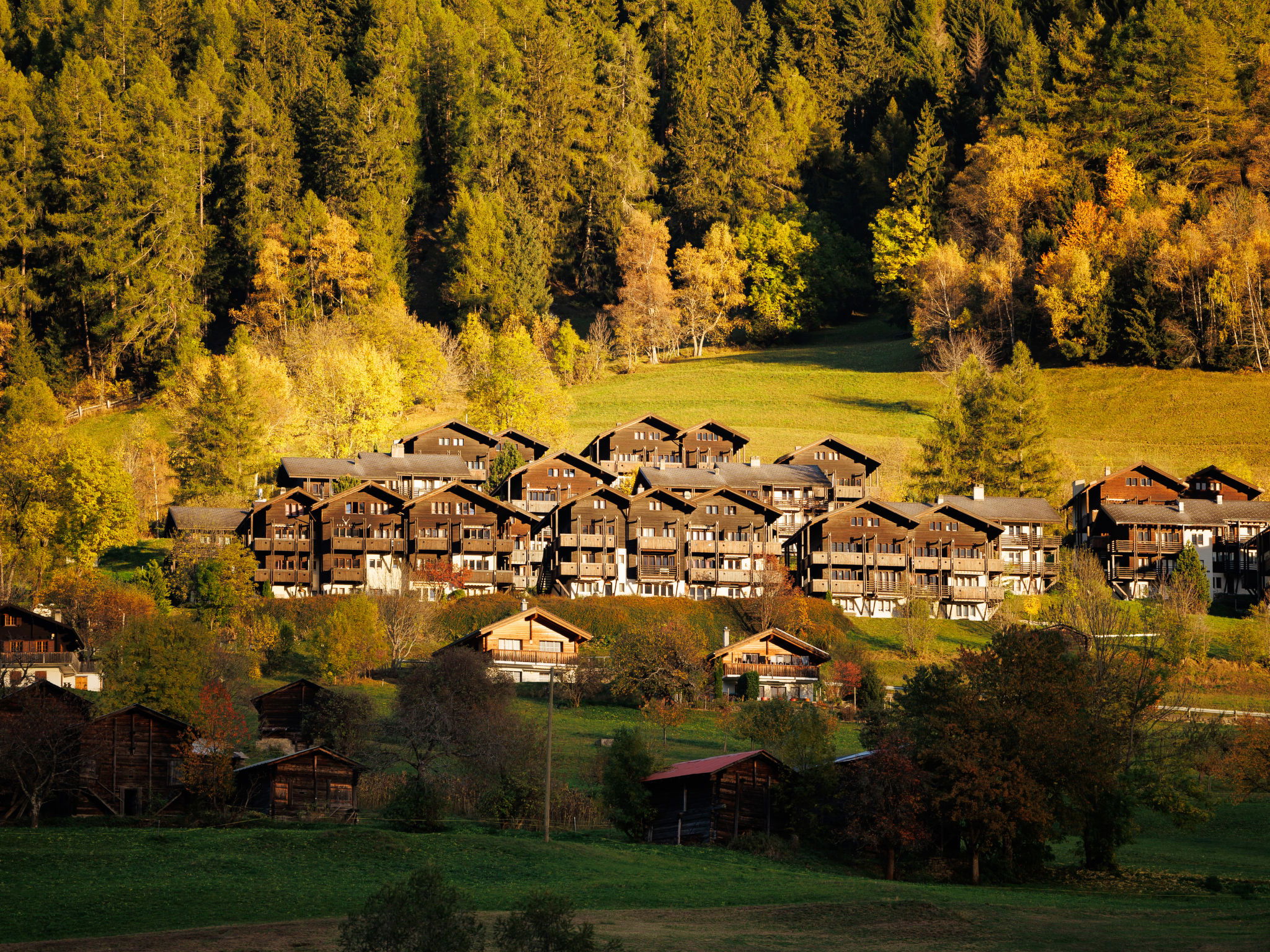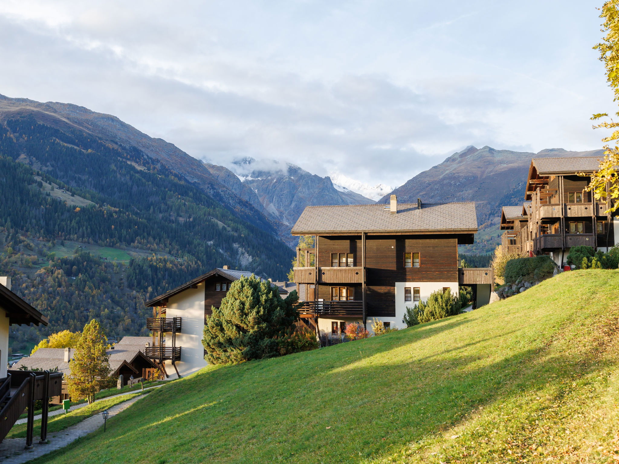 Cosy, rustic holiday village "Aragon", 1'200 m a.s.l.. 21 houses in the resort. On the outskirts, 500 m from the centre of Ernen, in a quiet, sunny position on a slope, 4 km from the skiing area. For shared use: table tennis, barbecue, fireplace, children's playground. In the house: storage room for bicycles, storage room for skis, central heating system, washing machine, tumble dryer (for shared use, extra). Motor access to the grounds (mountain road). In Winter: please take snow chains, 4x4 car recommended in winter. Communal covered parking. Shop 500 m, bus stop 100 m. Golf course (18 hole) 25 km, tennis 4 km, indoor tennis centre 4 km, sports centre 4 km, gondola lift 4 km, skisport facilities 4 km, ski rental 4 km, ski bus stop 100 m, ski school 4 km, cross country ski track 4 km. Well-known ski regions can easily be reached: Aletsch Arena 4 km, Bellwald 12 km. Hiking paths: Landschaftspark Binntal 10 km. The new hanging bridge connects the two hiking estates of Ernen and Bellwald and provides access to the national cycle route nr. 1 (road of the Rhone glacier lake to Lake Geneva). Between Ernen and Mühlebach, the bridge provides direct access to the Matterhorn Gotthard train.