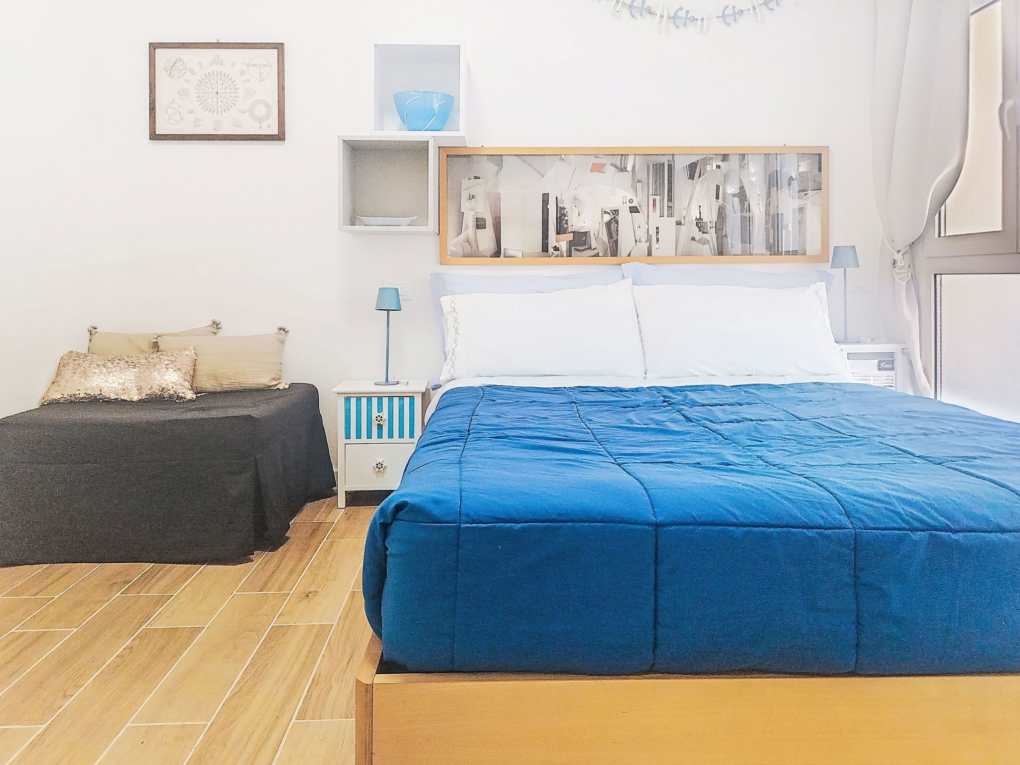 "Acquamarina", 2-room apartment 35 m2, on the ground floor. Fully renovated in 2025, beautiful and cosy furnishings: living/sleeping room with 1 double sofabed (1 x 140 cm, length 200 cm). 1 room with 1 double bed (1 x 160 cm, length 200 cm). Kitchenette (dishwasher, 4 gas rings, toaster, kettle, freezer, electric coffee machine). Shower/WC. Air-conditioning, forced-air heating. Facilities: washing machine, hair dryer. Internet (WiFi, free). Please note: maximum 1 pet/ dog allowed. Smoke alarm, fire extinguisher. IT009029C2J469DYJU