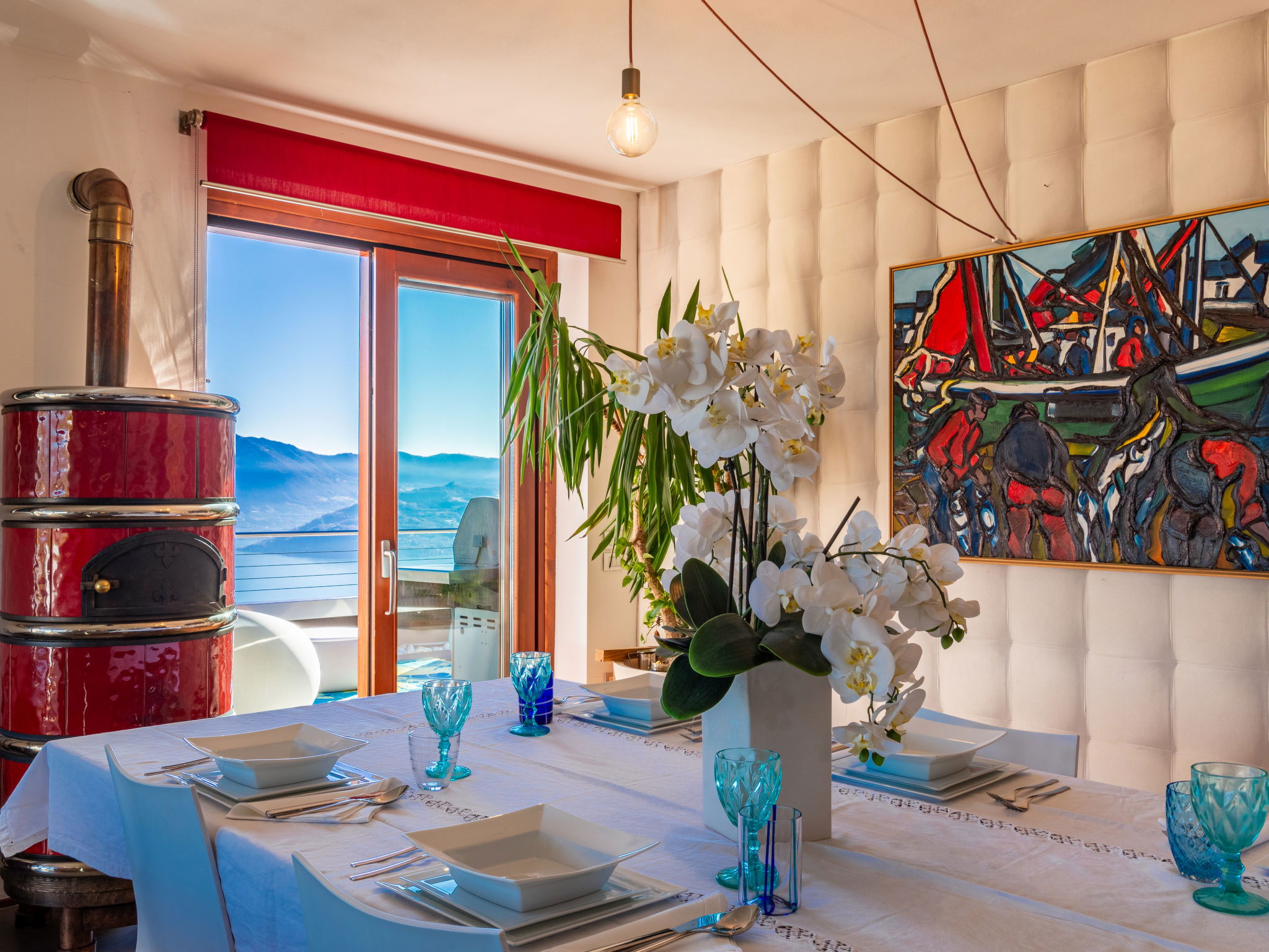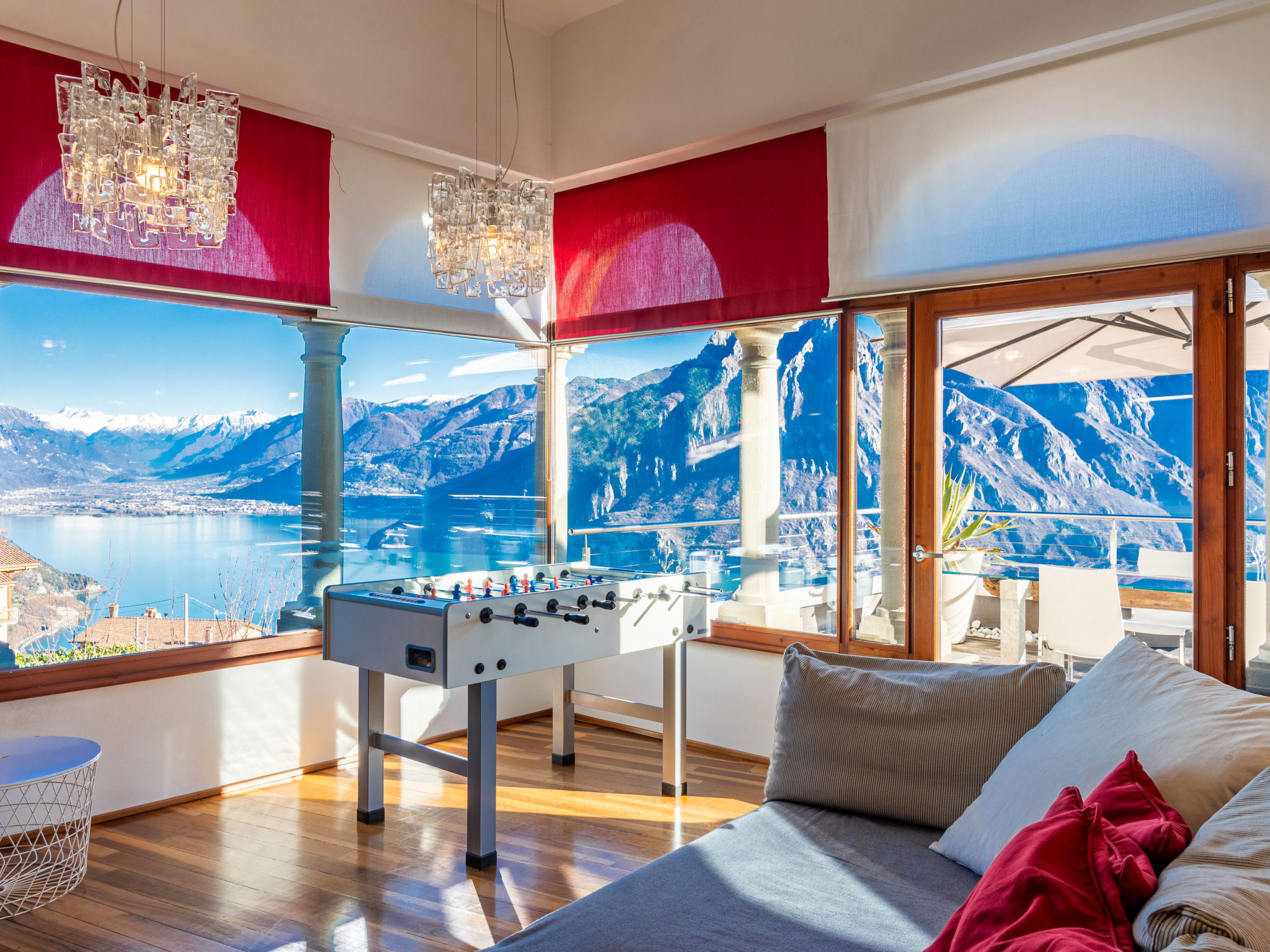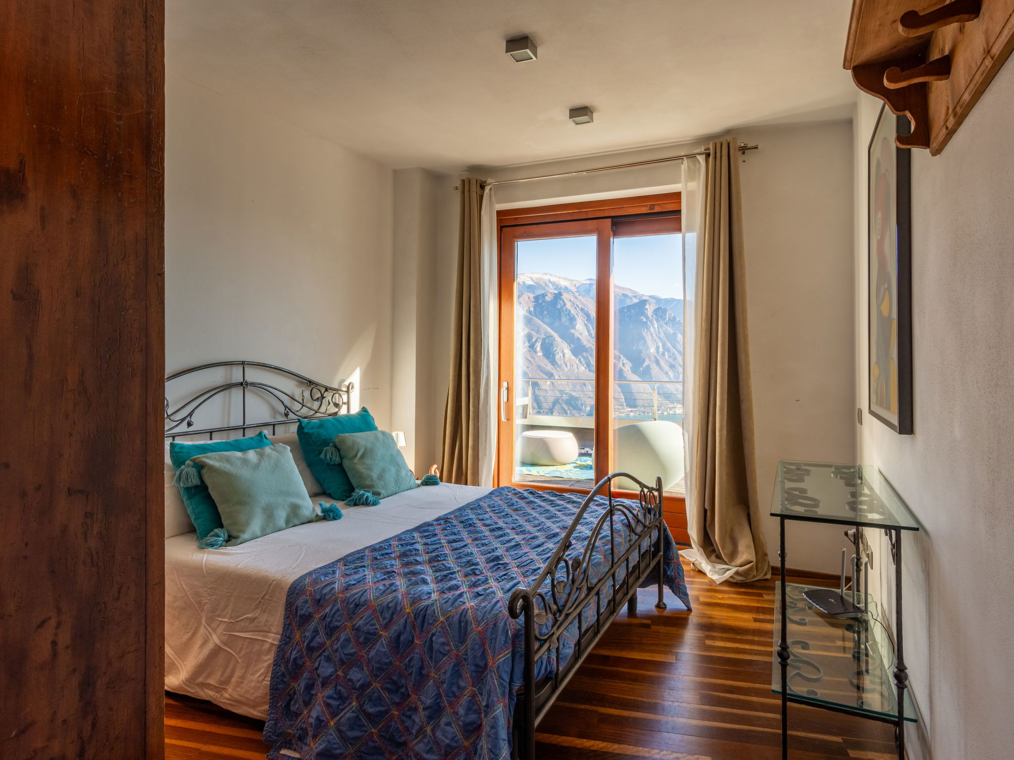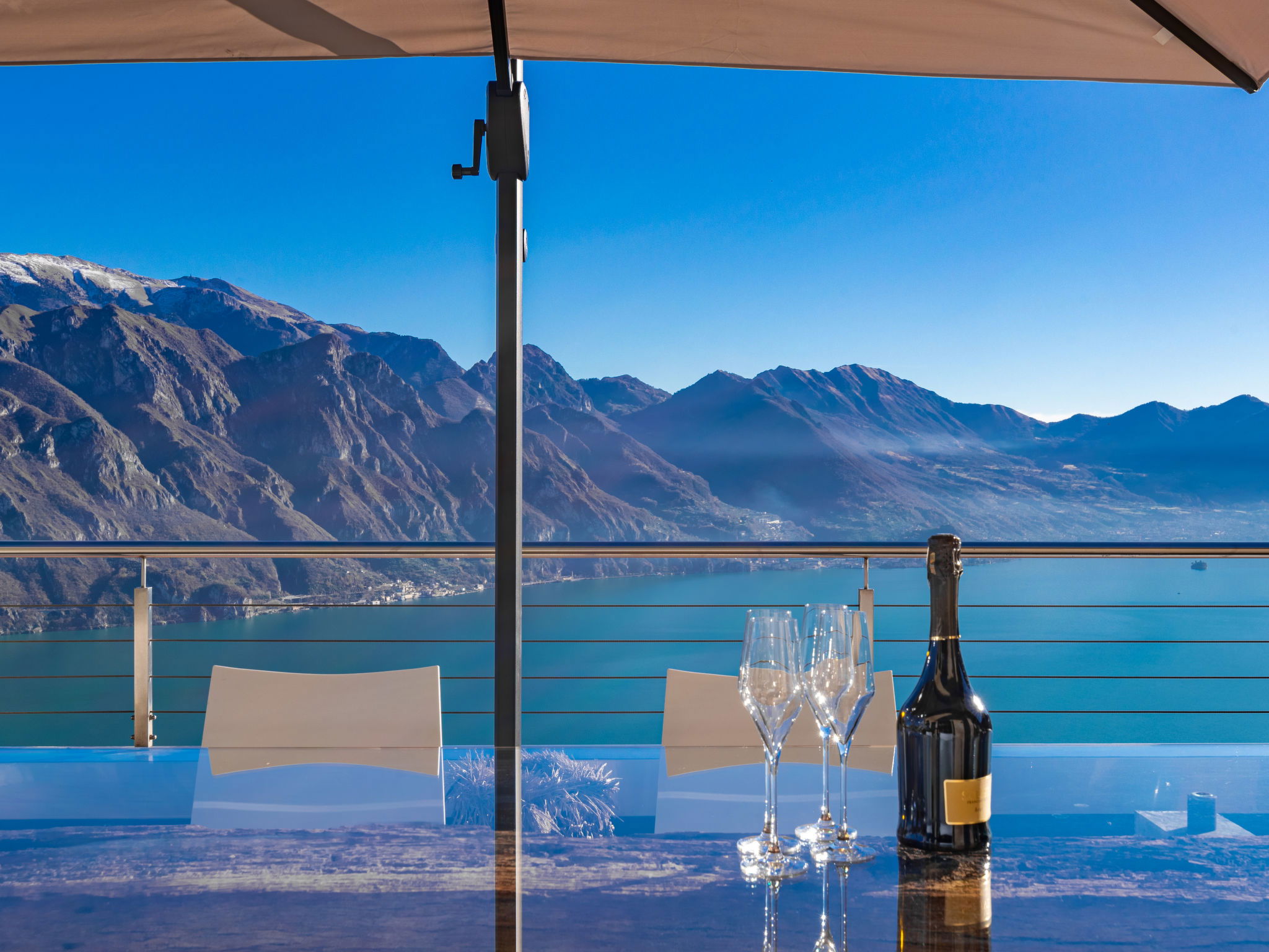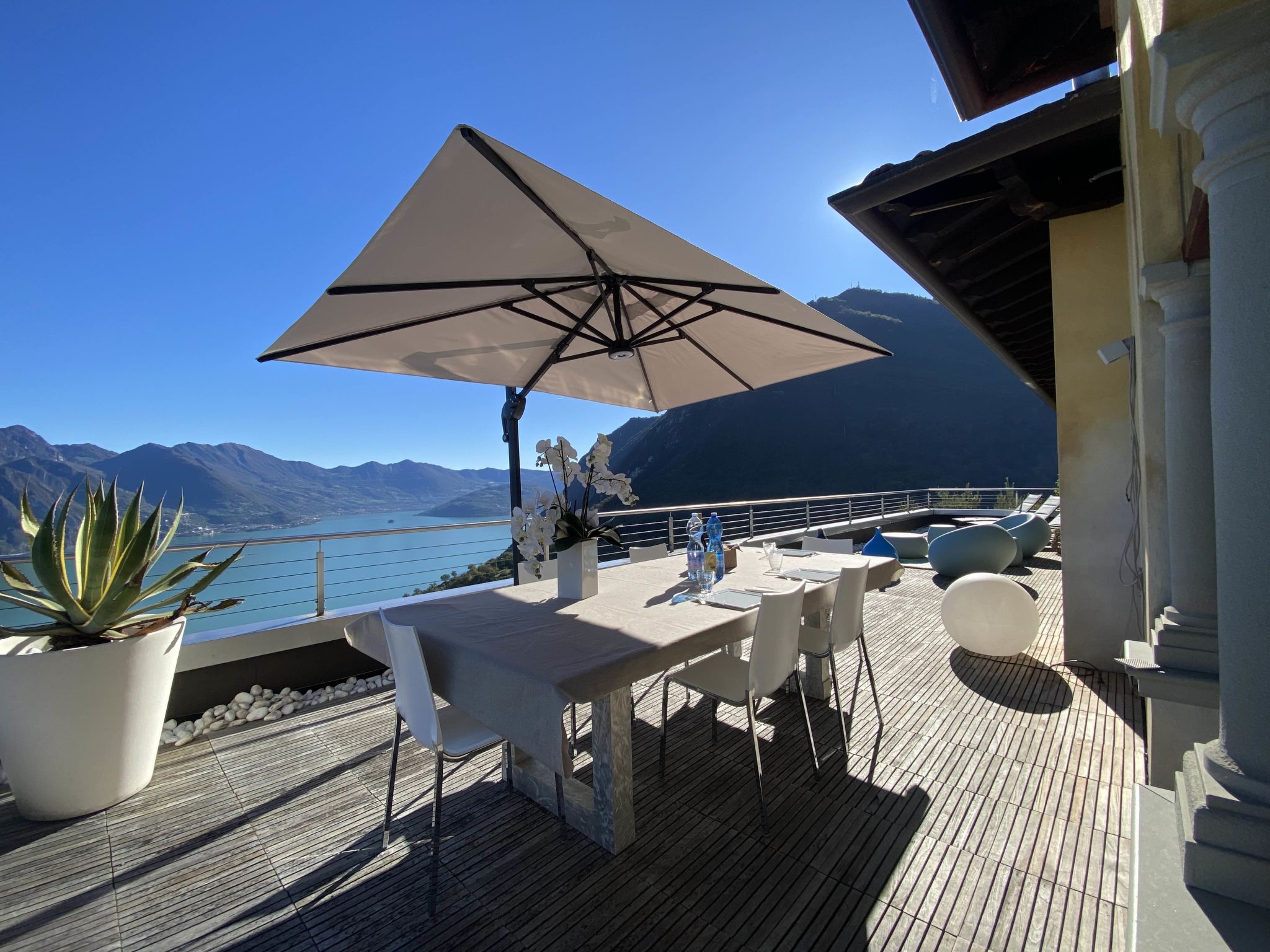 4-room apartment 160 m2 on 2nd floor, east facing position. Spacious and bright, modern and stylish furnishings: large living/dining room with panoramic window with Scandinavian wood stove (only for decoration), dining table, TV, hi-fi system and air conditioning. Exit to the terrace. 1 double bedroom with panoramic window with bath/bidet/WC, TV and air conditioning. Exit to the terrace. 1 double bedroom with 1 french bed (140 cm, length 190 cm), shower/bidet/WC. 1 double bedroom. Exit to the terrace. Open kitchen (oven, dishwasher, 4 induction hot plates, 5 gas rings, toaster, kettle, electric coffee machine, Capsules for coffee machine (Nespresso), cooking island, combination microwave) with double hand-basin. Shower/bidet/WC, sep. WC, hydro massage bath. Heating. Parquet floors, natural stone floors. Large terrace, garden, lawn. Terrace furniture, barbecue, deck chairs (6). Very beautiful panoramic view of the lake and the mountains. Facilities: washing machine, iron, children's high chair, baby cot, hair dryer. Internet (WiFi, free). Please note: fridge without freezer, non-smoking house. Maximum 1 pet/ dog allowed. Private entrance. No mandatory extra charges to be paid on-site. IT016102C2Z3PYG6HL