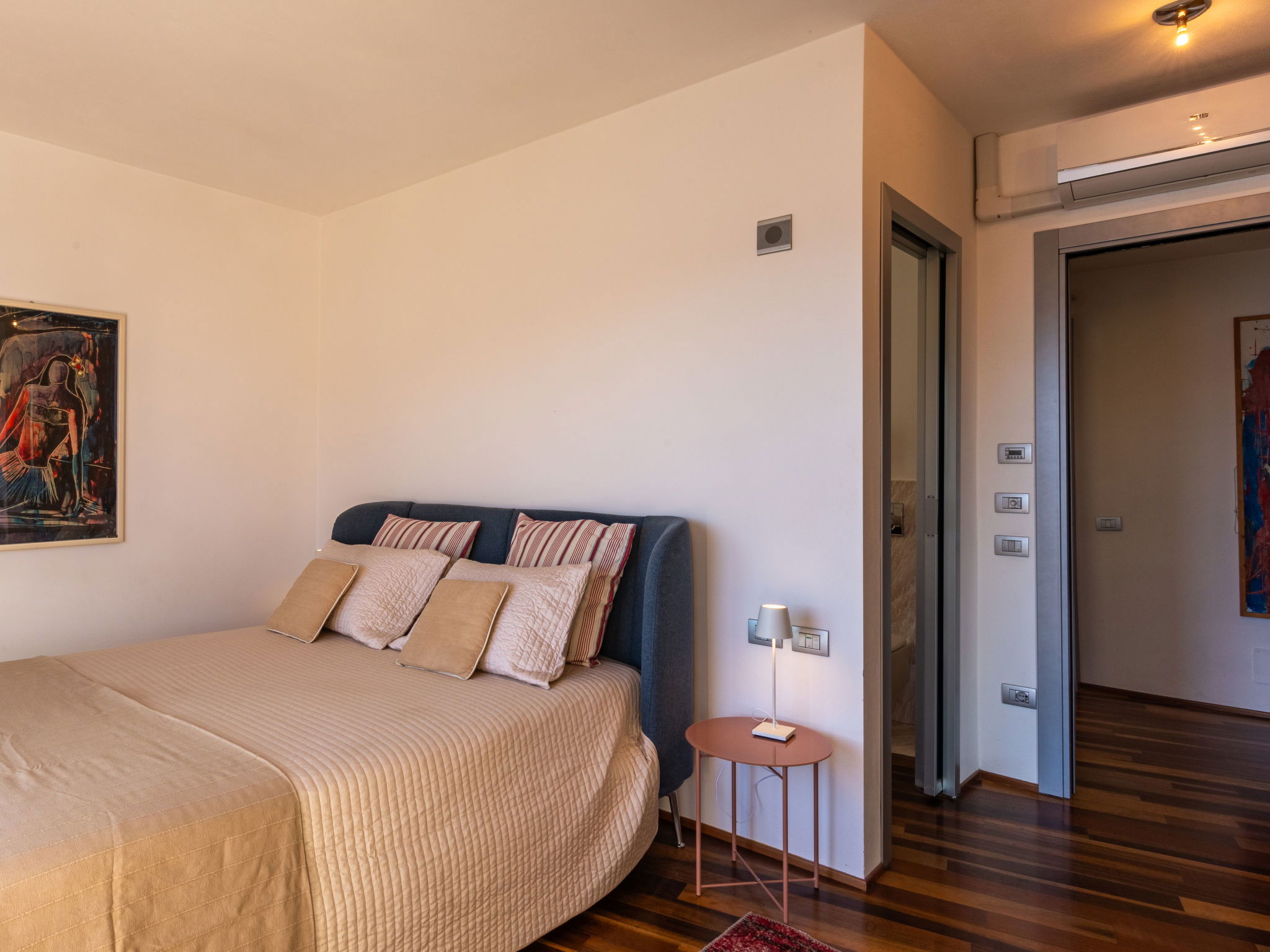 4-room apartment 160 m2 on 2nd floor, east facing position. Spacious and bright, modern and stylish furnishings: large living/dining room with panoramic window with Scandinavian wood stove (only for decoration), dining table, TV, hi-fi system and air conditioning. Exit to the terrace. 1 double bedroom with panoramic window with bath/bidet/WC, hydro massage bath, TV and air conditioning. Exit to the terrace. 1 double bedroom with 1 french bed (140 cm, length 190 cm), shower/bidet/WC. 1 double bedroom. Exit to the terrace. Open kitchen (oven, dishwasher, 4 induction hot plates, 5 gas rings, toaster, kettle, electric coffee machine, Capsules for coffee machine (Nespresso), cooking island, combination microwave) with double hand-basin. Shower/bidet/WC, sep. WC, hydro massage bath. Heating. Parquet floors, natural stone floors. Large terrace, garden, lawn. Terrace furniture, barbecue, deck chairs (6). Very beautiful panoramic view of the lake and the mountains. Facilities: washing machine, iron, children's high chair, baby cot, hair dryer. Internet (WiFi, free). Please note: fridge without freezer, non-smoking house. Maximum 1 pet/ dog allowed. Private entrance. No mandatory extra charges to be paid on-site. IT016102C2Z3PYG6HL