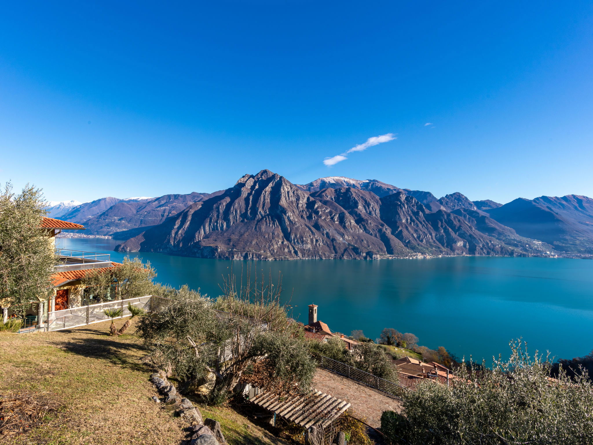 Beautiful, comfortable 2-family house "Xino Terrace View", 600 m a.s.l., 2 storeys, detached, surrounded by trees. In the hamlet Xino 2 km from the centre of Fonteno, 6 km from the centre of Riva di Solto, in a quiet, sunny position on a slope, residential area (villas), 6 km from the lake, east facing position. Private: terraced garden (fenced) with trees, lawn for sunbathing. In the house: storage room for bicycles. Parking (for 2 cars) at the house, public parking on the road. Supermarket 2 km, restaurant, bar 500 m, bus stop 1 km, ferry "Riva di Solto" 6 km, thermal baths "Boario Terme" 28 km. Nearby attractions: Lovere 11 km, Sarnico 25 km, Franciacorta (DOCG wine region) 30 km, Iseo 35 km, Bergamo 41 km, Milano 90 km. Please note: car recommended.